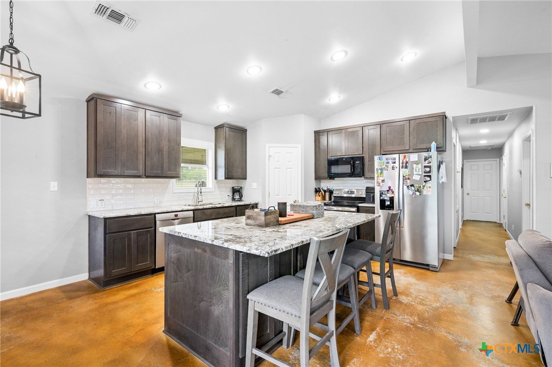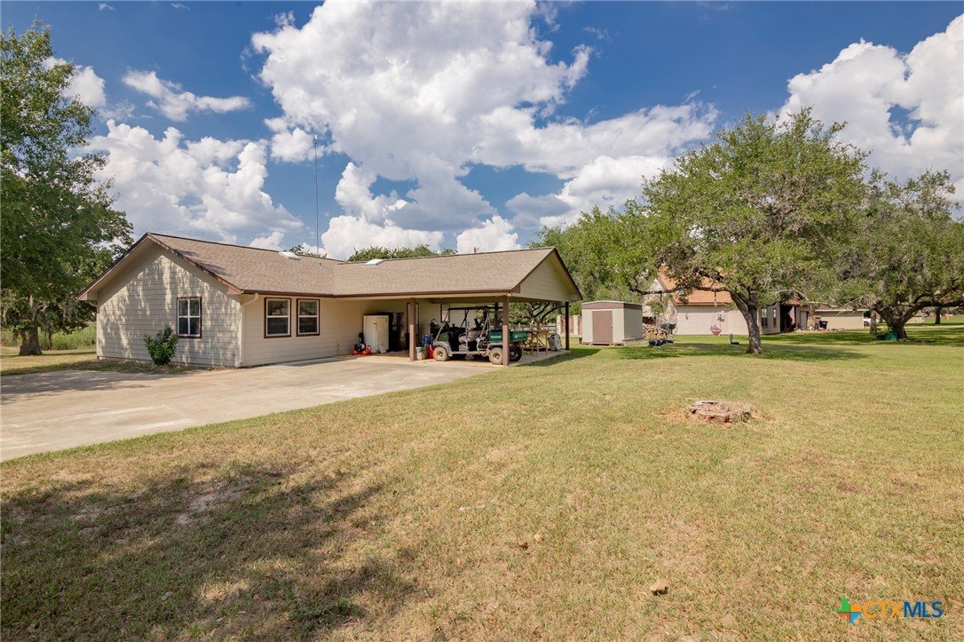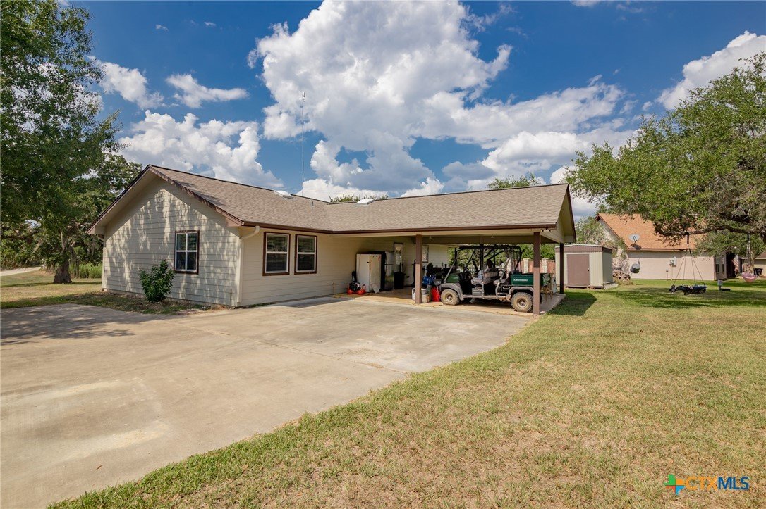 Experience the charm of lakeside waterfront living. This welcoming property offers an exceptional opportunity to enjoy the tranquility of the area. The home features a thoughtfully designed, spacious 1,624 square foot layout, complete with 3 comfortable bedrooms and 2 well-appointed bathrooms, all comfortably situated on a sizable 0.73-acre lot, providing ample space for outdoor enjoyment and relaxation. Key Features that make this home stand out are the convenient covered carport, perfect for sheltering your vehicles. A newer roof and HVAC system, ensuring reliability and comfort for years to come. Tastefully remodeled kitchen and bathrooms, showcasing modern amenities and stylish finishes. Direct access to the picturesque Coleto Lake provides endless opportunities for recreation and relaxation. The added security and exclusivity of a gated neighborhood create a desirable living environment. Enjoy the convenience of a nearby neighborhood park directly on Coleto Lake, ideal for leisurely walks, outdoor activities, and community gatherings.