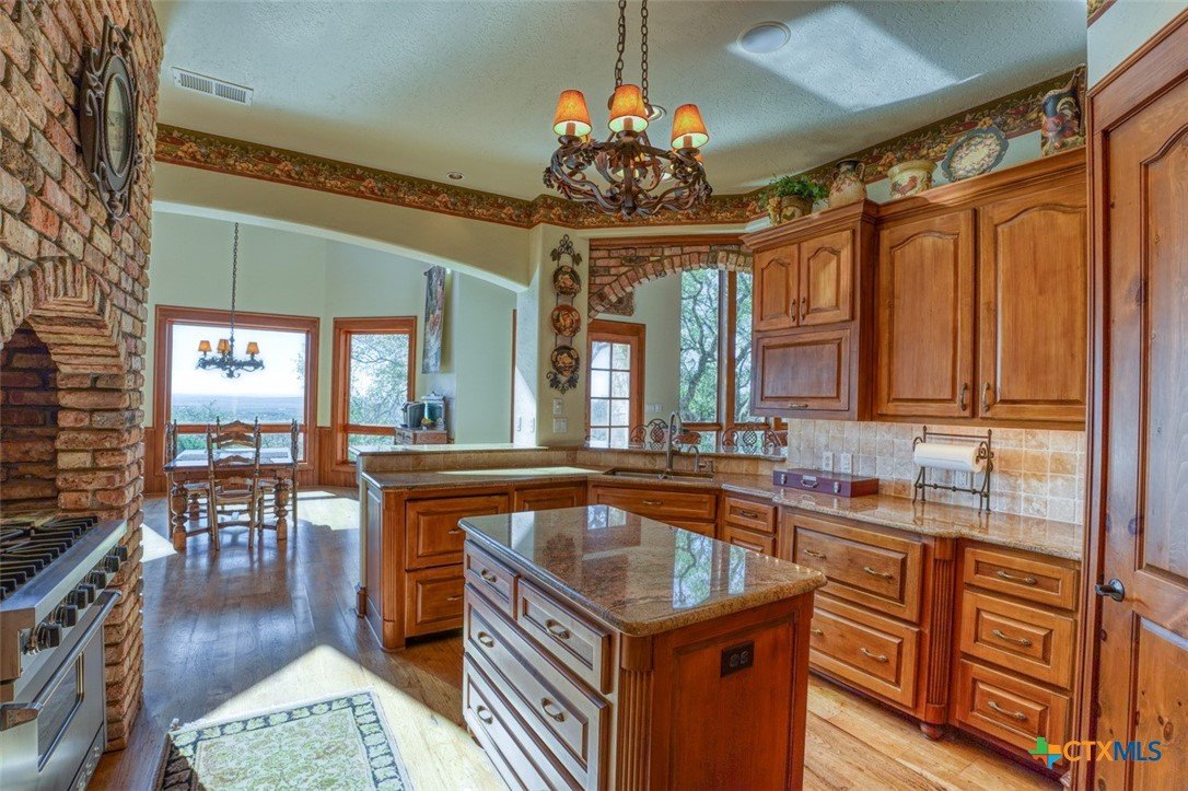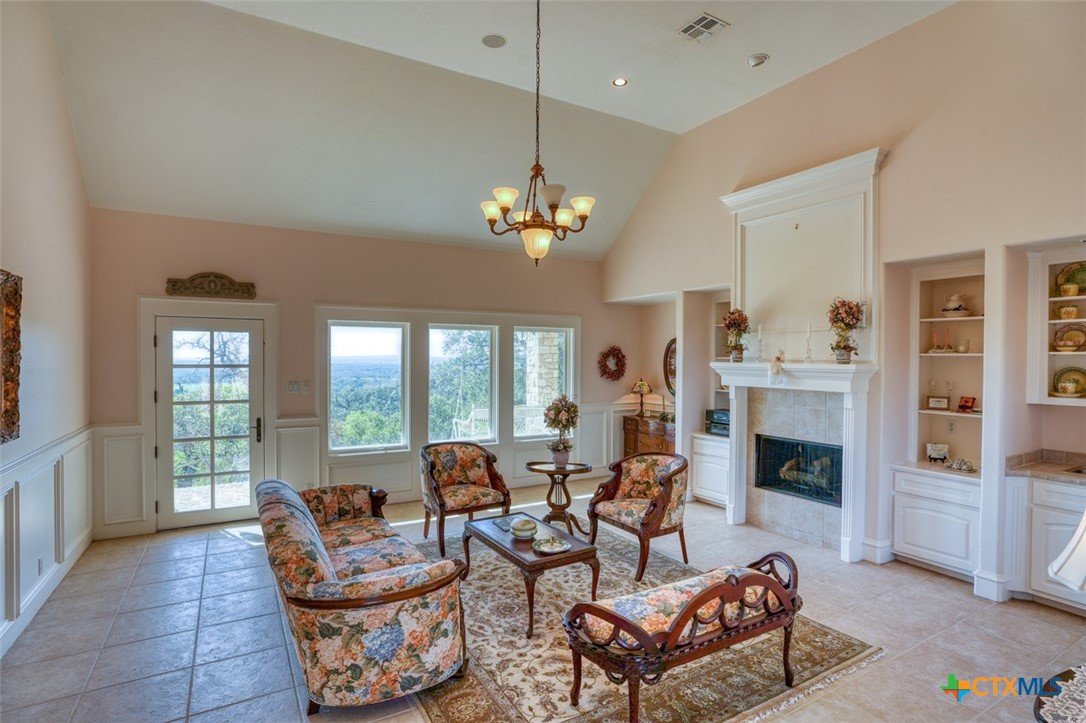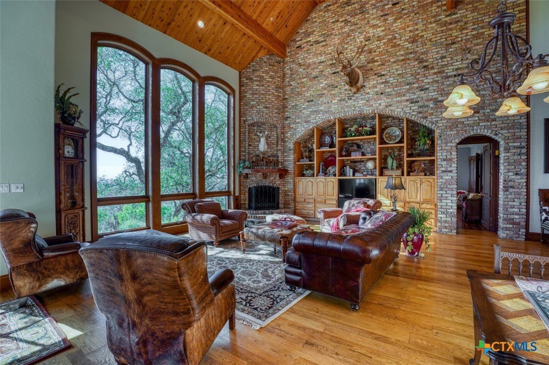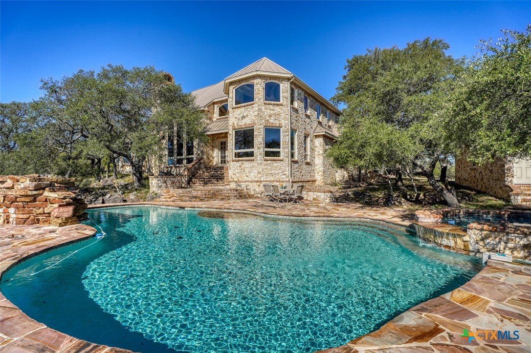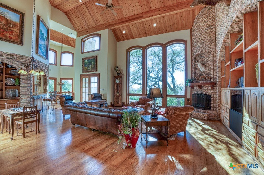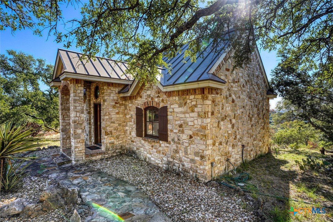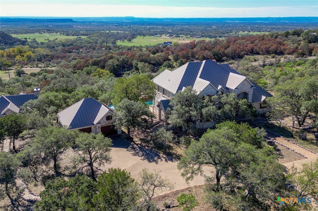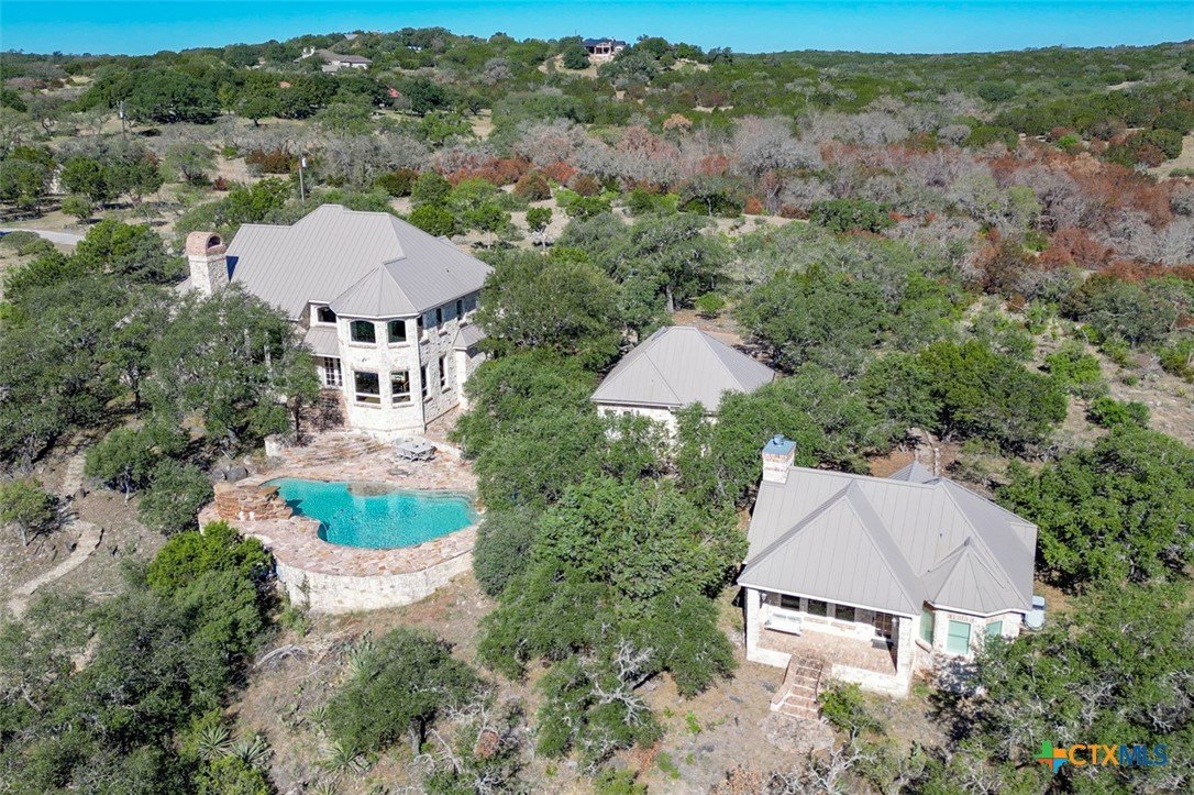 Hello views!! Nestled in the Texas Hill Country and overlooking your gorgeous 13.03 acres. The main residence & guest house both exude a casual yet elegant lifestyle. The professional Viking kitchen appliances will impress any chef and the grand stone fireplaces are found throughout the home & guesthouse. The breakfast & living area have exposed, aged beams and spectacular views. The primary bedroom is private and luxurious with its own rock and brick fireplace as well as a huge walk-in closet with built-ins. The additional bedrooms are charming and inviting. Outside, you’ll find a heated in ground pool and hot tub w/custom rock work. The bonus guesthouse is spacious and private, and ready to be enjoyed. The outside firepit is steps away from the home and pool. This home comes completely furnished with high-quality furnishings and linens. This property is in the prestigious Cavern Ranches Estates. Private secure front gate welcomes you home. Seller was a renowned stone mason so you'll find his work displayed beautifully throughout.