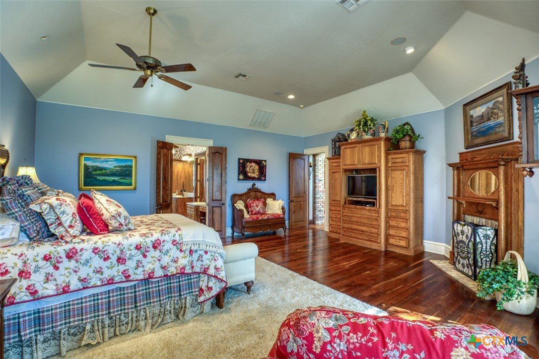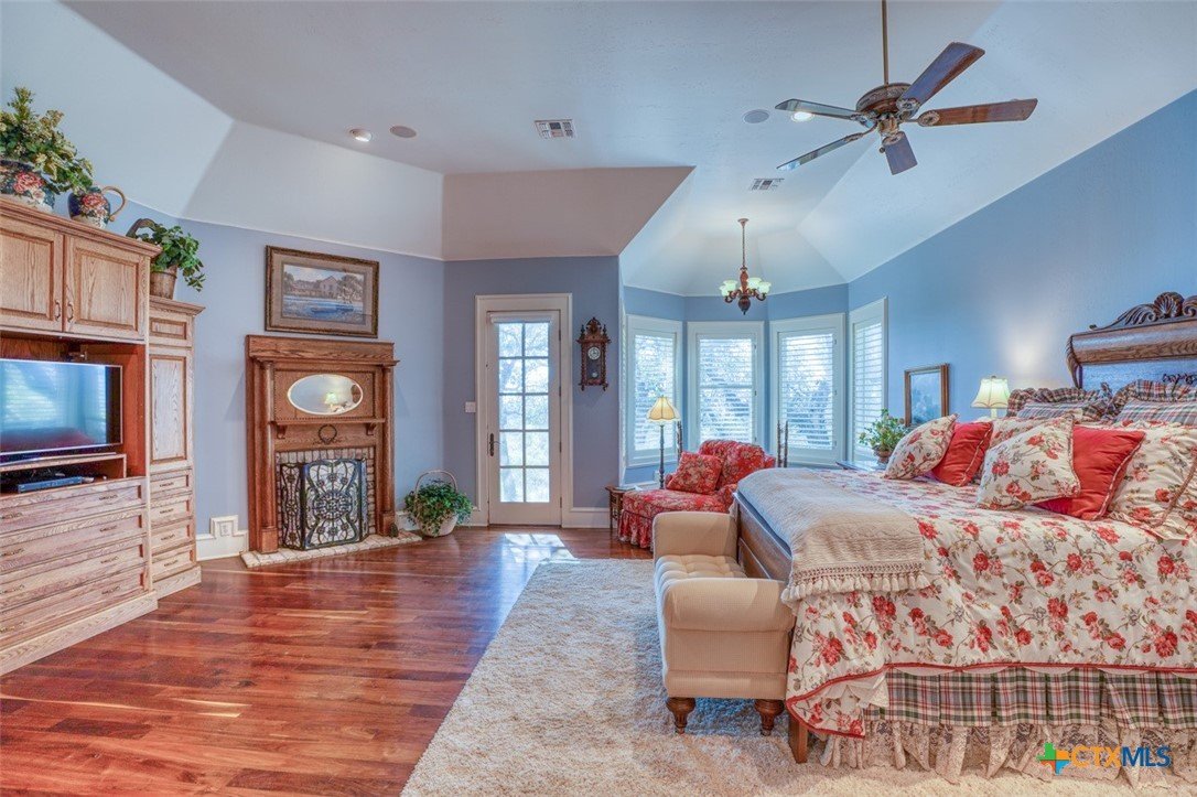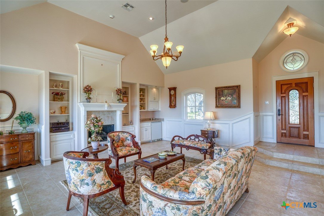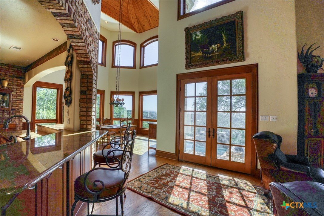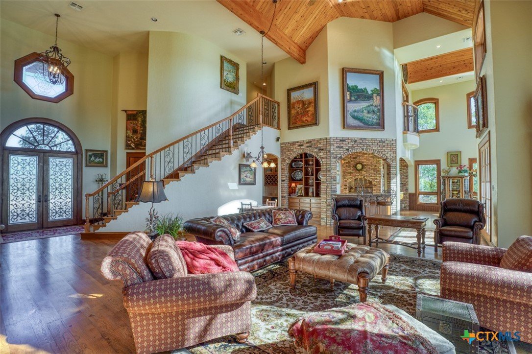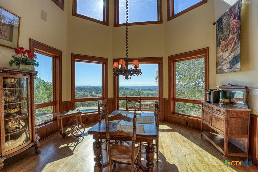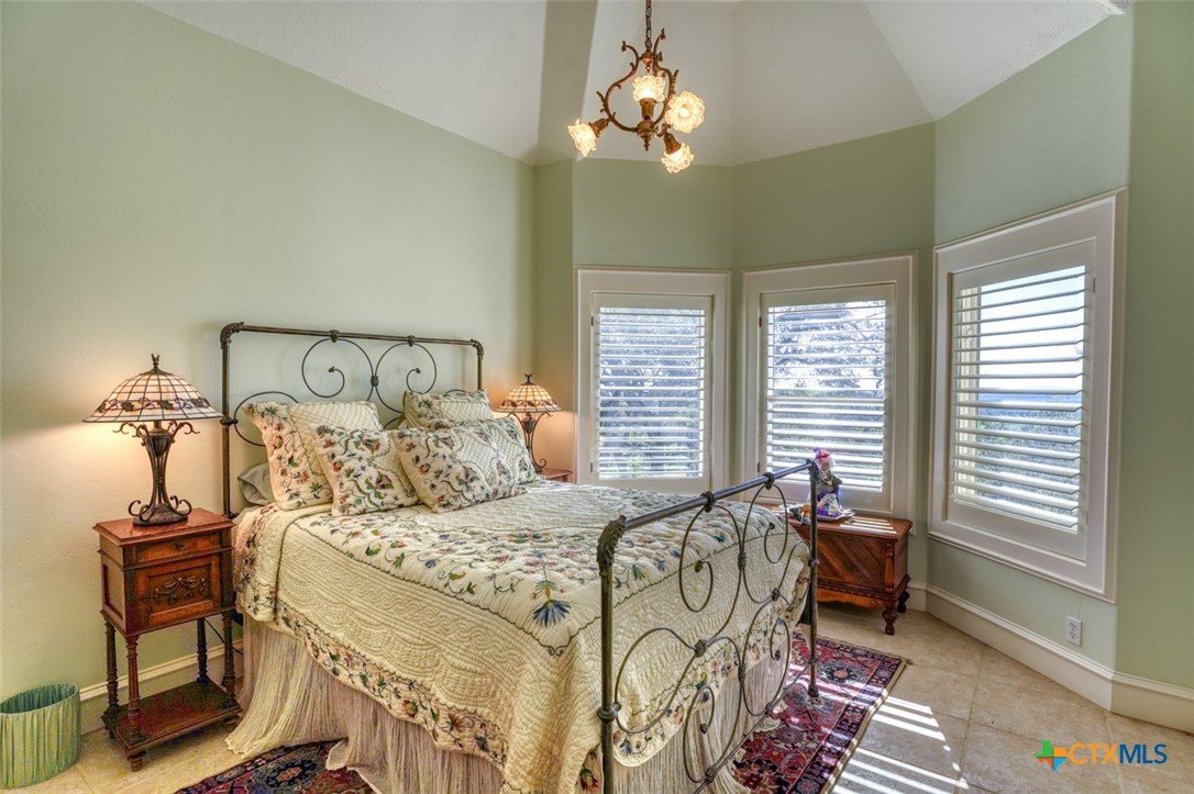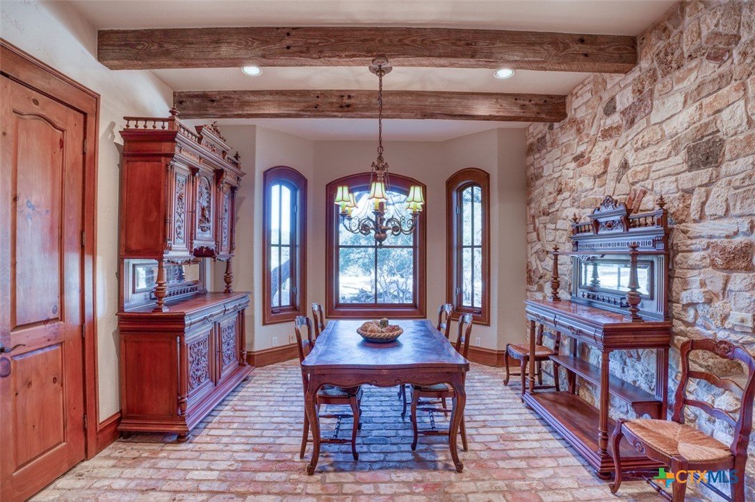 Hello views!! Nestled in the Texas Hill Country and overlooking your gorgeous 13.03 acres. The main residence & guest house both exude a casual yet elegant lifestyle. The professional Viking kitchen appliances will impress any chef and the grand stone fireplaces are found throughout the home & guesthouse. The breakfast & living area have exposed, aged beams and spectacular views. The primary bedroom is private and luxurious with its own rock and brick fireplace as well as a huge walk-in closet with built-ins. The additional bedrooms are charming and inviting. Outside, you’ll find a heated in ground pool and hot tub w/custom rock work. The bonus guesthouse is spacious and private, and ready to be enjoyed. The outside firepit is steps away from the home and pool. This home comes completely furnished with high-quality furnishings and linens. This property is in the prestigious Cavern Ranches Estates. Private secure front gate welcomes you home. Seller was a renowned stone mason so you'll find his work displayed beautifully throughout.