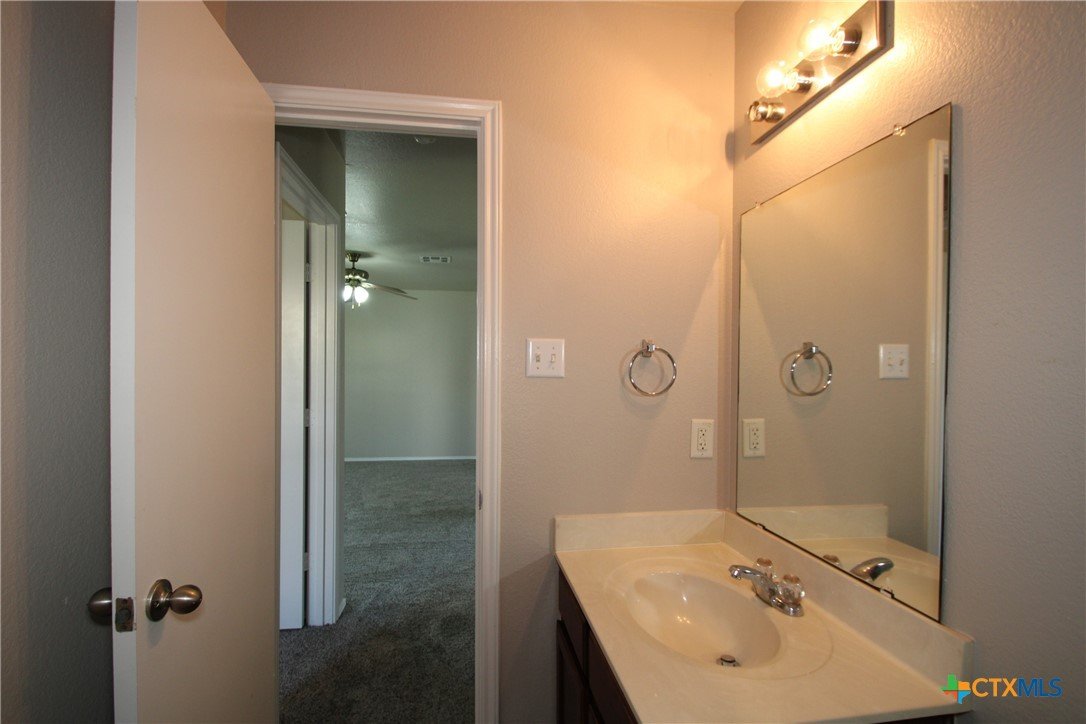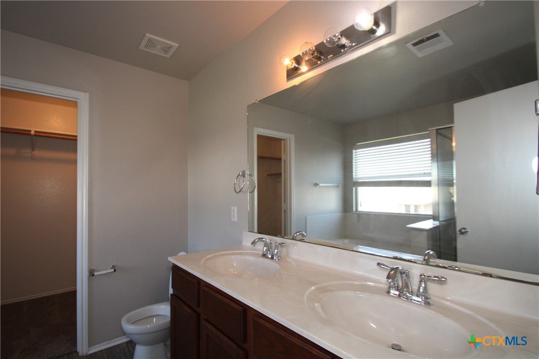 Welcome to this spacious and beautifully maintained four-bedroom, three-bathroom home offering over 2,000 square feet of comfortable living space. Nestled in the desirable Meadows of Trimmier neighborhood, this two-story gem features a well-kept yard, privacy-fenced backyard, and a covered patio perfect for relaxing or entertaining. Enjoy the convenience of a two-car garage with automatic opener. Inside, you’ll love the thoughtful floor plan that includes a downstairs bedroom with full bath, ideal for guests or multi-generational living. The main level also features a formal dining room, a cozy living area, and a well-appointed kitchen with a breakfast bar, range, built-in microwave, side-by-side refrigerator, and pantry. Upstairs, you’ll find a spacious rec room/living area, three additional bedrooms, and a large laundry room with shelving. The primary suite offers a luxurious retreat with a garden tub, separate shower, double vanity, and a huge walk-in closet. Additional highlights include: Faux wood blinds throughout, Walk-in closets in multiple rooms, three full bathrooms for added convenience. This home blends comfort, functionality, and style in one fantastic package. Don’t miss your chance to call it your own!