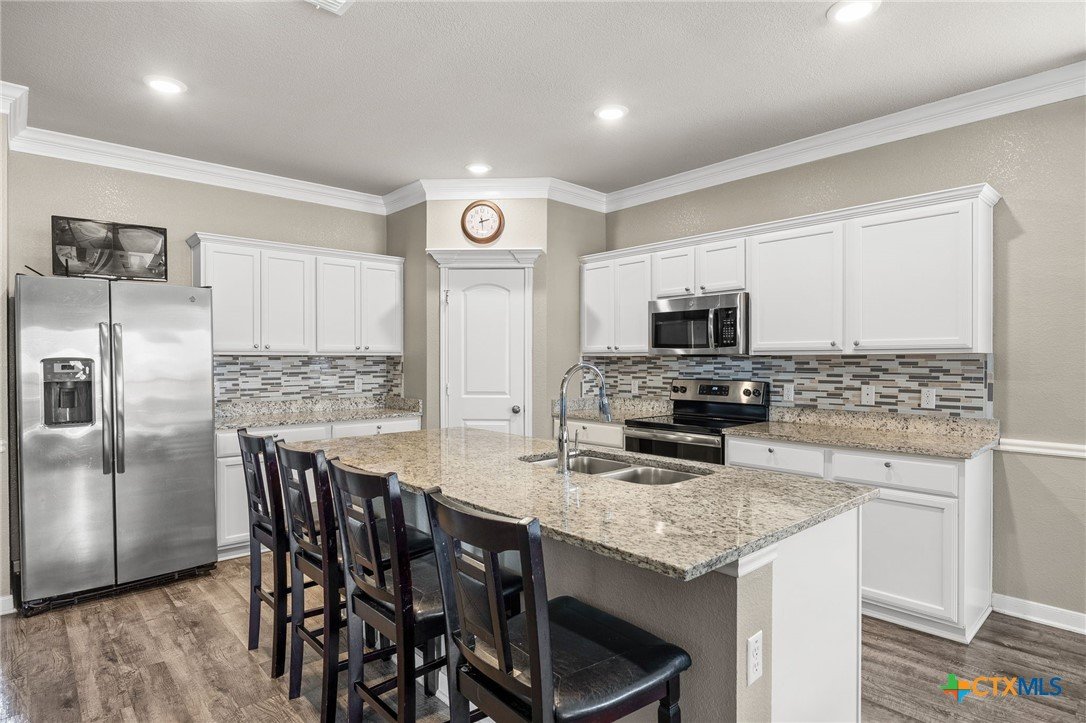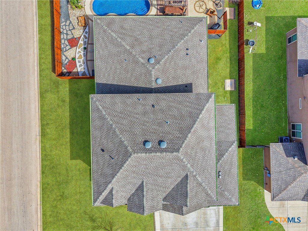 Welcome to 5301 Othello, a stunning five bedroom, four bath home perfectly situated on a spacious corner lot in the highly sought after Three Creeks community. This home was designed with both comfort and functionality in mind. Downstairs, you’ll find a dedicated office, two dining areas, and a spacious main living room. Upstairs offers an additional living space/gameroom, giving everyone room to spread out and enjoy their own space. With abundant storage throughout and a large three car garage, this home truly checks every box. The kitchen and bathrooms feature beautiful granite countertops, and the home has been meticulously maintained. The primary suite is a true retreat with a massive bathroom that includes separate vanities, a Texas sized walk in shower, and two oversized walk in closets that provide incredible storage and functionality. Step outside and the upgrades continue. Full gutters, a sprinkler system, a wood stained privacy fence, and an extended covered side porch create flexible and functional outdoor living space. And then there’s the backyard. Installed in 2022, the Latham Bermuda pool with Crystite Classic Blue finish is a true showstopper. It features built in LED lighting, dual deck jets, and an automatic chlorine system for easy maintenance. The extensive landscaping, custom outdoor entertainment and BBQ area, and pergola create a private retreat that feels more like a resort than a backyard. It is easily one of the most impressive outdoor living setups you will find in the area. Three Creeks offers a lifestyle that is hard to match. Located near Stillhouse Lake & the Lampasas River, residents enjoy private access to over five miles of scenic hiking and biking trails. The community features a central pavilion with a pond and natural landscaping that serves as a gathering place for neighborhood events and family get togethers. There is also a playground and picnic areas, all thoughtfully designed to blend with the surrounding natural beauty.