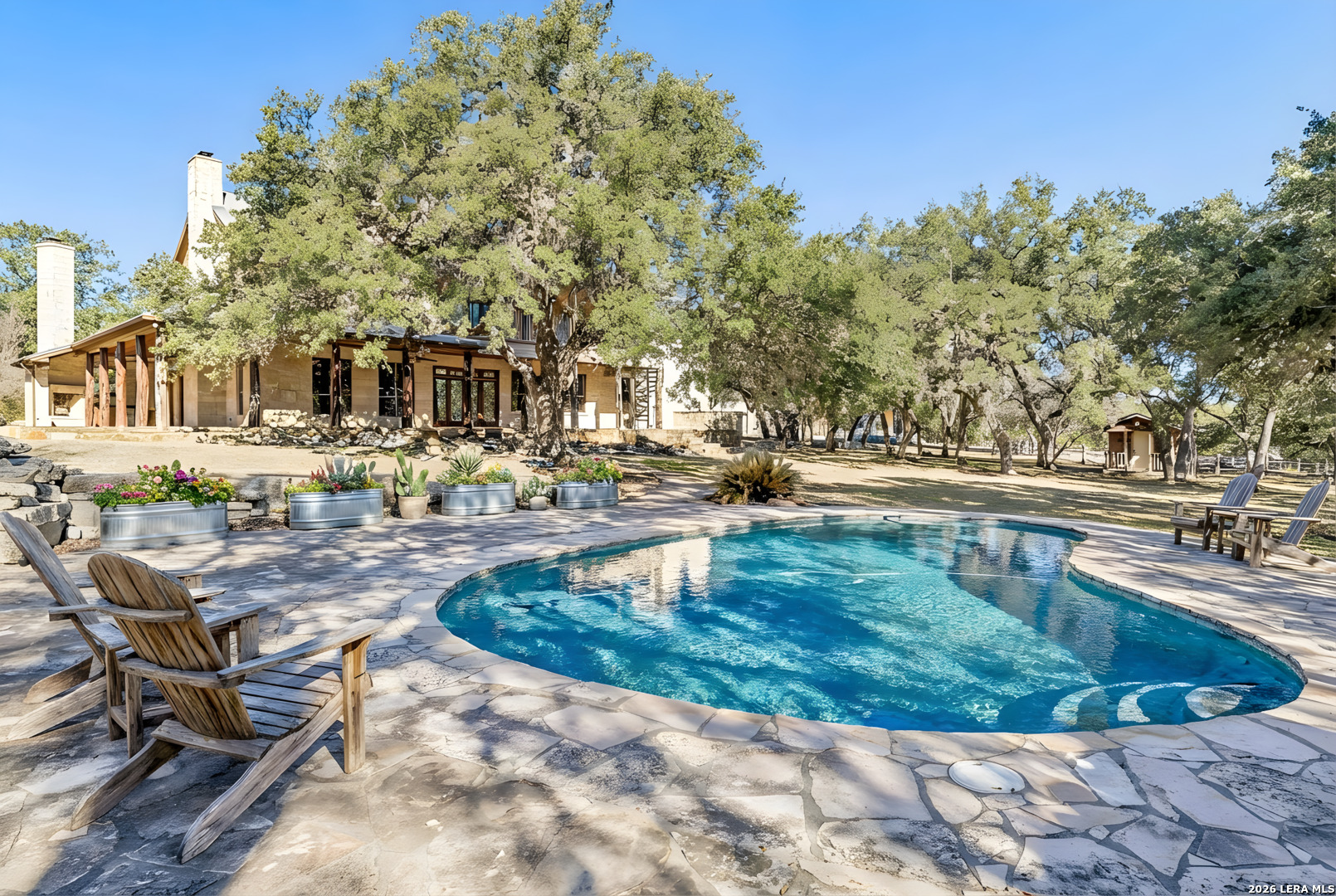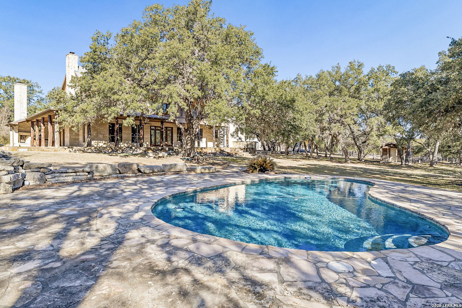Being Sold As Is - Set in a highly sought-after corridor between Bergheim, Bulverde, and Cordillera Ranch, this exceptional 72 acre Hill Country ranch estate offers a rare combination of luxury living, equestrian infrastructure, and long-term investment potential. The property is anchored by two substantial residences, creating an ideal multi-generational or compound-style setup. The main residence spans approximately 4,989 square feet, was built in 2002, and offers generous living spaces designed for comfort and entertaining. A separate guest home totaling approximately 2,074 square feet, originally built in 1958 and expanded in 1994, provides additional privacy and flexibility for family, guests, or extended stays. The land itself is a standout feature-relatively flat yet gently rolling, with elevation changes ranging from approximately 1,280 to 1,340 feet, offering scenic views, excellent usability, and natural drainage. The ranch is fully fenced and cross-fenced, with multiple turnouts throughout the compound portion of the property, making it well-suited for horses or livestock. Water infrastructure is extensive and thoughtfully designed, featuring five(5) water wells, including two currently in use, one windmill well, and two solar-powered wells, with water piped throughout the property and supported by multiple well water storage tanks. A pond previously stocked with fish adds both function and charm, fed by a dedicated water well. Equestrian and ranch improvements include stables with four interior stalls, an arena currently in place (offering strong potential with minor improvements and fencing), and numerous barns and outbuildings that support a wide range of uses. A 50' x 80' equipment barn provides significant storage and workspace, with just under 900 square feet finished, insulated, and built out as a workshop. Outdoor living is equally well considered, highlighted by a resort-style in-ground pool and a detached exterior pool bath with shower, ideal for entertaining. A standout feature of the property is the 2,900 square foot RV barn / man cave, offering flexibility as an entertainment venue, recreational space, or RV storage facility. With its combination of scale, infrastructure, privacy, and proximity to luxury communities, this property presents a compelling opportunity as a personal ranch estate, equestrian facility, or future development site in a rapidly growing area. 5301 W Ammann Rd is a rare Hill Country offering-delivering land, lifestyle, and long-term value in one of the region's most desirable locations.