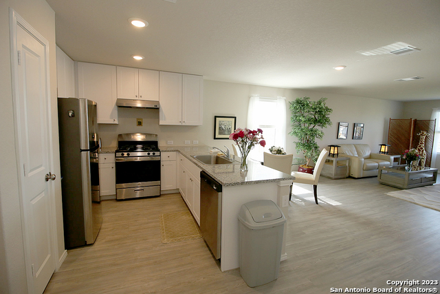 Available by JUNE 1, 2025, the cozy front porch is a friendly welcome to this charming single story home in Hidden Trails. The foyer offers privacy at the front door while the spacious, light-filled living and dining areas offer long views of the surrounding hillside. The kitchen features granite countertops and stainless steel appliances. This well designed home offers an easy, open flow. Situated to overlook the backyard, the primary bedroom is a quiet retreat. There is abundant storage in this meticulously maintained home, and the washer, dryer and refrigerator will remain. The neutral paint colors, flooring, cabinetry, and finishes will suit many decorating styles. There is a nice sense of community in Hidden Trails. And, with its amenity center, park, playground and pools, there is much to enjoy. Located in the well regarded Comal ISD, youngsters currently attend Johnson Ranch Elementary School.
