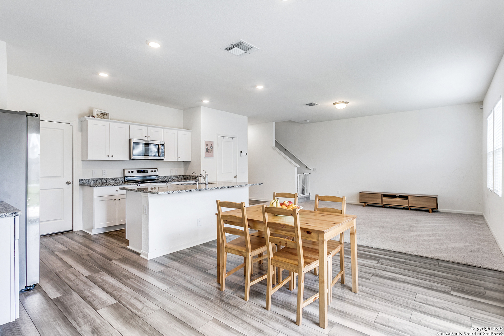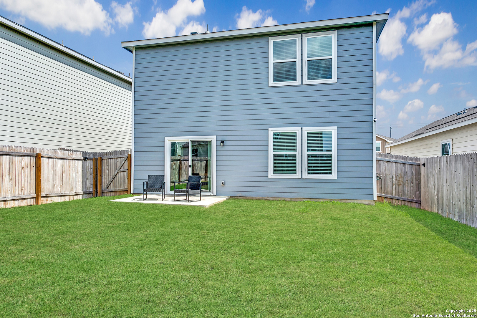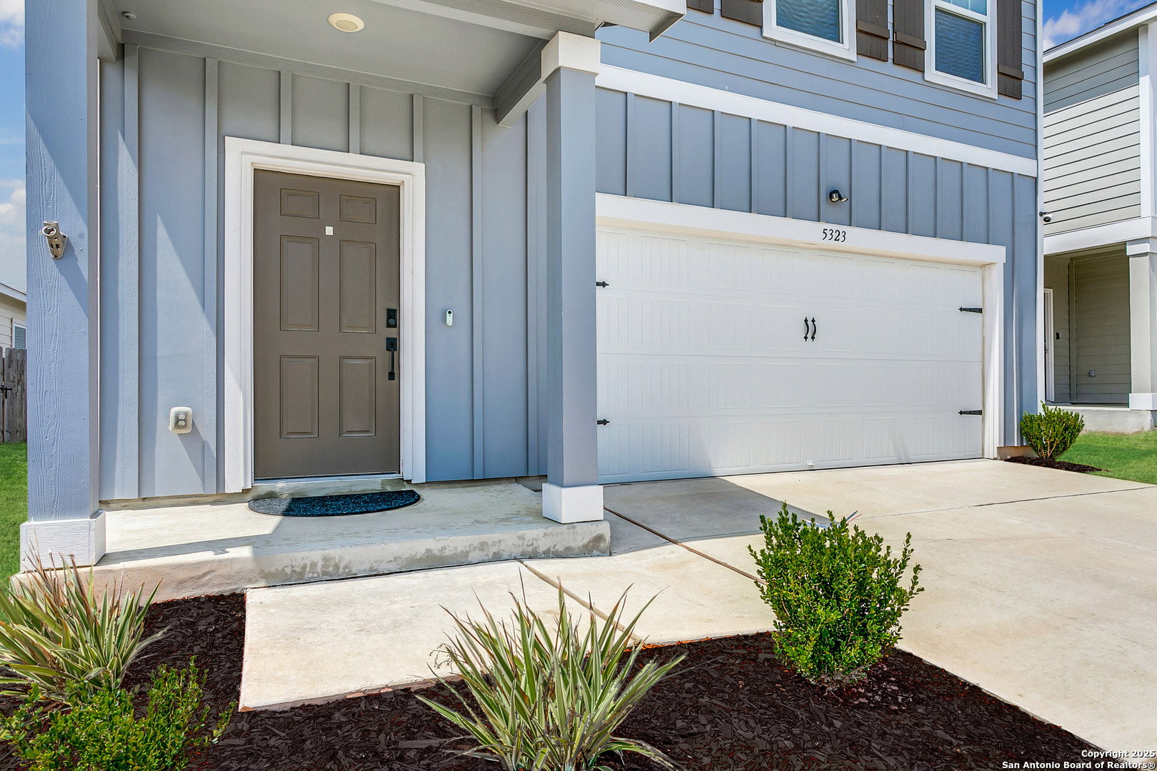 Welcome to 5323 Flying Hooves, a stunning 3-bedroom, 2.5-bathroom home offering 1,901 square feet of thoughtfully designed living space in the desirable Sutton Farms community, built by Starlight Homes in 2023. This home greets you with cheerful sky-blue exterior paint, a charming covered front porch, and a warm welcome into a bright and open main floor with soaring 9' ceilings. The entryway includes a functional mudroom space and a convenient powder bath, flowing seamlessly into a spacious living area and open-concept kitchen. The kitchen is a dream for home chefs, featuring bright white cabinetry, granite countertops, stainless steel appliances, a walk-in pantry, a stylish coffee bar, and a large island perfect for entertaining. Upstairs, enjoy a versatile loft space-perfect for a second living area or home office-alongside a convenient utility room and all three spacious bedrooms. The upstairs master suite offers a peaceful retreat with a walk-in closet and a private bath featuring a walk-in shower. Bedroom 2 is a spacious 16x18 with its own walk-in closet, while Bedroom 3 is an impressive 18x18, ideal for guests or growing families. Durable LVP flooring adds style and comfort to the main floor. Step outside to a 10x10 patio slab overlooking a large, flat, fenced backyard-perfect for outdoor living. Enjoy the community park and playground nearby, and benefit from zoning to highly regarded East Central ISD schools including Sinclair Elementary, Legacy Middle, and East Central High School. With a 2-car garage and meticulous care throughout, this move-in ready gem won't last long!