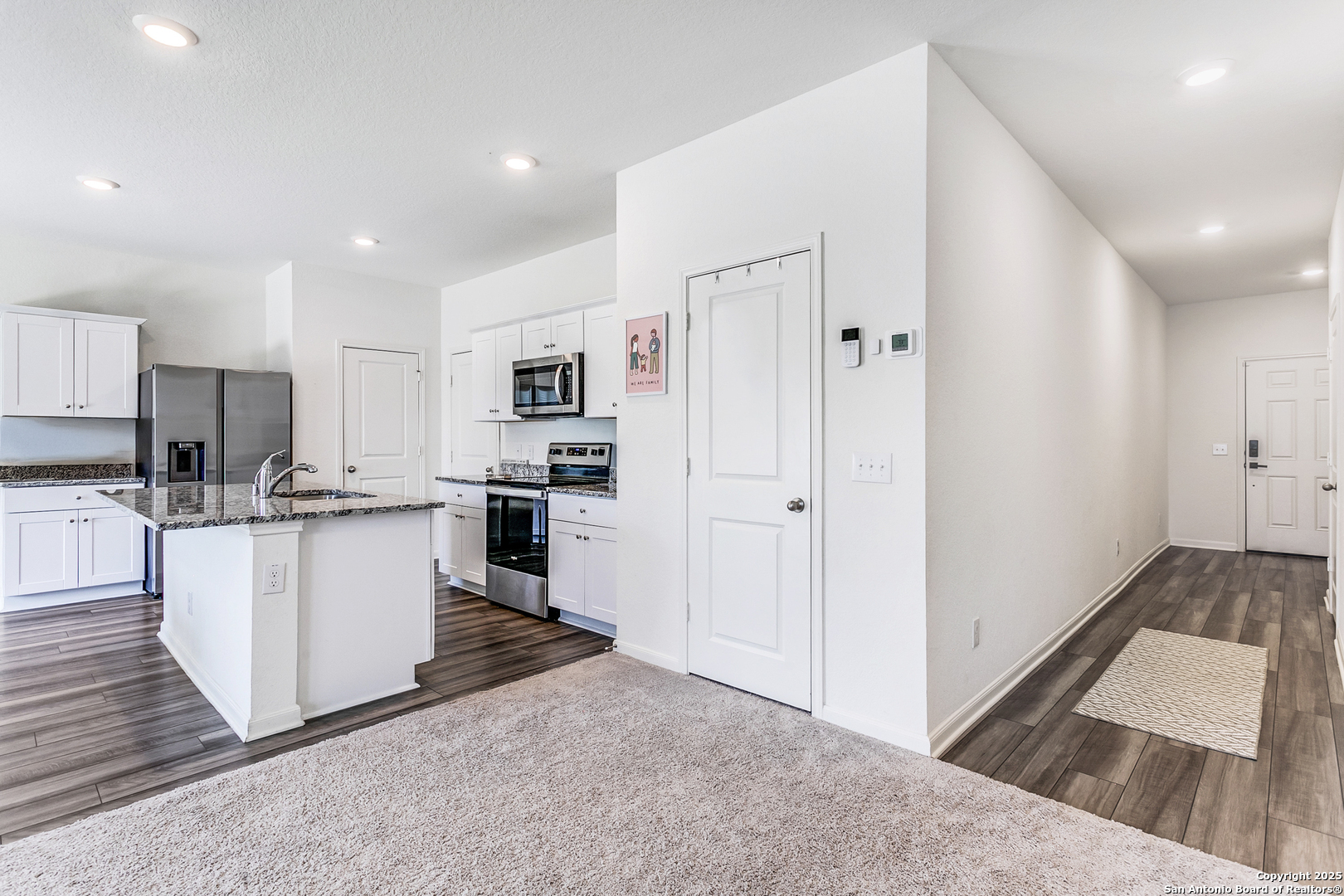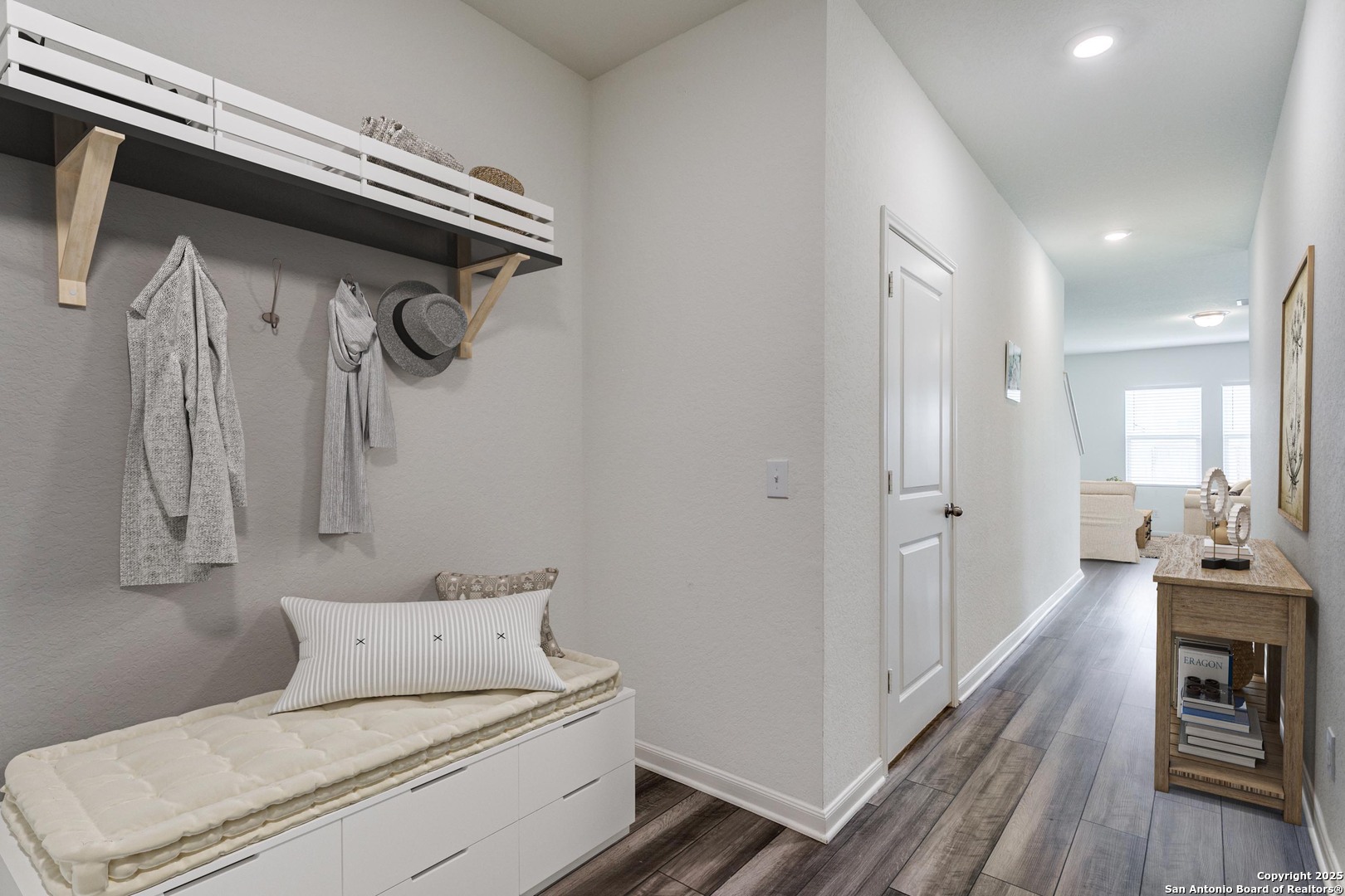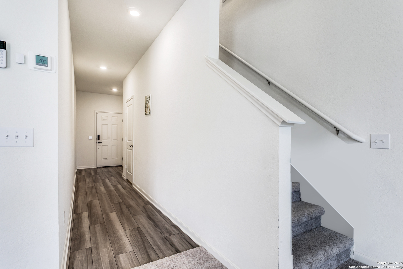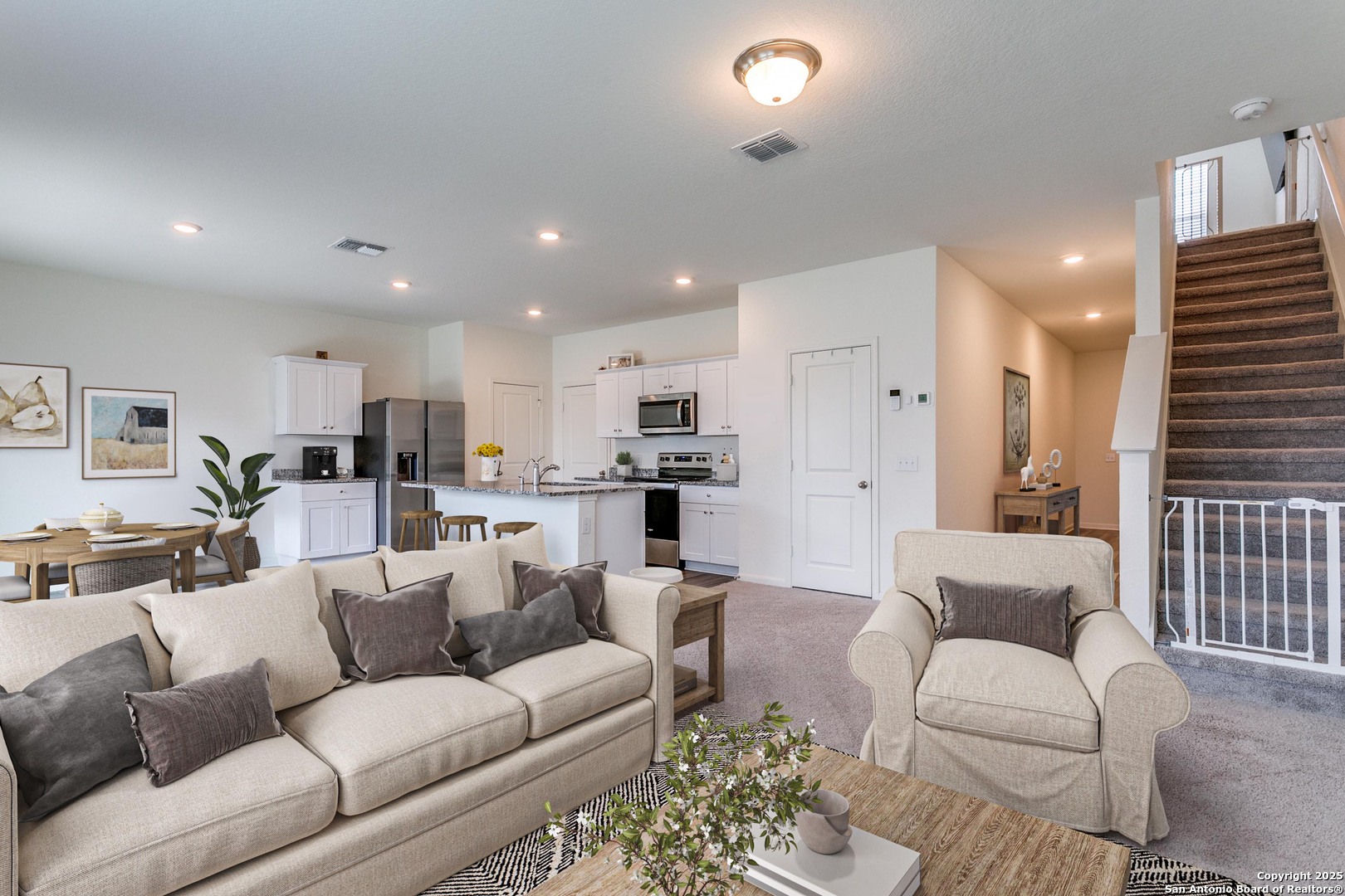 Welcome to 5323 Flying Hooves, a stunning 3-bedroom, 2.5-bathroom home offering 1,901 square feet of thoughtfully designed living space in the desirable Sutton Farms community, built by Starlight Homes in 2023. This home greets you with cheerful sky-blue exterior paint, a charming covered front porch, and a warm welcome into a bright and open main floor with soaring 9' ceilings. The entryway includes a functional mudroom space and a convenient powder bath, flowing seamlessly into a spacious living area and open-concept kitchen. The kitchen is a dream for home chefs, featuring bright white cabinetry, granite countertops, stainless steel appliances, a walk-in pantry, a stylish coffee bar, and a large island perfect for entertaining. Upstairs, enjoy a versatile loft space-perfect for a second living area or home office-alongside a convenient utility room and all three spacious bedrooms. The upstairs master suite offers a peaceful retreat with a walk-in closet and a private bath featuring a walk-in shower. Bedroom 2 is a spacious 16x18 with its own walk-in closet, while Bedroom 3 is an impressive 18x18, ideal for guests or growing families. Durable LVP flooring adds style and comfort to the main floor. Step outside to a 10x10 patio slab overlooking a large, flat, fenced backyard-perfect for outdoor living. Enjoy the community park and playground nearby, and benefit from zoning to highly regarded East Central ISD schools including Sinclair Elementary, Legacy Middle, and East Central High School. With a 2-car garage and meticulous care throughout, this move-in ready gem won't last long!