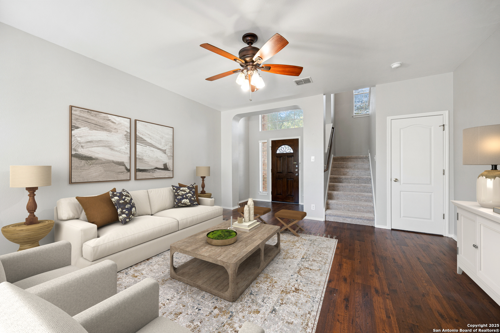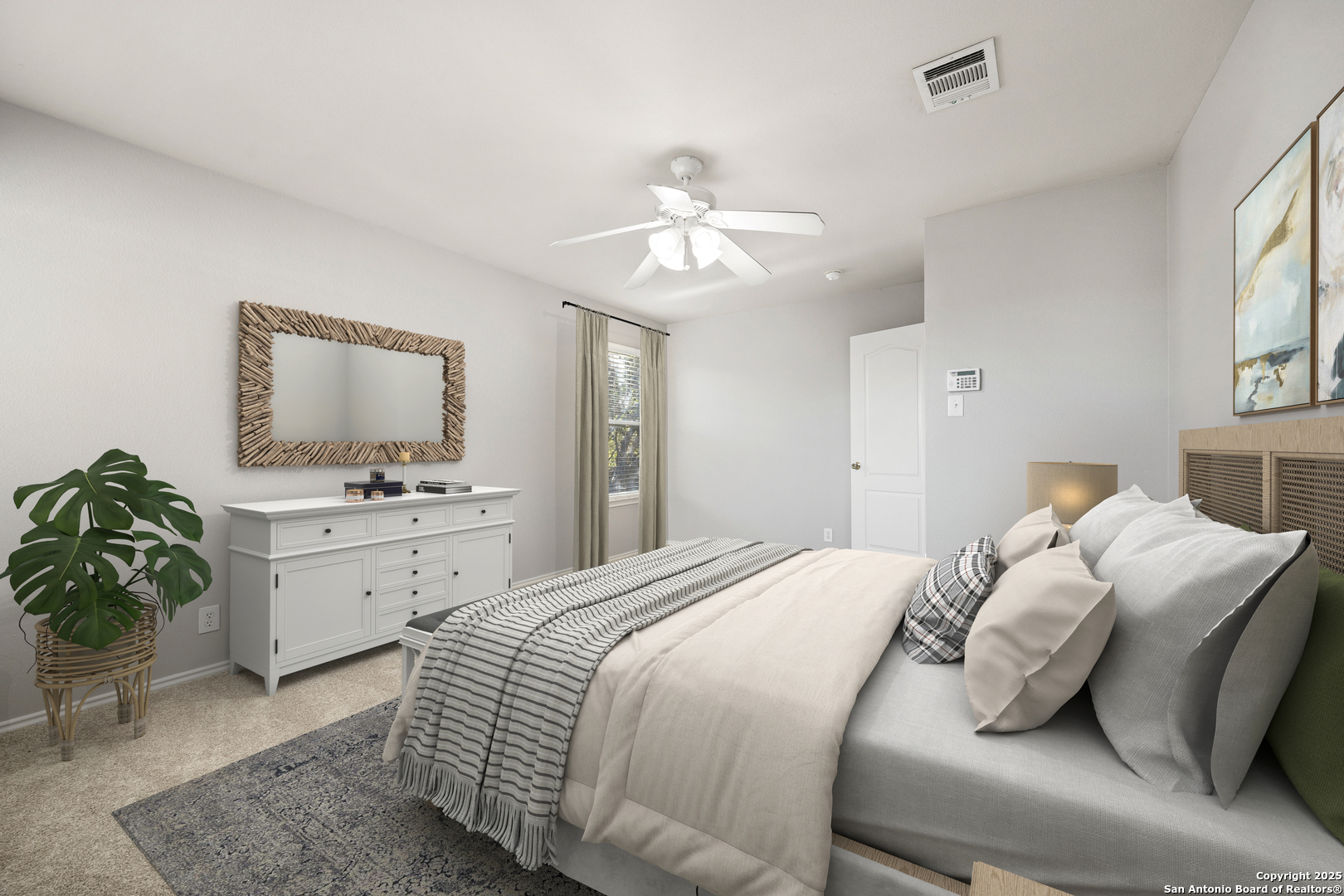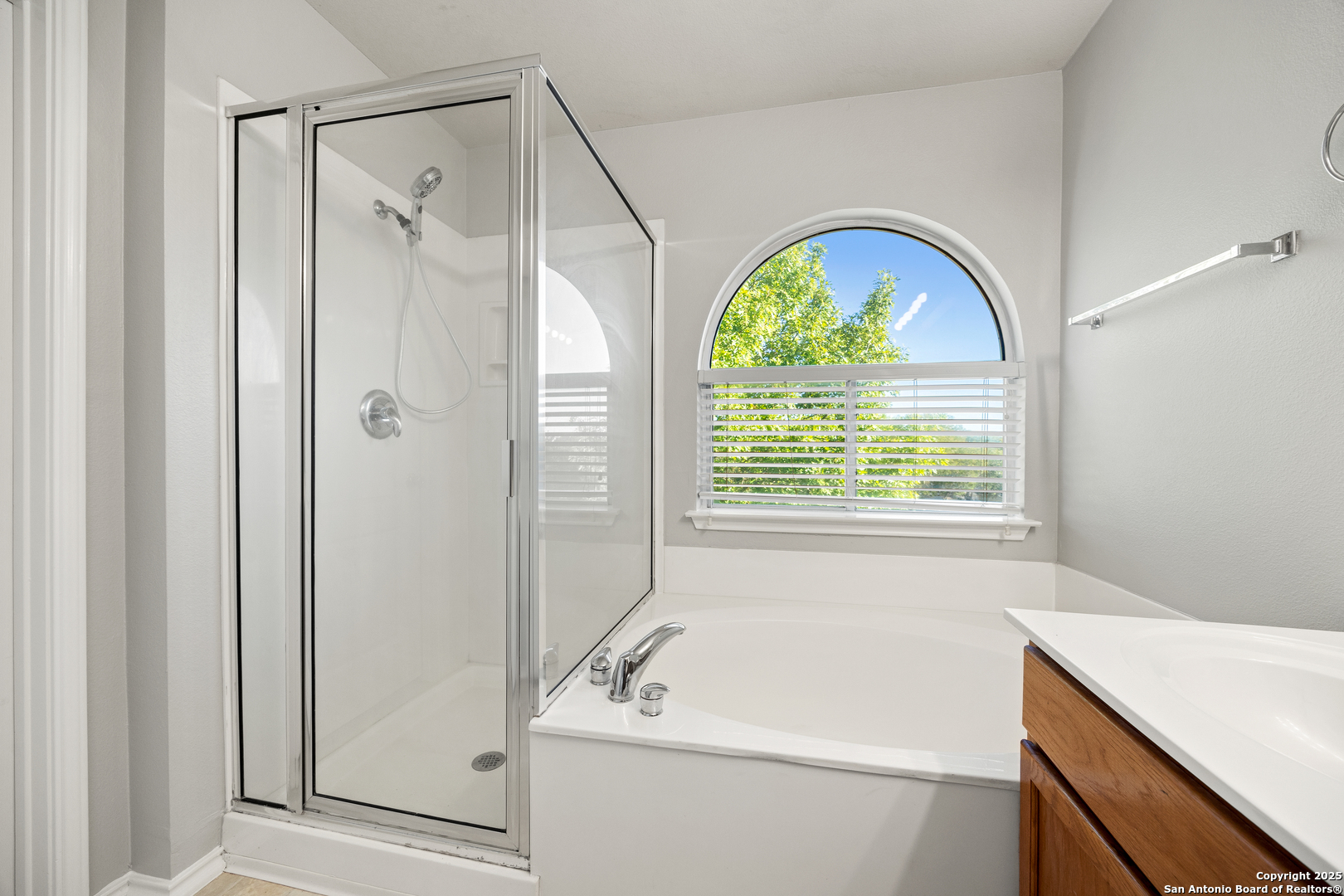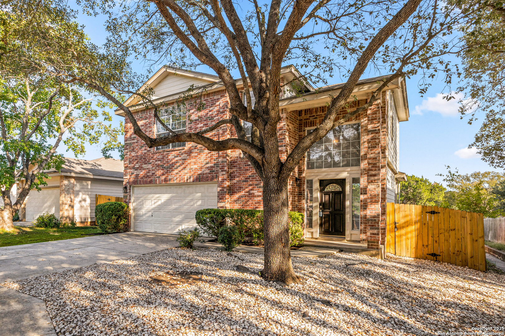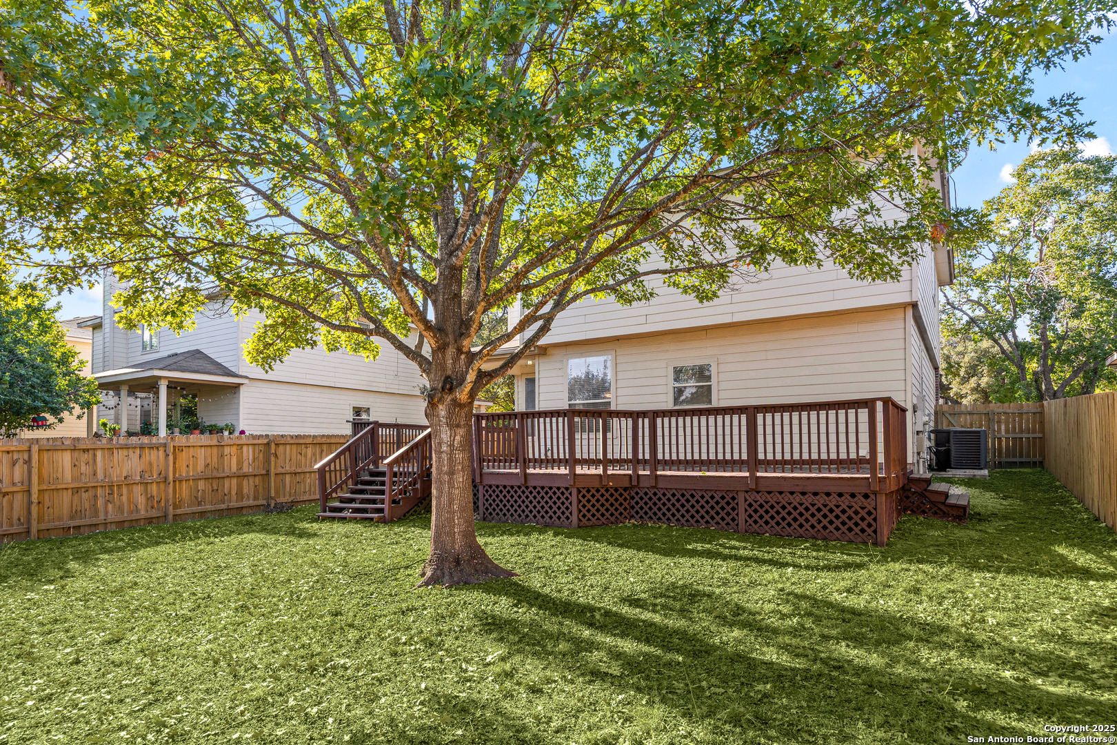 This move-in ready two-story home in Steubing Ranch offers a comfortable layout and an inviting open floor plan. The many windows throughout the home allow natural light to enhance each room. The main level features an island kitchen, living and dining areas, offering plenty of room for everyday living and hosting. Upstairs, you'll find an additional living area that works well as a game room, TV area, or home office. The large primary suite provides a relaxing retreat with a soaking tub, walk-in shower, and a spacious walk-in closet. Step outside to a beautiful backyard with a large deck, lawn space, and mature trees that offer shade and privacy. Recent updates include a new roof in 2022, new fencing and gate added in July 2025, new carpet in October 2025, and fresh interior paint in October 2025. Steubing Ranch is known for great schools, a welcoming community environment, HOA events, and access to the neighborhood pool. Enjoy being near McClain Park, shopping, schools, and just about 30 minutes from Fort Sam/BAMC. This is a wonderful opportunity to enjoy comfort, convenience, and a friendly community setting. Book your personal tour today!