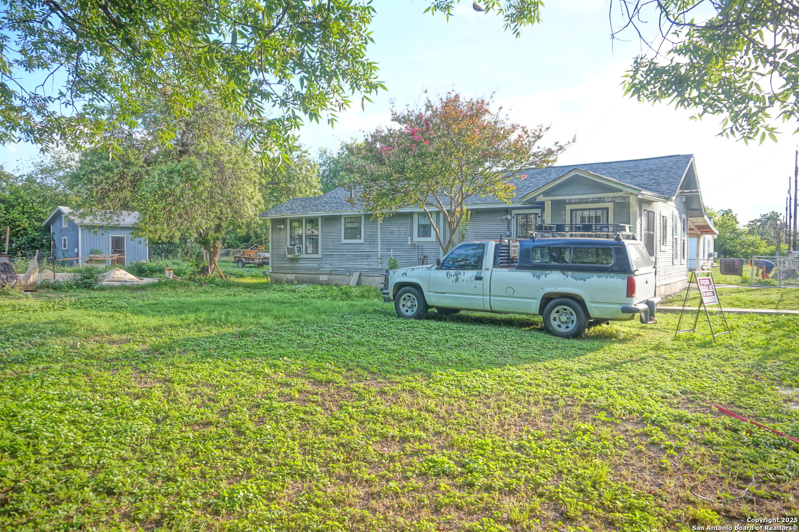 This beautifully updated 3-bedroom, 1-bathroom 1940 home sits on a massive 15,000 sq ft lot, just minutes from downtown and Mission Trail. Featuring central air and heat, the home offers original hardwood floors in two bedrooms and laminate flooring throughout the rest of the house. Enjoy ceiling fans in key areas and convenient washer/dryer connections. The bathroom has been updated with modern fixtures. Outside, you'll find a large carport, two detached garages, and a spacious concrete slab-perfect for additional parking, entertaining, or expansion. Don't miss the opportunity to own this well-maintained property with tons of potential and a prime location! Owner finance available