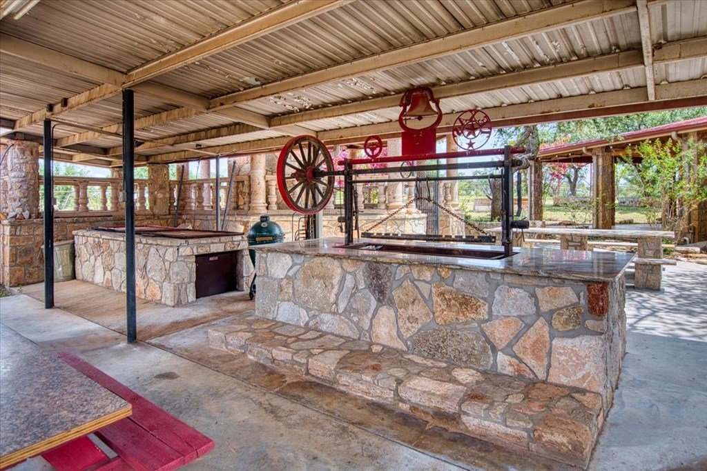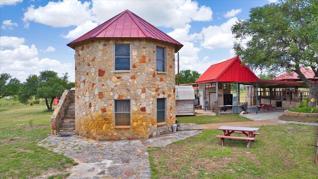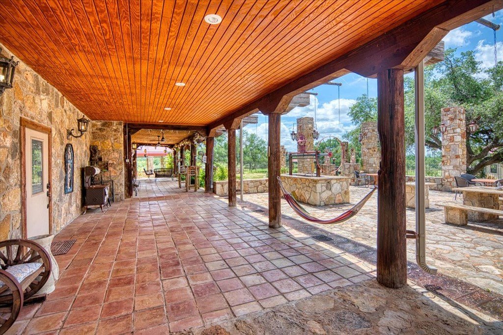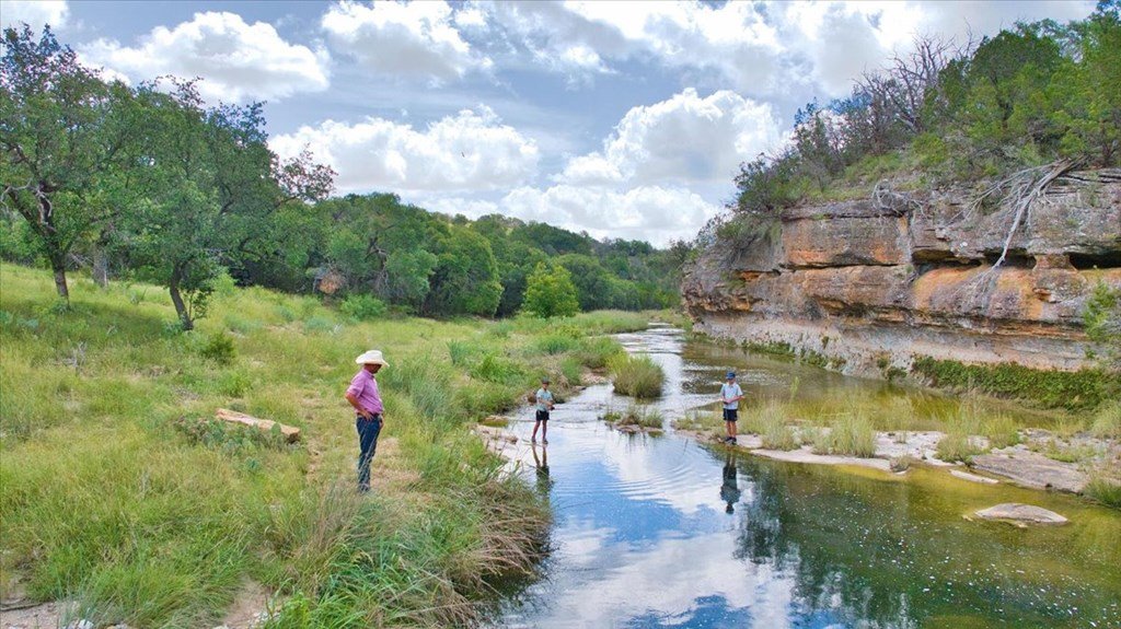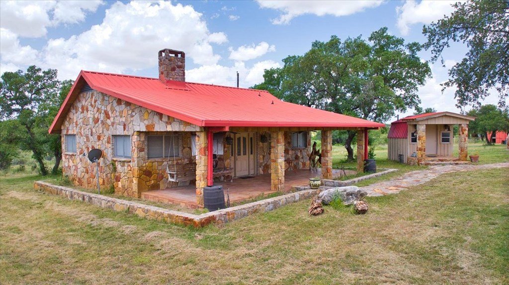 Just 11 miles west of Mason, this 389.55-acre Hill Country Ranch features over 1200 ft. of year-round, spring-fed Leon Creek. The landscape begins with open grazing fields and transitions into scenic hilltop terrain with panoramic views for miles. A 6,000 sq ft compound headquarters includes the main rock residence, two guest homes, multiple outdoor entertainment areas with BarBQ pits, and numerous outbuildings. There is also an outdoor pavilion with hot tub, and a large water fountain. Additional improvements include a horse barn with stalls, cattle pens, two green houses, three wells, (including a 50 GPM) and a large stocked tank with a fishing bridge. Wild life is abundant with white tail deer, turkey, hogs and more. All stands and feeders convey with the sale of the property. Whether you are looking for a recreational getaway, working ranch, or corporate retreat, Leon Creek Ranch offers Texas Hill Country living at its best.