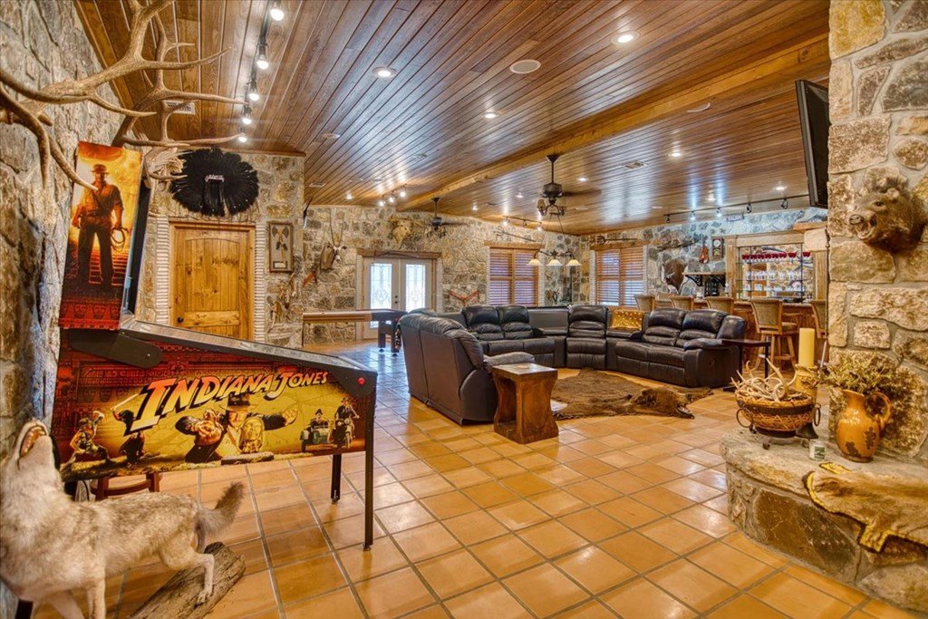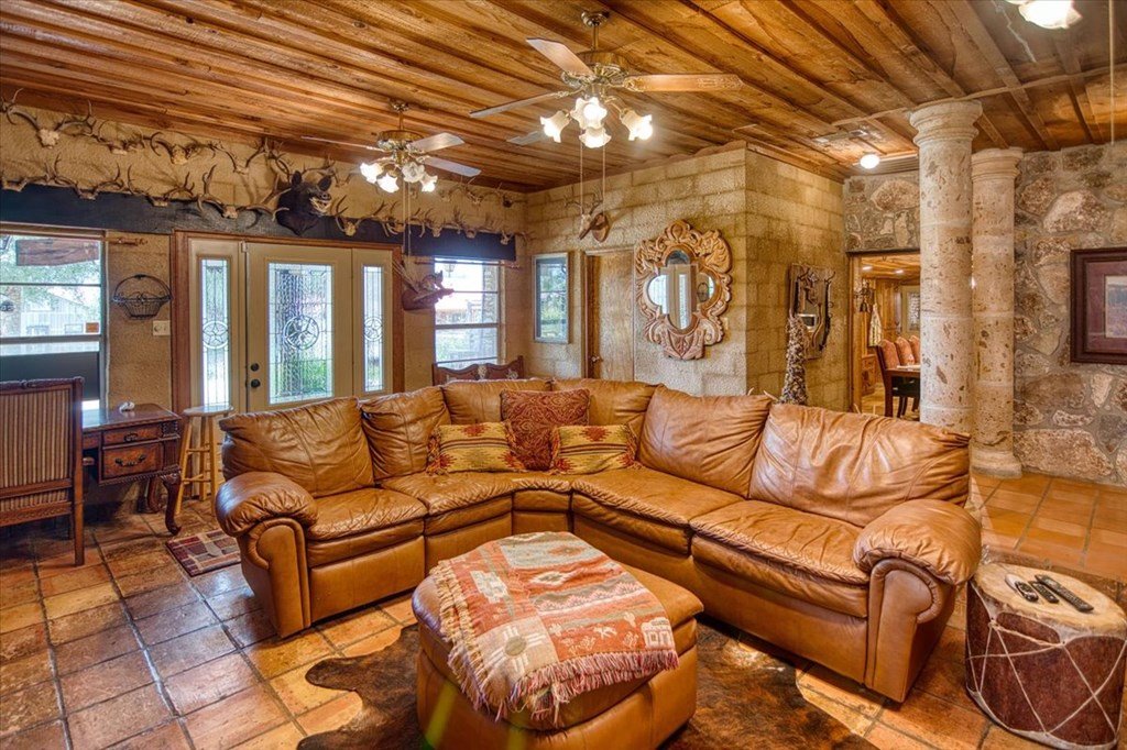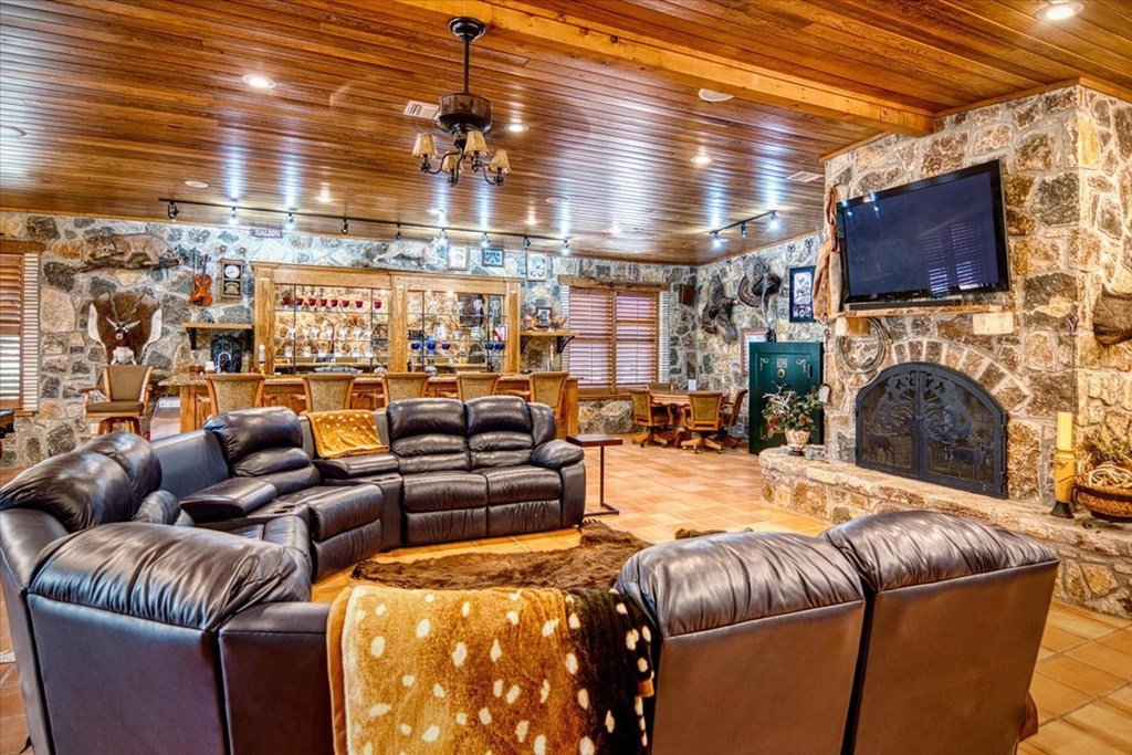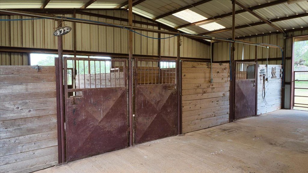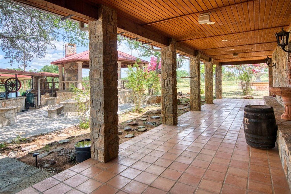 Just 11 miles west of Mason, this 389.55-acre Hill Country Ranch features over 1200 ft. of year-round, spring-fed Leon Creek. The landscape begins with open grazing fields and transitions into scenic hilltop terrain with panoramic views for miles. A 6,000 sq ft compound headquarters includes the main rock residence, two guest homes, multiple outdoor entertainment areas with BarBQ pits, and numerous outbuildings. There is also an outdoor pavilion with hot tub, and a large water fountain. Additional improvements include a horse barn with stalls, cattle pens, two green houses, three wells, (including a 50 GPM) and a large stocked tank with a fishing bridge. Wild life is abundant with white tail deer, turkey, hogs and more. All stands and feeders convey with the sale of the property. Whether you are looking for a recreational getaway, working ranch, or corporate retreat, Leon Creek Ranch offers Texas Hill Country living at its best.