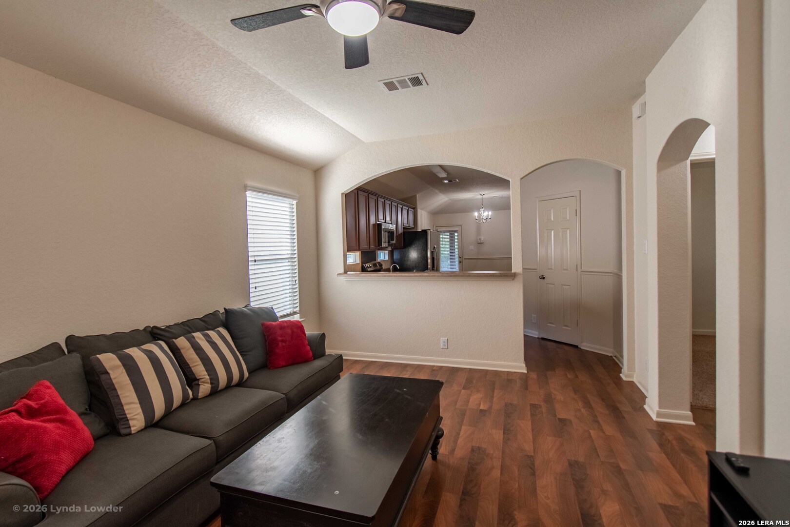 Lovingly cared for by its original owner, this charming one story home sits on a .18 acre corner lot in Whisperwind and shines with fresh interior and exterior paint. The open layout features three bedrooms and two baths, with laminate/tile flooring in common areas (carpet in bedrooms) and raised ceilings that slope from an 8 exterior plate line to 9 for an airy feel. The chef's kitchen boasts 42 cabinets with wainscoting, higher counters, reverse osmosis water filtration, decorative windows for abundant natural light, and a breakfast bar-perfect for casual dining. It flows into a dining area also enhanced with wainscoting. The spacious owner's suite offers a garden tub, upgraded walkin shower with an 8 shower head, raised vanity, and a generous walk in closet while two secondary bedrooms share a full bath off the living room. Additional highlights include a whole home water softener, rain gutters, 2 faux blinds throughout, An enclosed screened breezeway links the main home to the single car garage and doubles as a relaxing porch, overlooking a large Bermuda grass backyard and extended driveway-perfect for year round entertaining. Minutes from Resolute Hospital, Creekside shopping/dining, and major highways, this move in ready gem offers convenience and charm in equal measure. Seller will contribute up to $5,000 FLEX CREDIT with an acceptable offer!