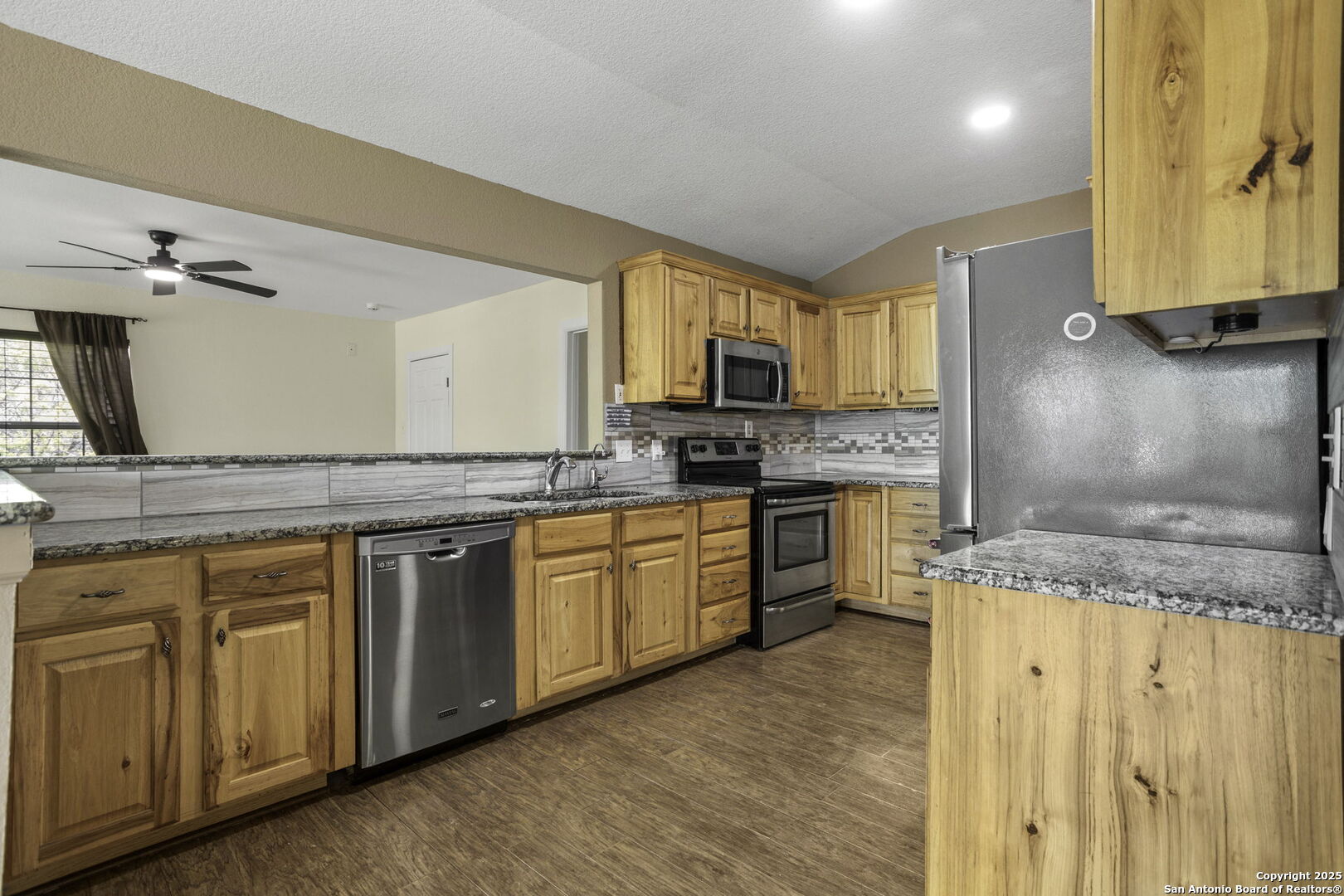 Discover this fully renovated 3-bedroom, 2-bath home with an office available for lease in Canyon Lake, boasting stunning lake views and convenient proximity to public boat ramps. This property offers updated electrical and plumbing systems, a spacious layout featuring one living area, a separate dining room, two eating areas, a breakfast bar, study/office, utility room inside, high-speed internet access, main-level laundry, and walk-in closets. Enjoy outdoor living with a large RV parking area including a 50-amp hookup, boat/trailer parking on slabs, a two-car attached tandem garage, a one-car carport, a 30'x20' metal workshop on slab, and an 18'x10' shed. The fully fenced yard includes an automatic gate, while additional highlights encompass a relaxing hot tub in a private enclosed patio off the primary bedroom, a security system with cameras and motion sensors, and a dumbwaiter for easy transport to the main level. Neighborhood amenities include waterfront access, a pool, tennis courts, park/playground, basketball and volleyball courts, and boat ramp. This pre-owned home on a slab foundation with cement fiber exterior and metal roof is energy-efficient and ready for your enjoyment-all information should be independently verified.