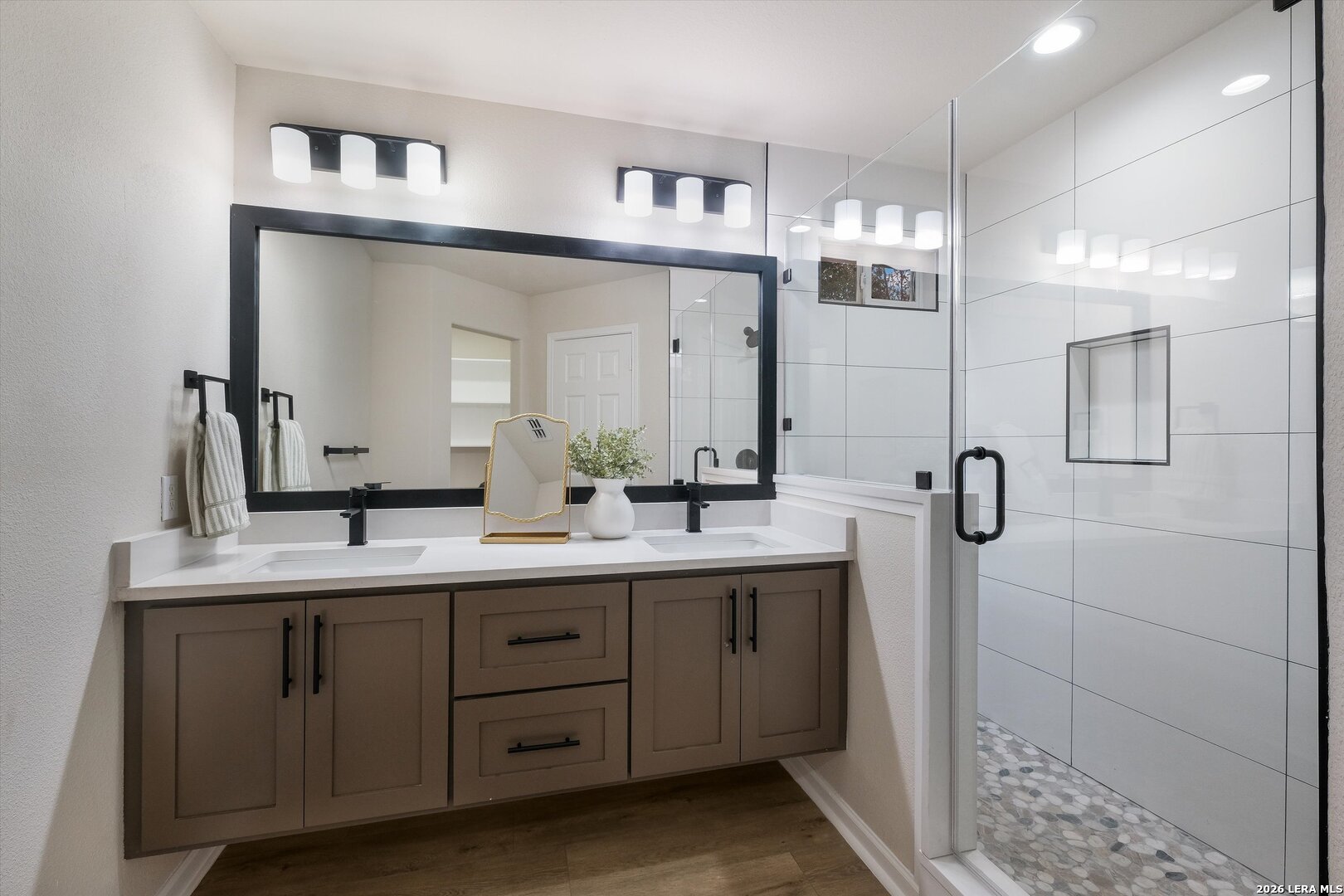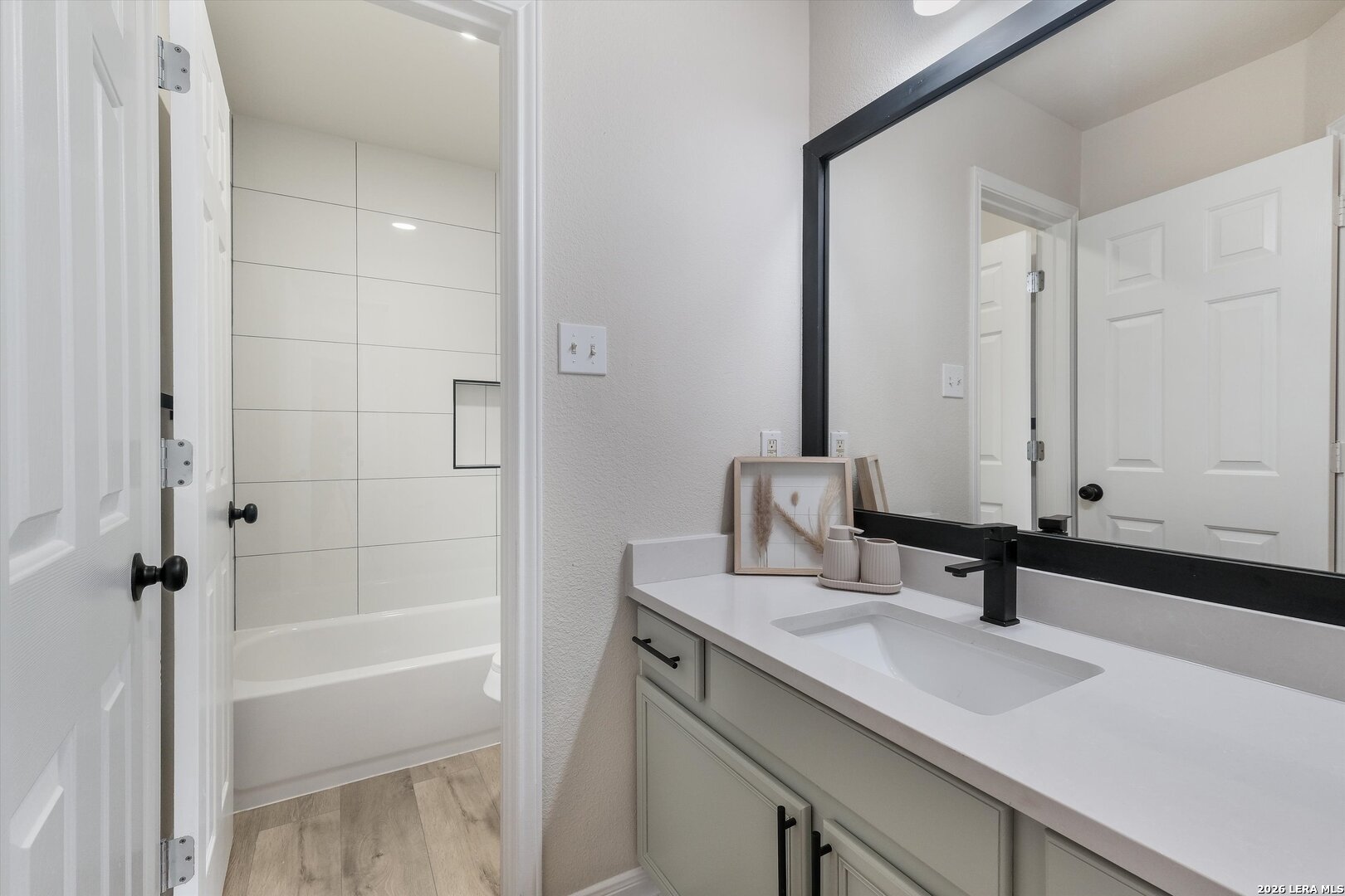 Come see this beautiful, single-story home with no steps, featuring three bedrooms and two bathrooms. Recently renovated, it offers gorgeous updated flooring, modernized showers, ceiling fans in bedrooms, updated lighting throughout and stylish bathroom cabinetry. The open floor plan makes the home feel bright and inviting, perfect for everyday living or entertaining. The primary bedroom features patio doors that open directly to the backyard and swimming pool. Step outside and enjoy the updated swimming pool-ideal for relaxing on hot summer nights. Fresh interior and exterior paint complete the look and garage updated with proxy floors. Conveniently located near 1604 with easy access to I-35 and Wurzbach Parkway, and zoned to excellent NEISD schools. Don't miss the oppurtunity to own a beautiful one story home with a pool in a great location.