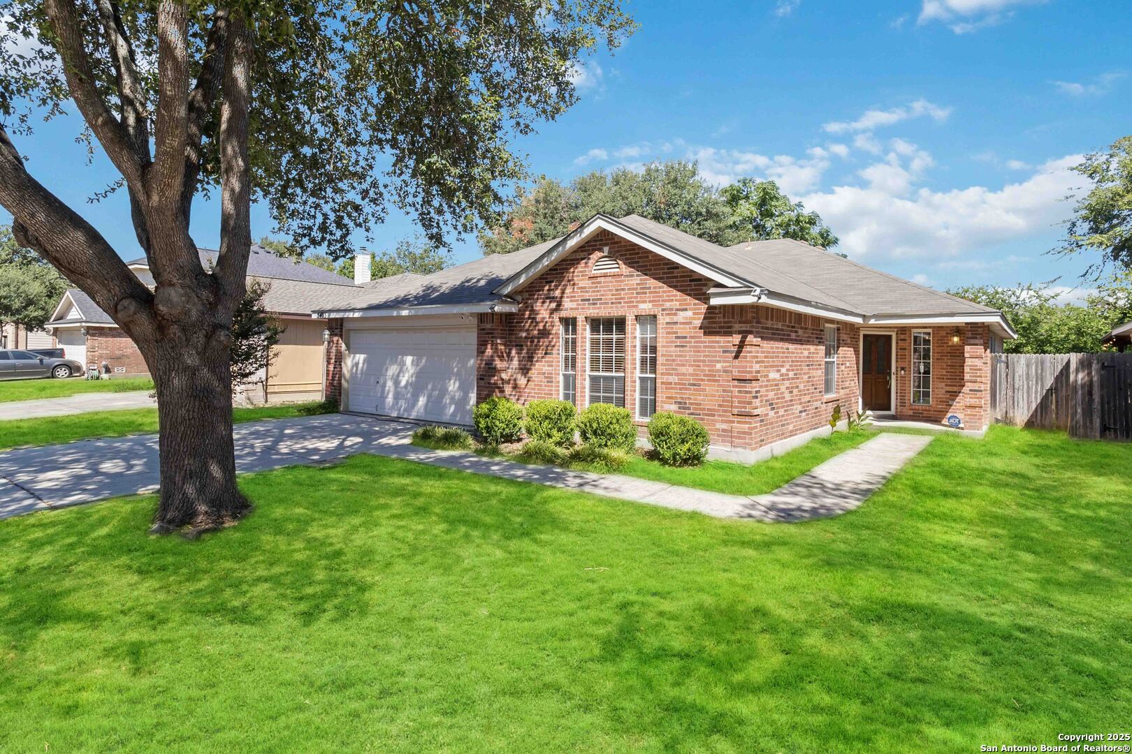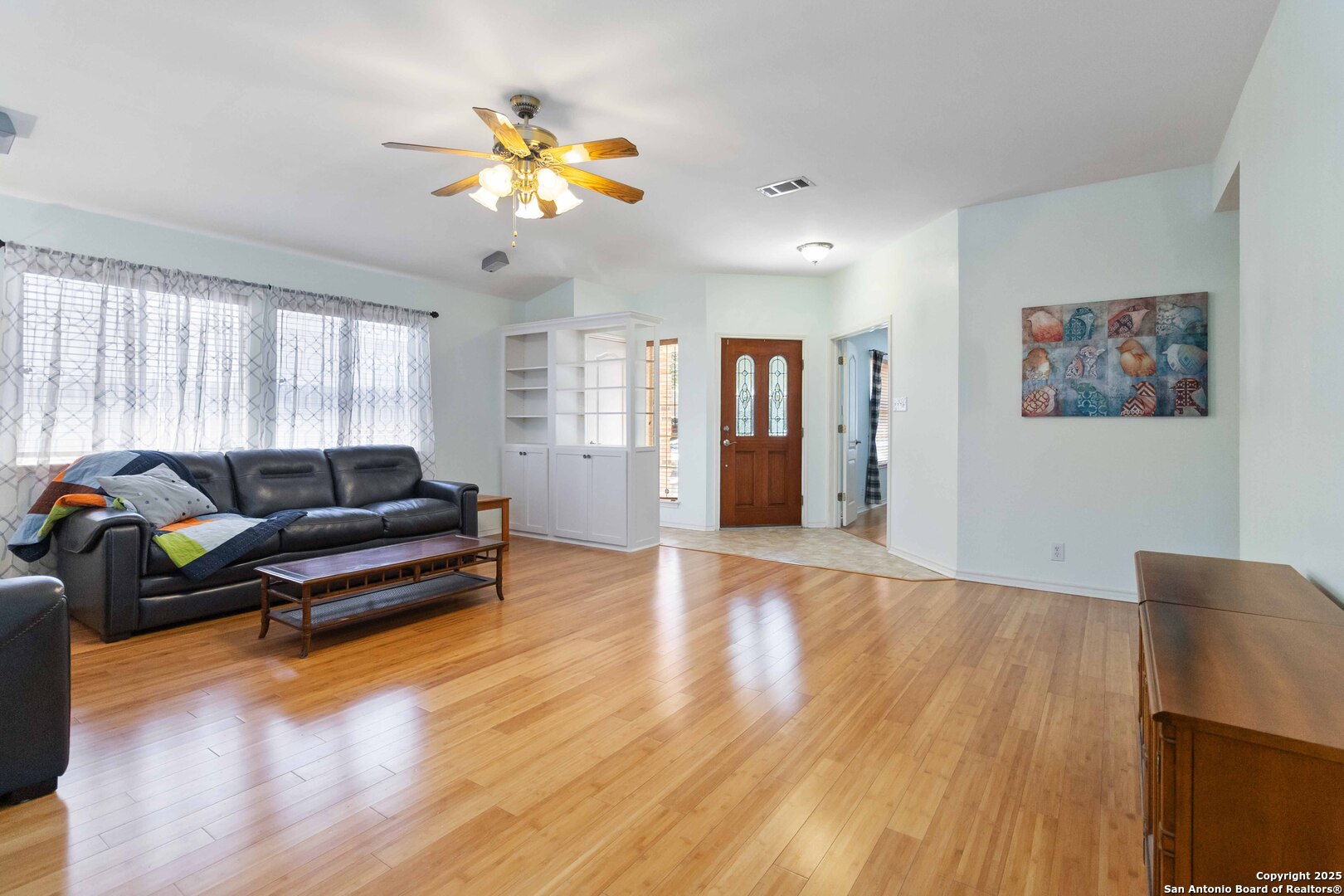 Welcome to your dream sanctuary nestled in the serene neighborhood of Pheasant Ridge, located in the highly sought-after 78247 area! This beautifully maintained one-story home invites you to experience a harmonious blend of comfort and style. Boasting three spacious bedrooms and two baths, this residence is designed for both relaxation and functionality. Step inside and be captivated by the bright, open floor plan accentuated by exquisite Bamboo Flooring throughout-perfect for those who appreciate a carpet-free living space. The expansive living room features custom built-ins that add both character and storage solutions, while the separate dining room offers an ideal setting for memorable gatherings. Culinary enthusiasts will fall in love with the spacious island kitchen, which comes equipped with ample cabinet and counter space. The kitchen seamlessly integrates with the breakfast nook, creating a perfect spot for casual dining. A large pantry and convenient laundry room further enhance everyday practicality. The master suite is a true retreat, featuring an enormous walk-in closet that leads to the master bath. Enjoy the beautifully designed shower and double vanities that promise a spa-like experience every day. The secondary bedrooms are equally impressive, offering generous space and large walk-in closets for all your storage needs. Unique to this property is its peaceful setting with no neighbors to the back. Lush greenbelt is the view. Imagine unwinding on the covered patio-a perfect spot for BBQs or simply soaking in the tranquility. Sparkling clean and ready to impress, this residence is a must-see! This home is in the NEISD, close to HEB, shopping, and conveniently accessible to I-35, 1604, 410, and 281. Don't miss out on the opportunity to make this peaceful haven your own.