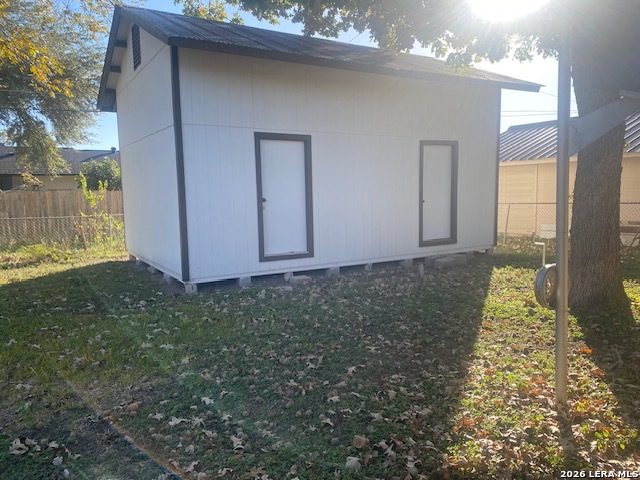 Lovely single story home located in Kirby. Move in ready. Newly painted throughout. 3 bedrooms and 2 baths. Very light and airy. Kitchen has gas cook top and a breakfast/dining area which looks out to a large covered patio and custom built fit pit. Refrigerator conveys. No carpet, all flooring is either tile or new vinyl planks. Lots of storage throughout. Great location in an established neighborhood, close to major highways, Fort Sam and Randolph AFB. Newer roof, spacious backyard with fence. Large extra building approx. 24x16, with two stories with a wide staircase. Endless possibilities such as a storage unit, shop or workroom. Easy to show.