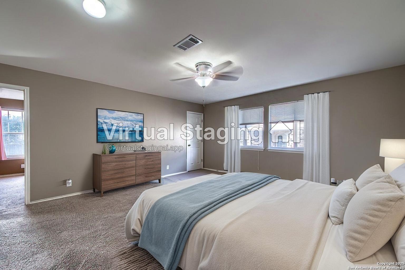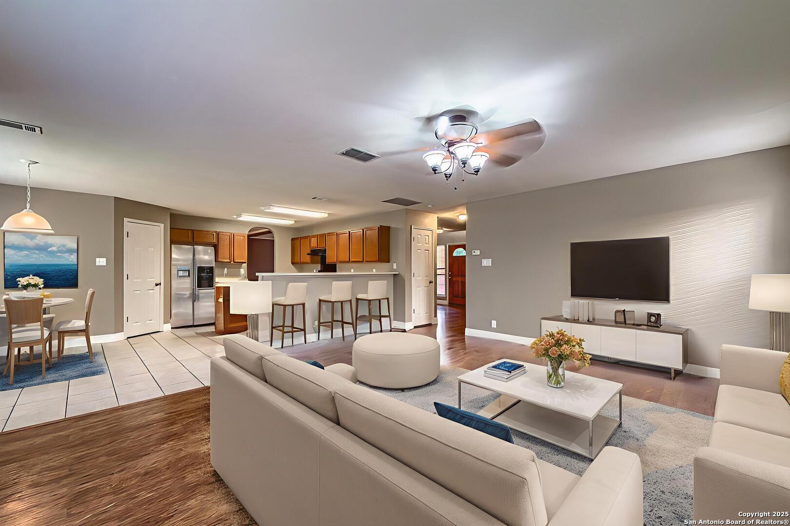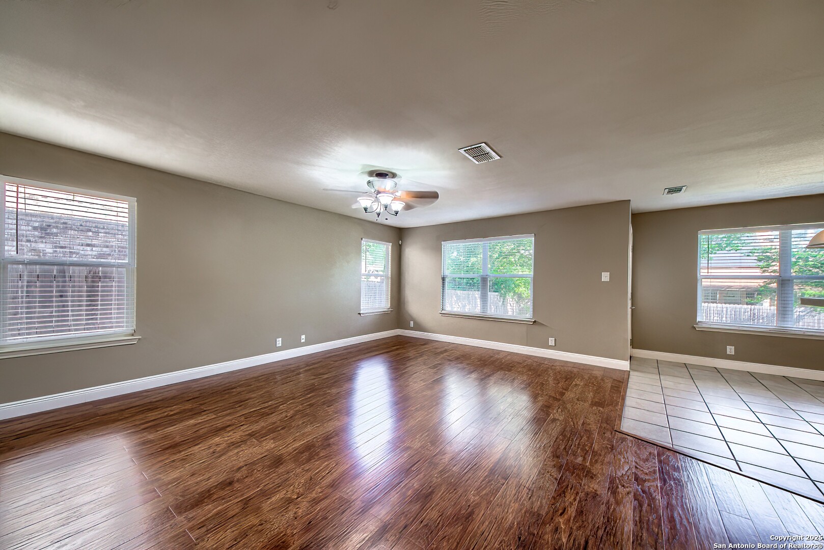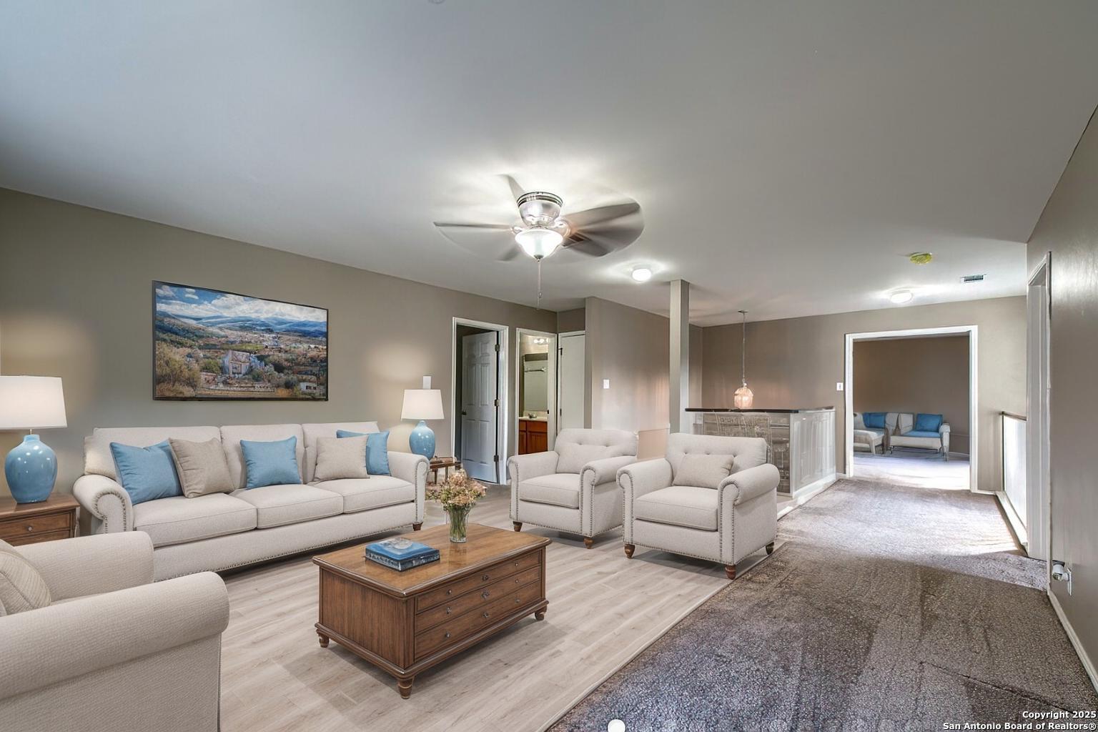 PRESTIGIOUS HOME IN PHEASANT RIDGE- Located in the beautiful and established community of Pheasant Ridge, this meticulously maintained 3-bedroom, 2.5-bath home showcases true pride of ownership and is COMPLETELY MOVE-IN READY! Step inside to find laminate hardwood floors throughout the common areas and ceramic tile in the kitchen, complemented by elegant crown molding in the living and dining rooms. The chef's kitchen is a culinary enthusiast's dream, featuring an eat-in bar, center island, ample counter space, walk-in pantry, and a cozy breakfast area. The spacious family room offers the perfect setting for gatherings and entertaining. A wrought iron staircase leads to a versatile loft/game room, while a stylish catwalk guides you to the expansive primary retreat. The ensuite bath boasts dual vanities, an UPGRADED WALK-IN SHOWER, and a CUSTOMIZED WALK-IN CLOSET with adjustable shelving for optimal organization. Secondary bedrooms also feature walk-in closets and ceiling fans, ensuring comfort and convenience for all. Enjoy the convenience of being just 10 MINUTES FROM BOTH I-35 AND LOOP 1604, with easy access to major shopping and entertainment. Stahl Elementary School and Madison High School are both within walking distance, making this home ideal for families seeking accessibility and top-rated education.