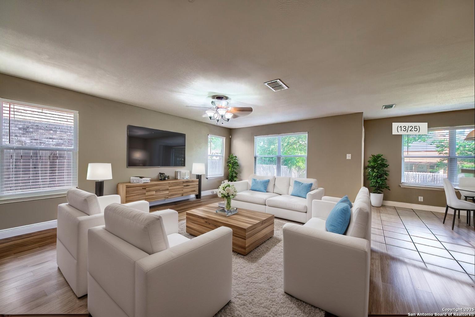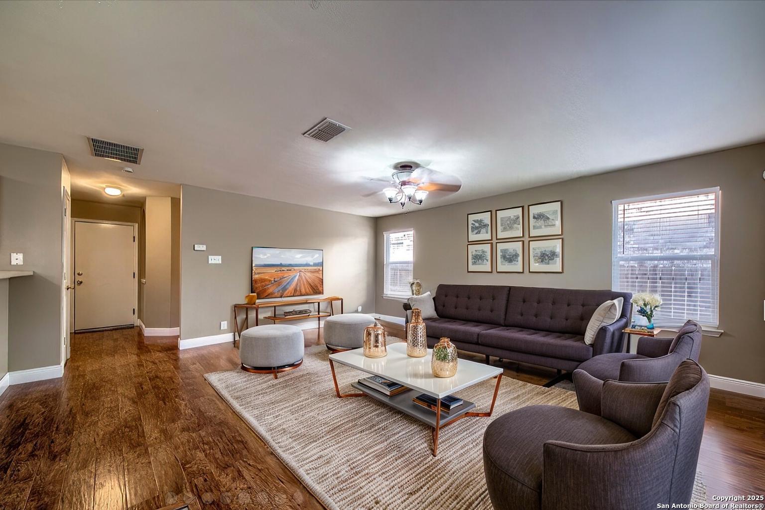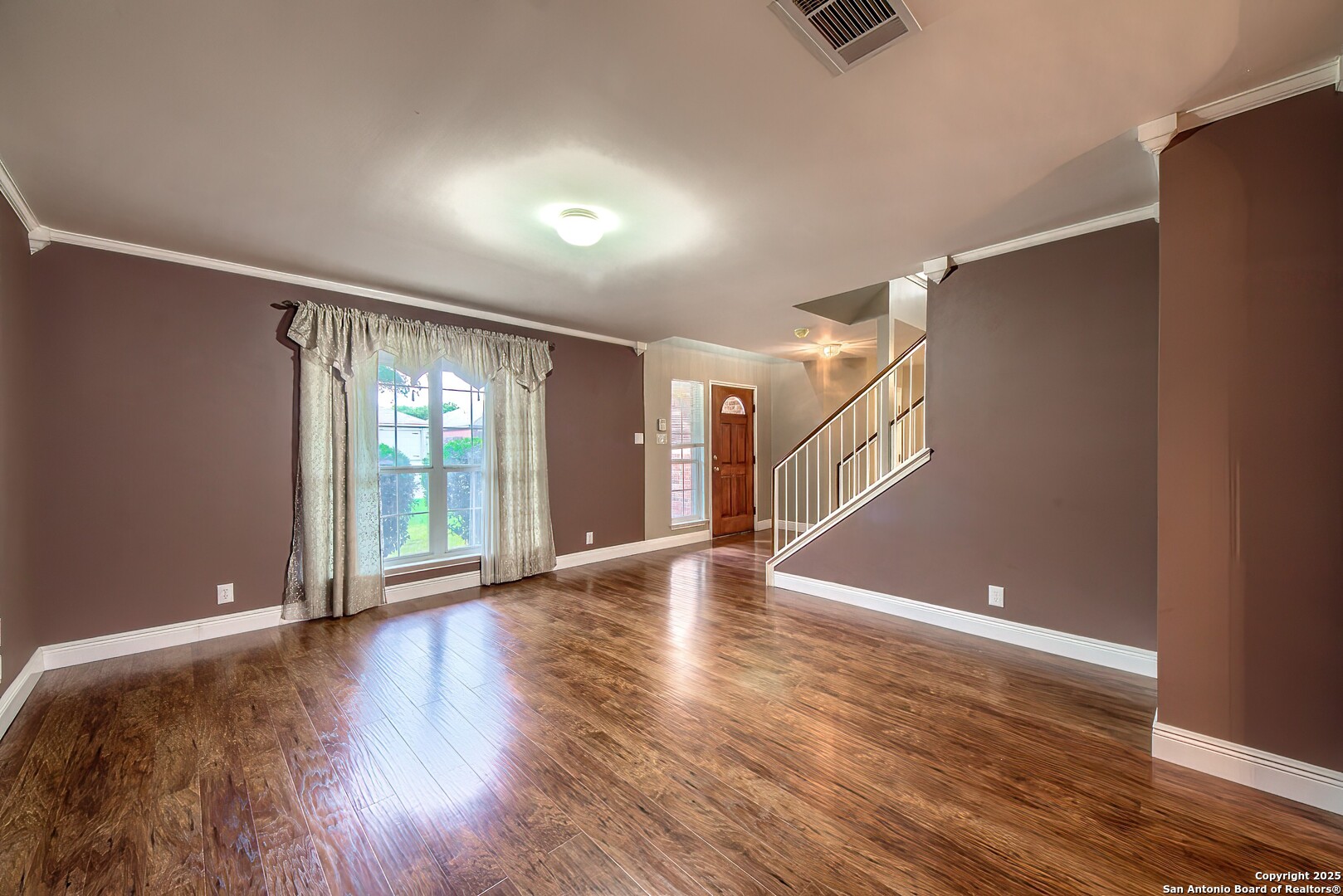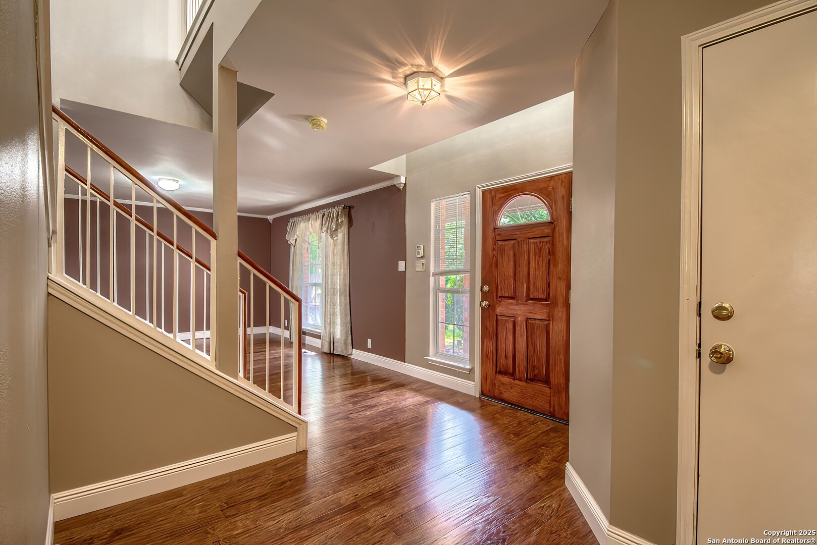 PRESTIGIOUS HOME IN PHEASANT RIDGE- Located in the beautiful and established community of Pheasant Ridge, this meticulously maintained 3-bedroom, 2.5-bath home showcases true pride of ownership and is COMPLETELY MOVE-IN READY! Step inside to find laminate hardwood floors throughout the common areas and ceramic tile in the kitchen, complemented by elegant crown molding in the living and dining rooms. The chef's kitchen is a culinary enthusiast's dream, featuring an eat-in bar, center island, ample counter space, walk-in pantry, and a cozy breakfast area. The spacious family room offers the perfect setting for gatherings and entertaining. A wrought iron staircase leads to a versatile loft/game room, while a stylish catwalk guides you to the expansive primary retreat. The ensuite bath boasts dual vanities, an UPGRADED WALK-IN SHOWER, and a CUSTOMIZED WALK-IN CLOSET with adjustable shelving for optimal organization. Secondary bedrooms also feature walk-in closets and ceiling fans, ensuring comfort and convenience for all. Enjoy the convenience of being just 10 MINUTES FROM BOTH I-35 AND LOOP 1604, with easy access to major shopping and entertainment. Stahl Elementary School and Madison High School are both within walking distance, making this home ideal for families seeking accessibility and top-rated education.