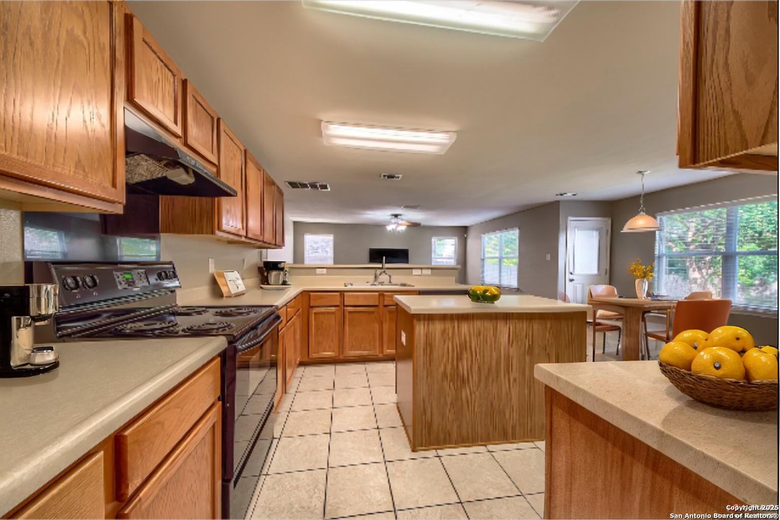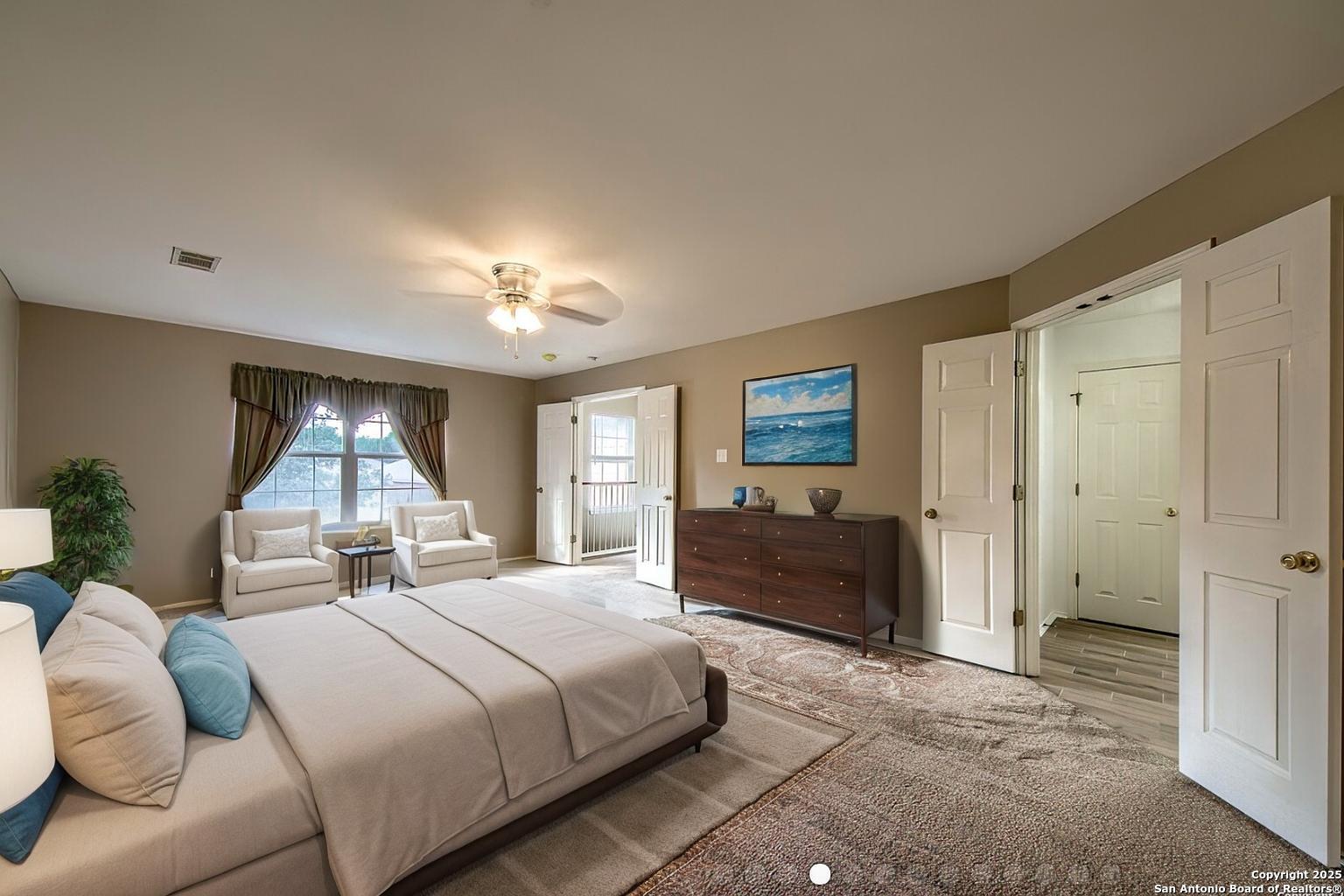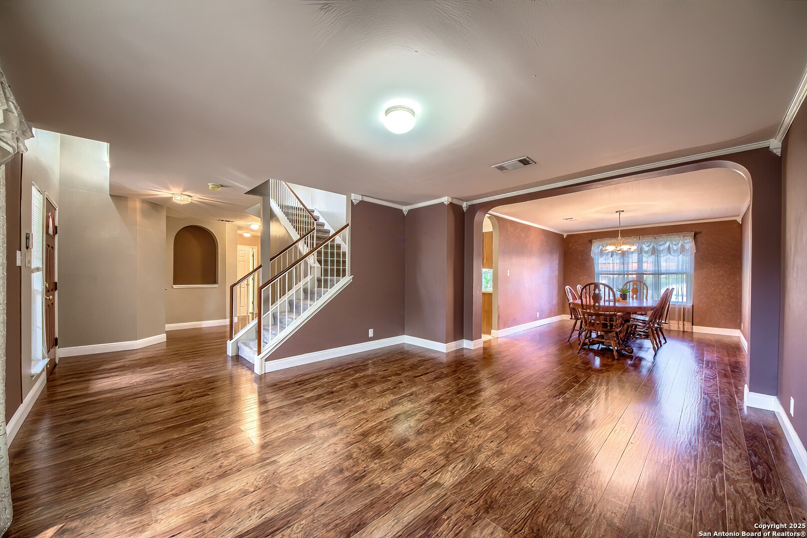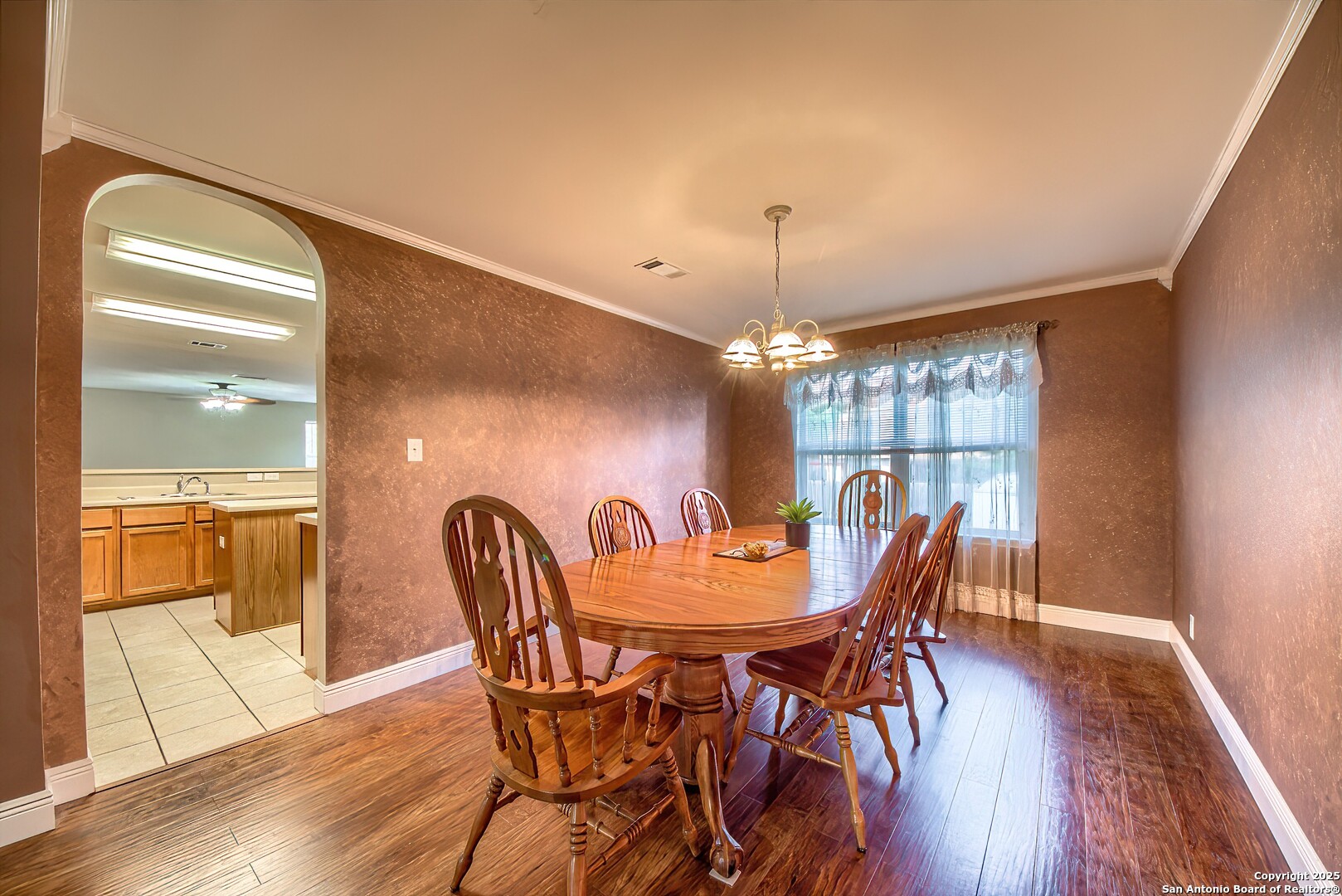 PRESTIGIOUS HOME IN PHEASANT RIDGE- Located in the beautiful and established community of Pheasant Ridge, this meticulously maintained 3-bedroom, 2.5-bath home showcases true pride of ownership and is COMPLETELY MOVE-IN READY! Step inside to find laminate hardwood floors throughout the common areas and ceramic tile in the kitchen, complemented by elegant crown molding in the living and dining rooms. The chef's kitchen is a culinary enthusiast's dream, featuring an eat-in bar, center island, ample counter space, walk-in pantry, and a cozy breakfast area. The spacious family room offers the perfect setting for gatherings and entertaining. A wrought iron staircase leads to a versatile loft/game room, while a stylish catwalk guides you to the expansive primary retreat. The ensuite bath boasts dual vanities, an UPGRADED WALK-IN SHOWER, and a CUSTOMIZED WALK-IN CLOSET with adjustable shelving for optimal organization. Secondary bedrooms also feature walk-in closets and ceiling fans, ensuring comfort and convenience for all. Enjoy the convenience of being just 10 MINUTES FROM BOTH I-35 AND LOOP 1604, with easy access to major shopping and entertainment. Stahl Elementary School and Madison High School are both within walking distance, making this home ideal for families seeking accessibility and top-rated education.