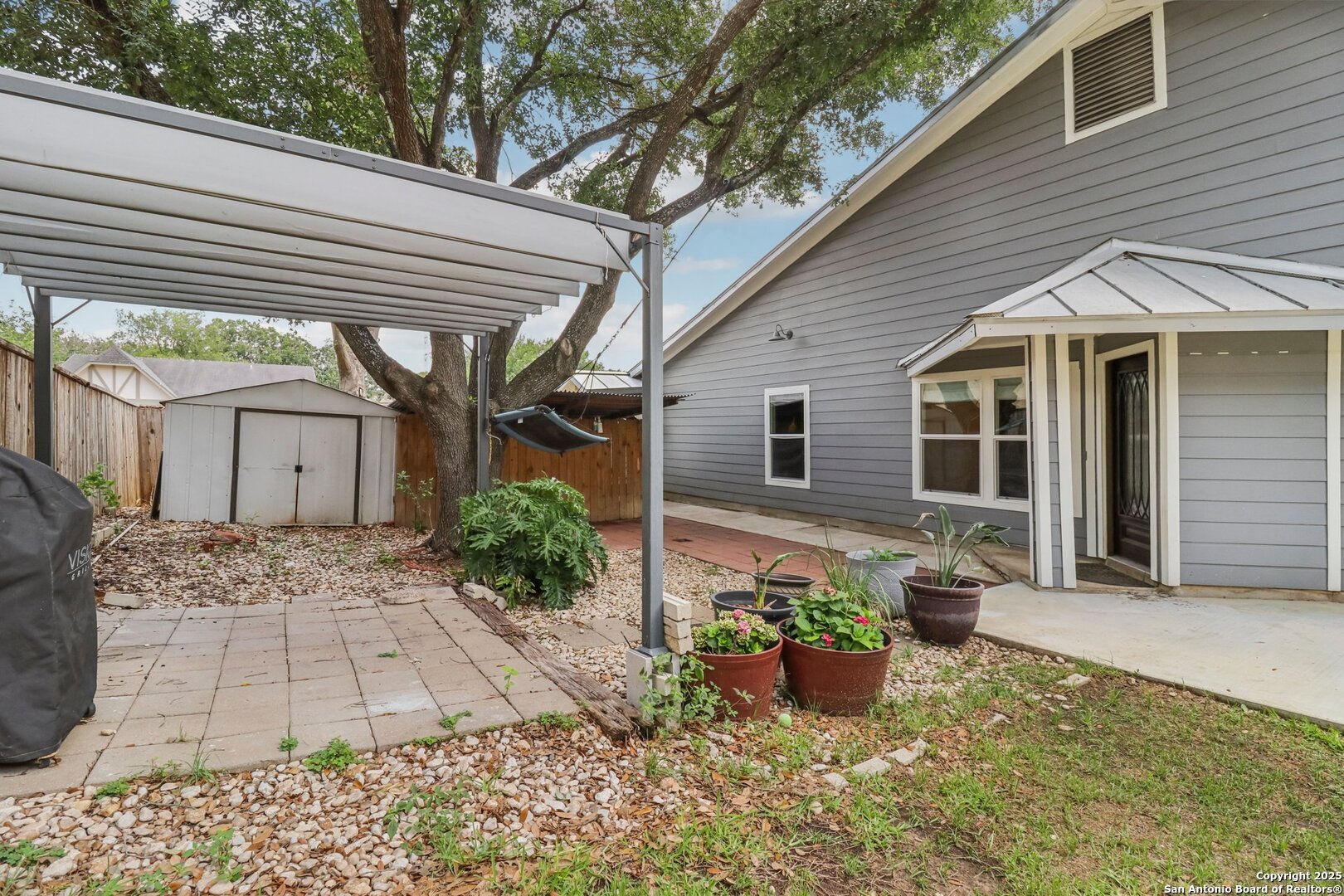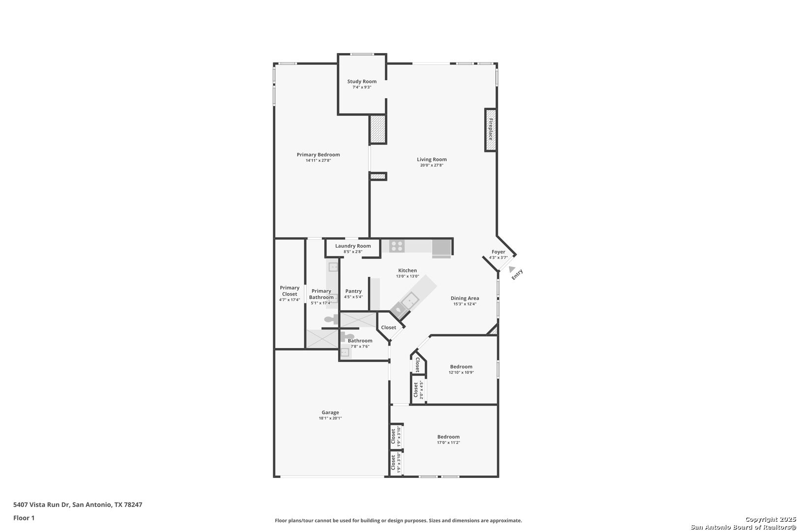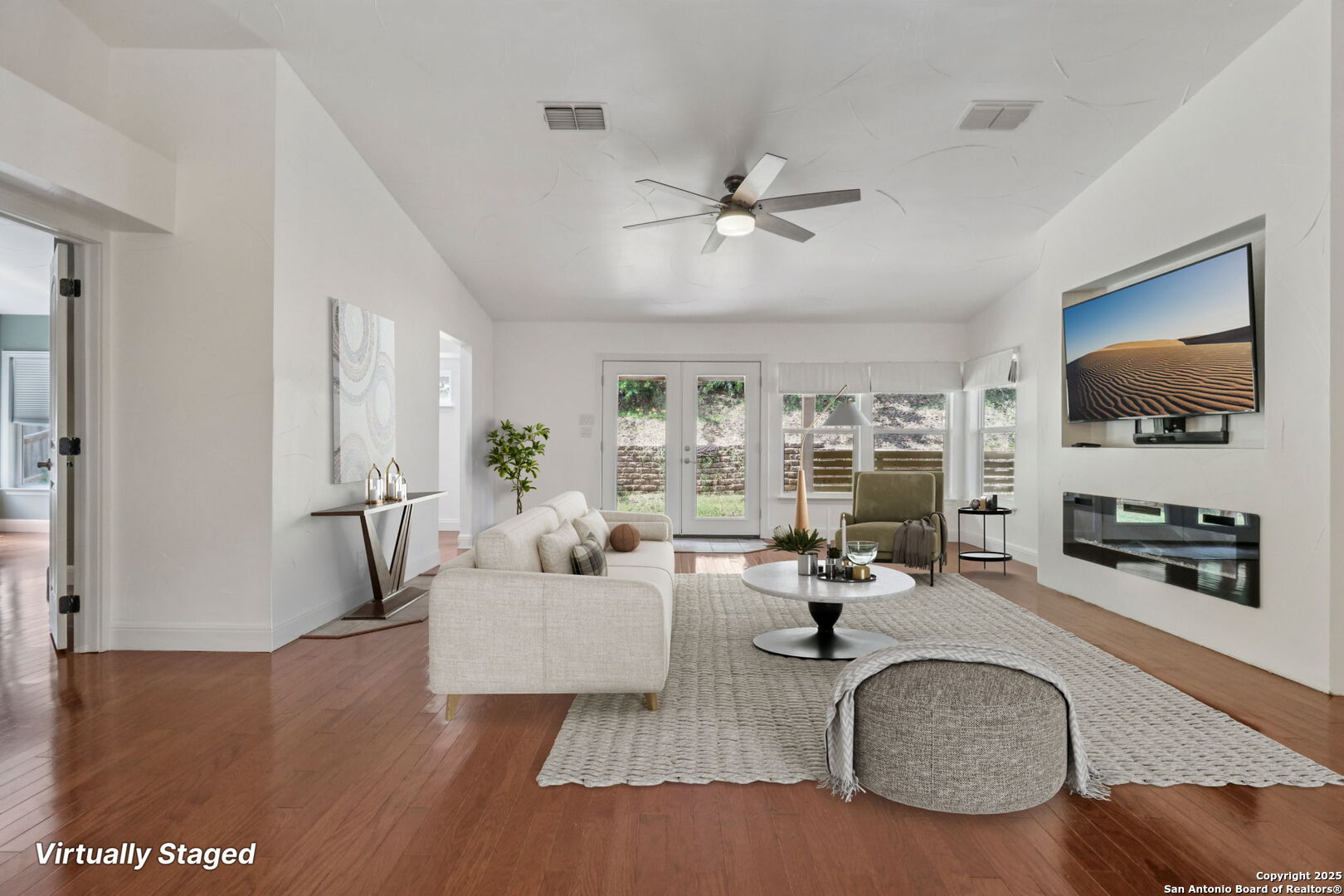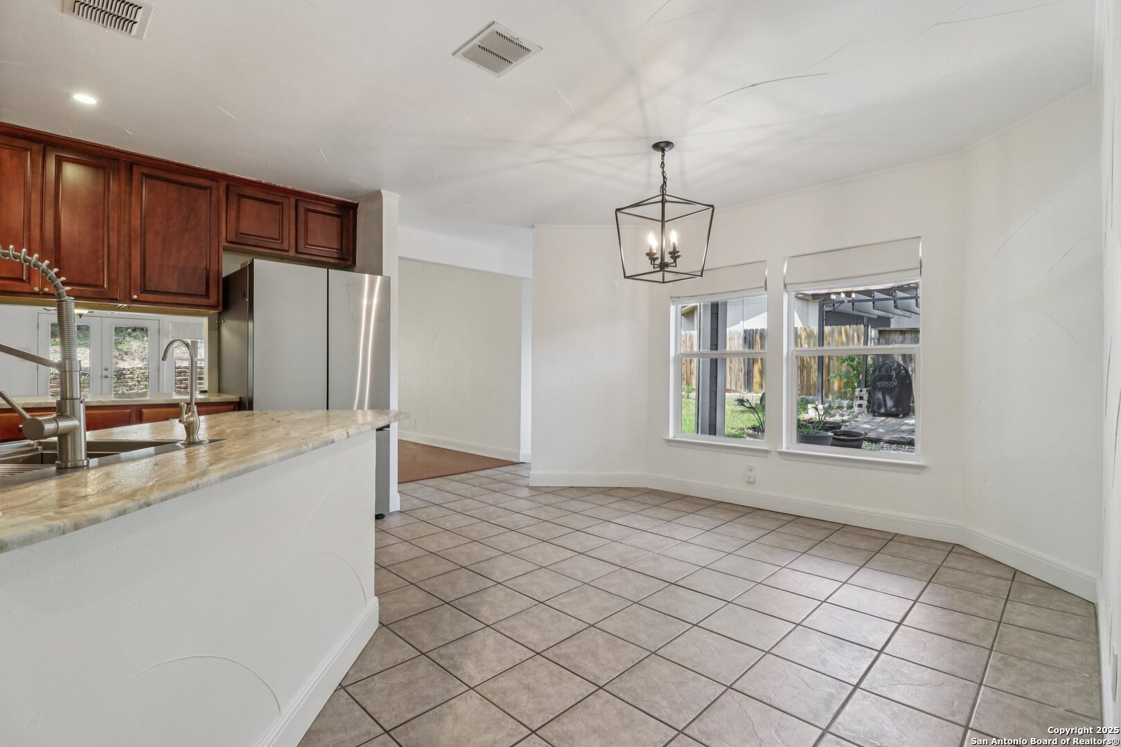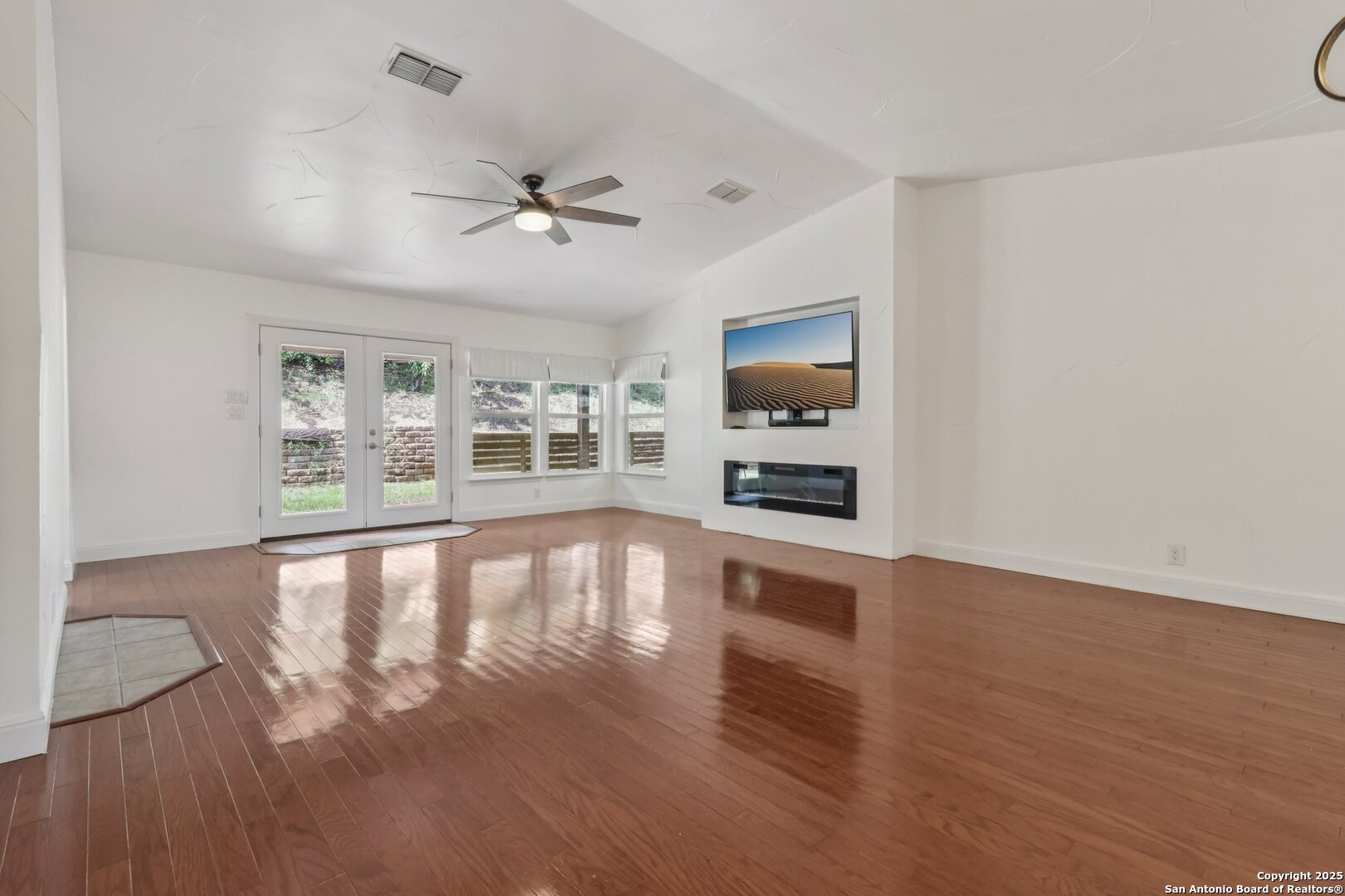 Welcome to 5407 Vista Run - A thoughtfully updated home in a desirable NEISD neighborhood! This beautifully maintained property features a durable metal roof and solar panels, providing energy efficiency and long-term savings. Inside, you'll find fresh interior paint and no carpet throughout, giving the home a clean, modern feel. The kitchen and bathrooms have been recently renovated, offering stylish finishes and functionality. A cozy new electric fireplace and built-in entertainment center create a perfect focal point in the living area, while a small private office provides a quiet space for working from home or managing daily tasks. Additional upgrades include a whole-home water filtration system for clean, healthy water throughout. Situated in a quiet, established neighborhood with quick access to schools, shopping, and major highways, this move-in-ready home combines comfort, efficiency, and convenience.