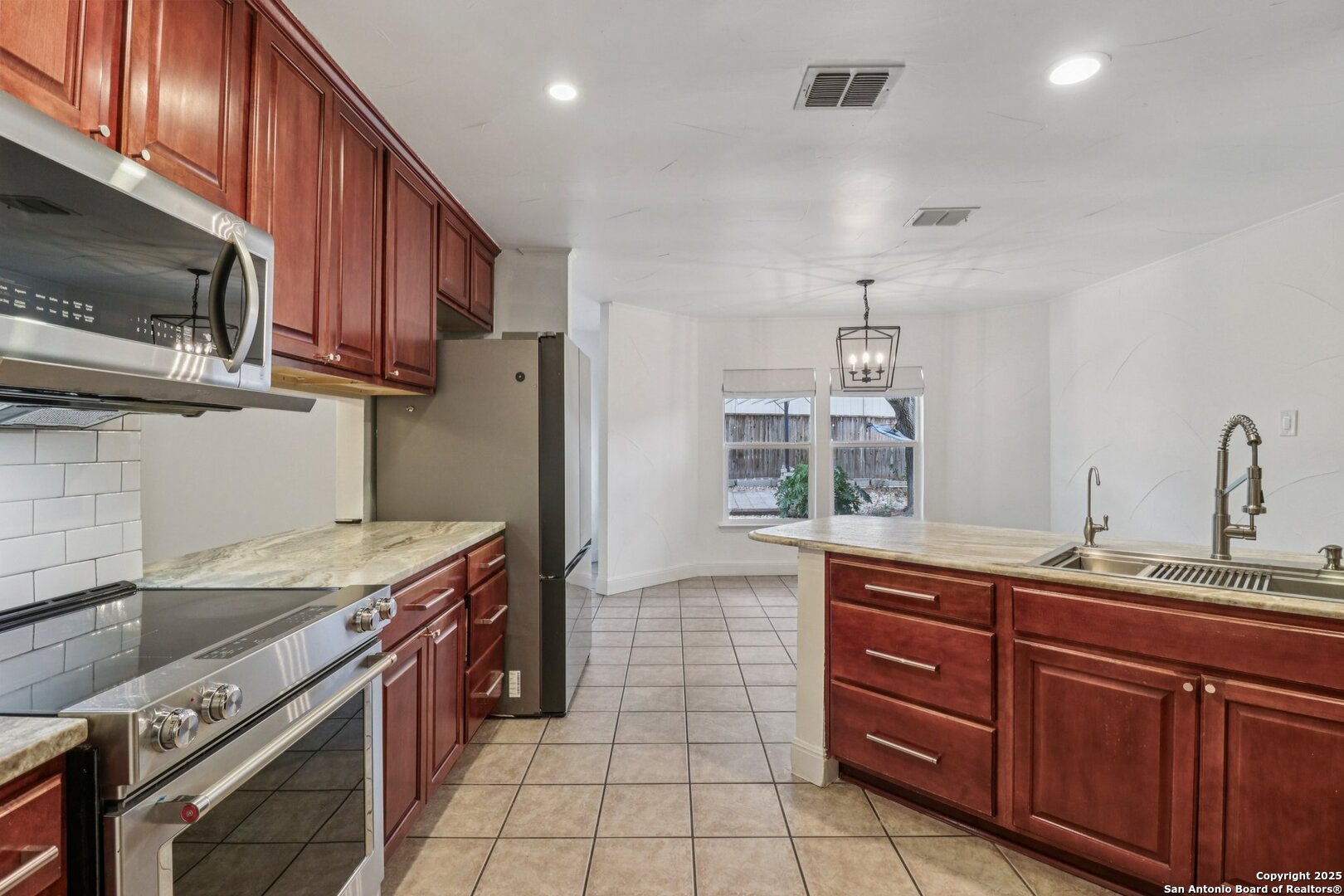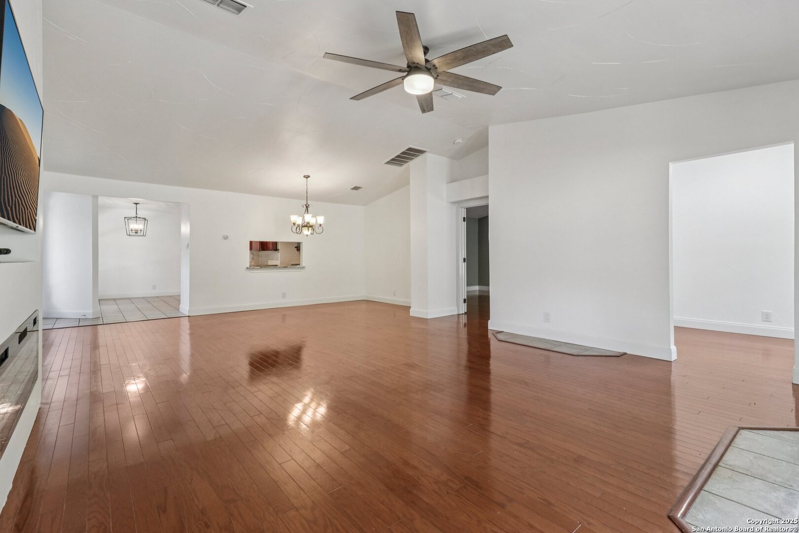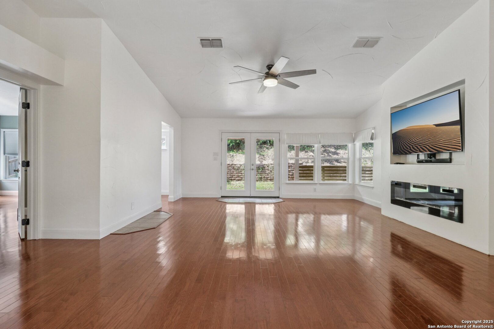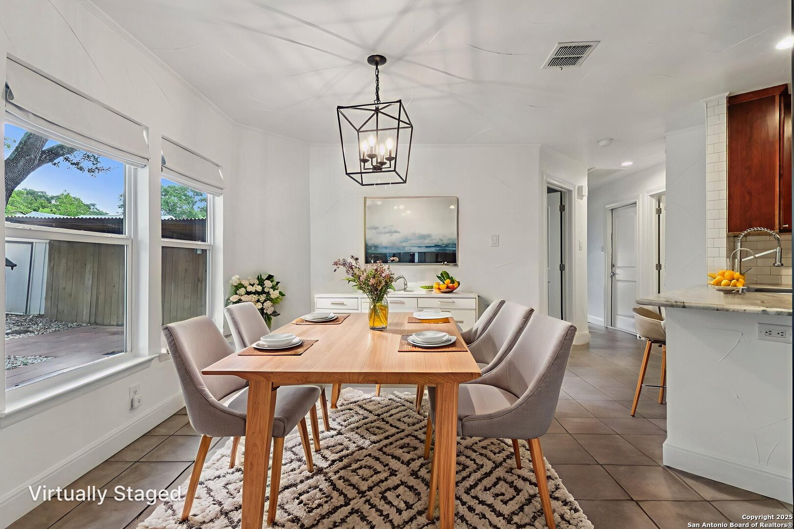 Welcome to 5407 Vista Run - A thoughtfully updated home in a desirable NEISD neighborhood! This beautifully maintained property features a durable metal roof and solar panels, providing energy efficiency and long-term savings. Inside, you'll find fresh interior paint and no carpet throughout, giving the home a clean, modern feel. The kitchen and bathrooms have been recently renovated, offering stylish finishes and functionality. A cozy new electric fireplace and built-in entertainment center create a perfect focal point in the living area, while a small private office provides a quiet space for working from home or managing daily tasks. Additional upgrades include a whole-home water filtration system for clean, healthy water throughout. Situated in a quiet, established neighborhood with quick access to schools, shopping, and major highways, this move-in-ready home combines comfort, efficiency, and convenience.