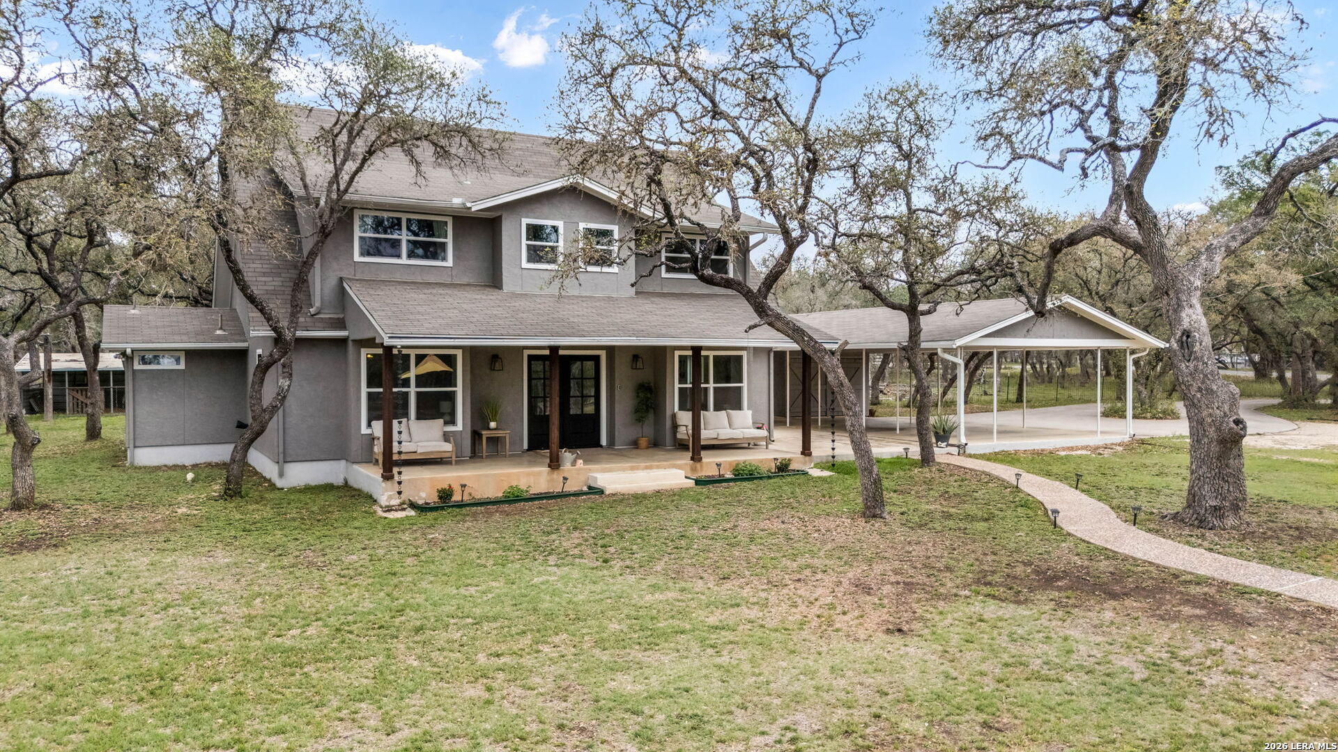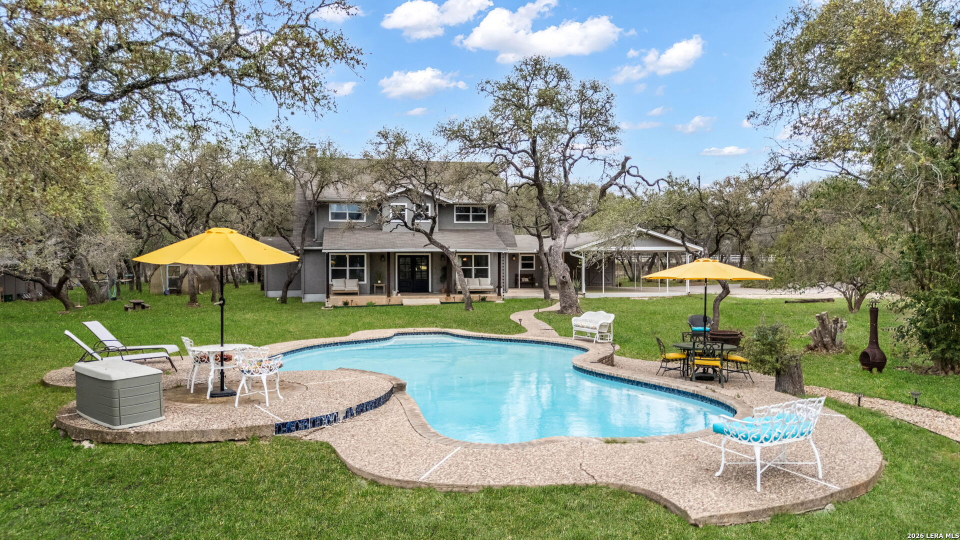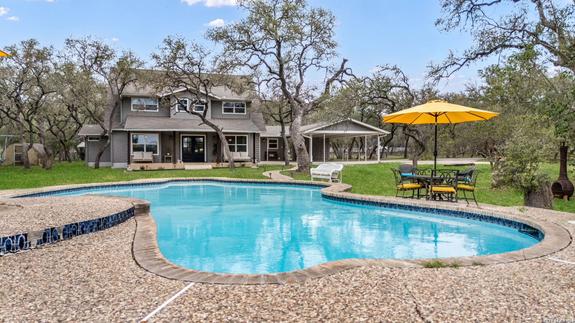 If you've been searching for space, privacy, and a property that offers both lifestyle and opportunity, this is it. Tucked away on 5 scenic acres in the heart of Bulverde, this unique estate features two fully functional residences, offering flexibility for a variety of living arrangements, guest accommodations, or potential short-term rental use. The main home offers 5 bedrooms, 3.5 bathrooms, and 2,896 square feet designed for comfortable living and effortless entertaining. Natural light, expansive views, and thoughtful updates create a warm and inviting atmosphere throughout. Step outside to your own private retreat complete with a resort-style pool, multiple outdoor living spaces, and wide-open Hill Country views that make everyday living feel like a getaway. The secondary residence includes 3 bedrooms, 2 bathrooms, and 1,730 square feet, providing additional space that can be used for a variety of purposes including rental opportunities or private guest quarters. Additional highlights include: New septic system, Updated HVAC units, New windows for improved efficiency, Horse barn, goat pen, and chicken coop for equestrian or hobby farm use. Located in Comal ISD, with easy access to Stone Oak, Spring Branch, Canyon Lake, and the Guadalupe River, you get the peace of country living without sacrificing convenience. Properties offering this level of land, flexibility, and income potential are rarely available. Schedule your private showing and experience it for yourself.