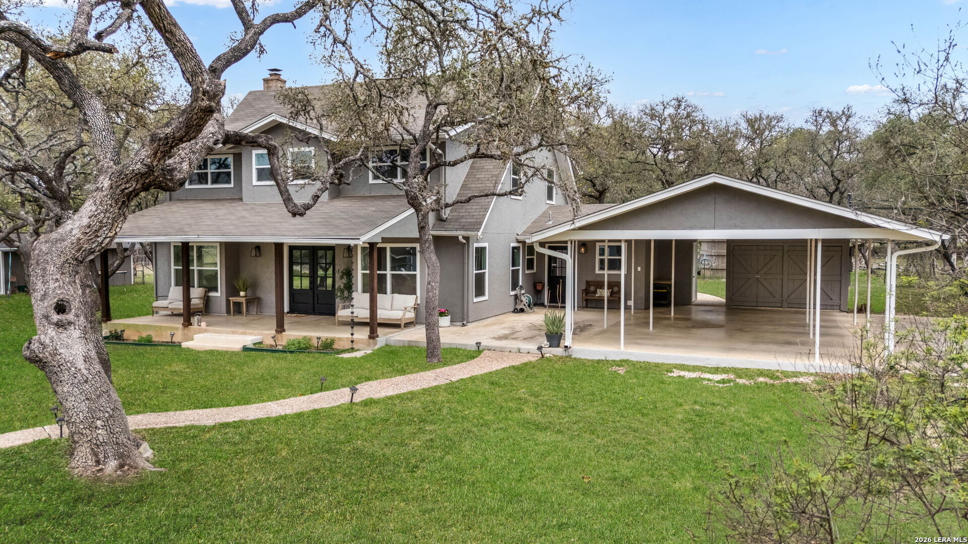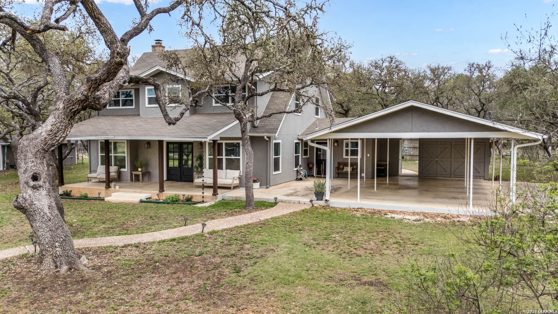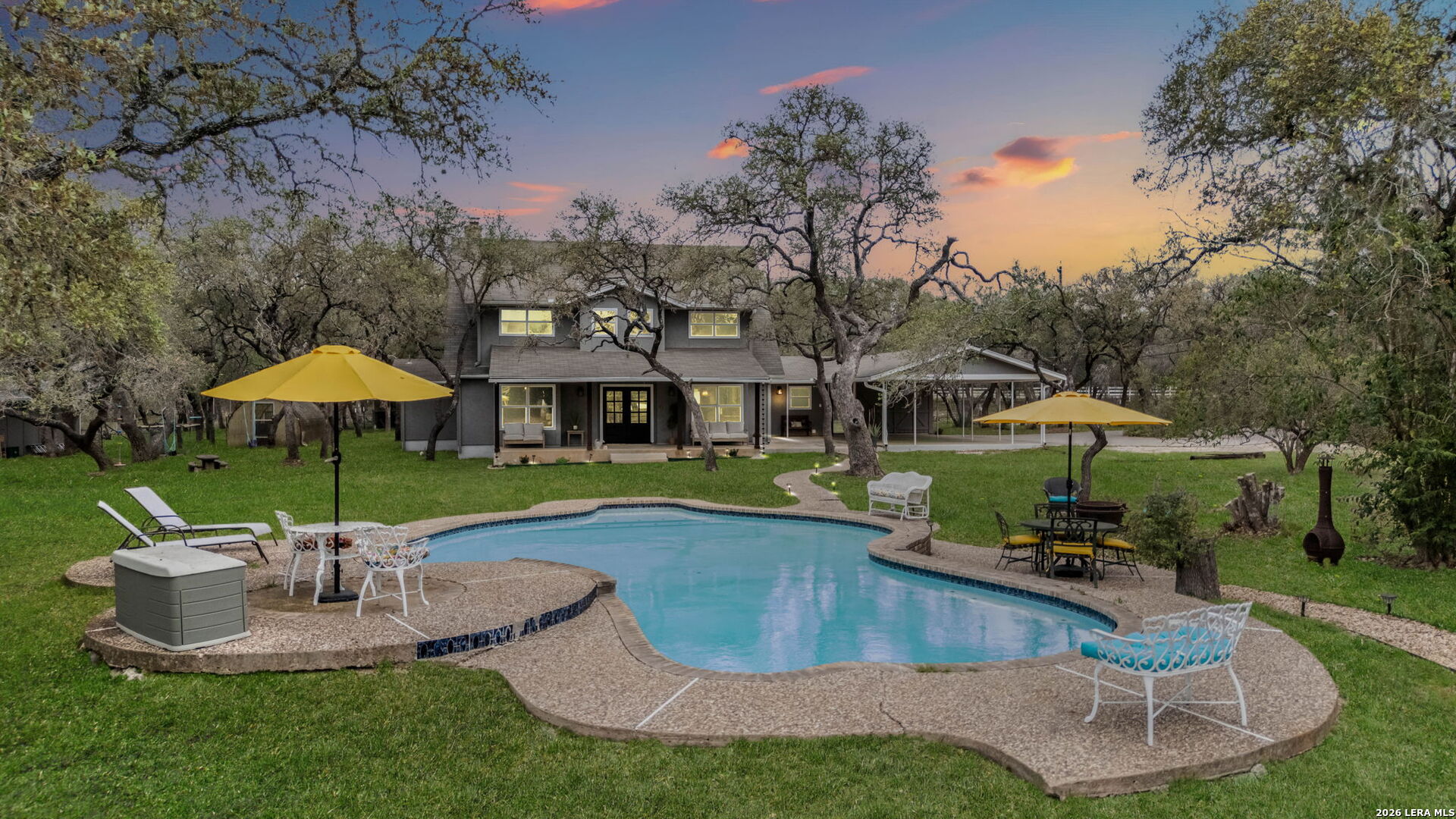 If you've been searching for space, privacy, and a property that offers both lifestyle and opportunity, this is it. Tucked away on 5 scenic acres in the heart of Bulverde, this unique estate features two fully functional residences, offering flexibility for a variety of living arrangements, guest accommodations, or potential short-term rental use. The main home offers 5 bedrooms, 3.5 bathrooms, and 2,896 square feet designed for comfortable living and effortless entertaining. Natural light, expansive views, and thoughtful updates create a warm and inviting atmosphere throughout. Step outside to your own private retreat complete with a resort-style pool, multiple outdoor living spaces, and wide-open Hill Country views that make everyday living feel like a getaway. The secondary residence includes 3 bedrooms, 2 bathrooms, and 1,730 square feet, providing additional space that can be used for a variety of purposes including rental opportunities or private guest quarters. Additional highlights include: New septic system, Updated HVAC units, New windows for improved efficiency, Horse barn, goat pen, and chicken coop for equestrian or hobby farm use. Located in Comal ISD, with easy access to Stone Oak, Spring Branch, Canyon Lake, and the Guadalupe River, you get the peace of country living without sacrificing convenience. Properties offering this level of land, flexibility, and income potential are rarely available. Schedule your private showing and experience it for yourself.