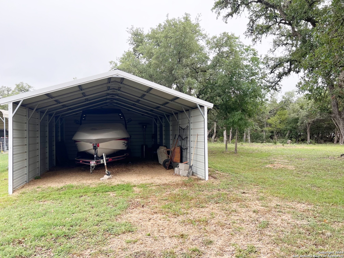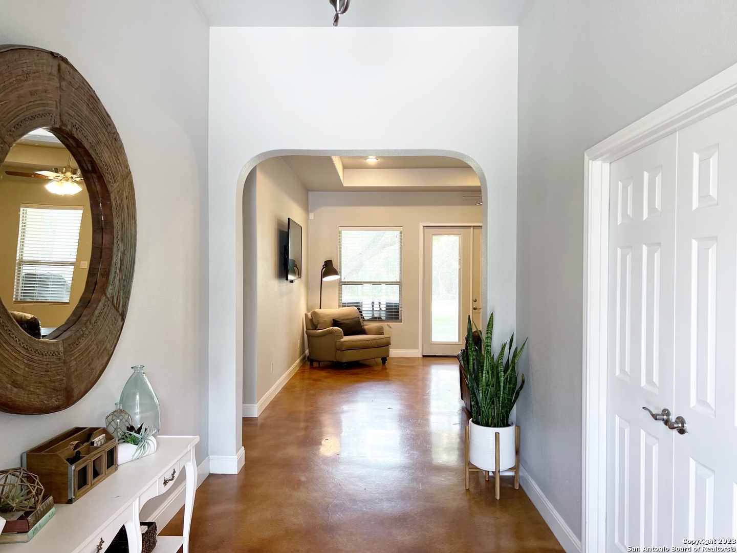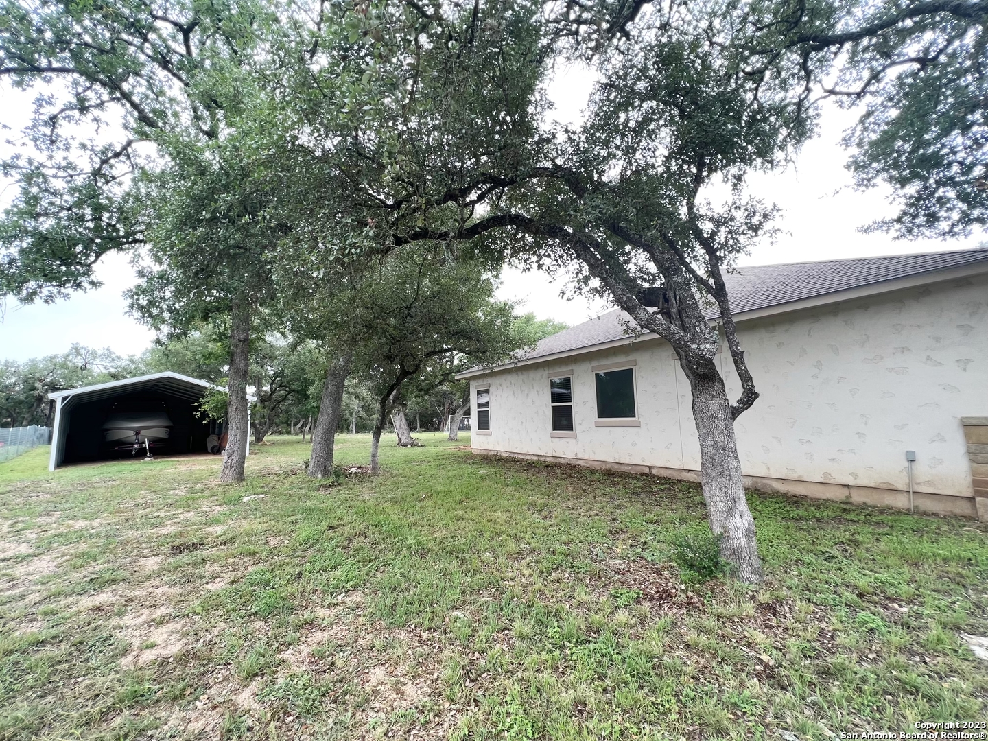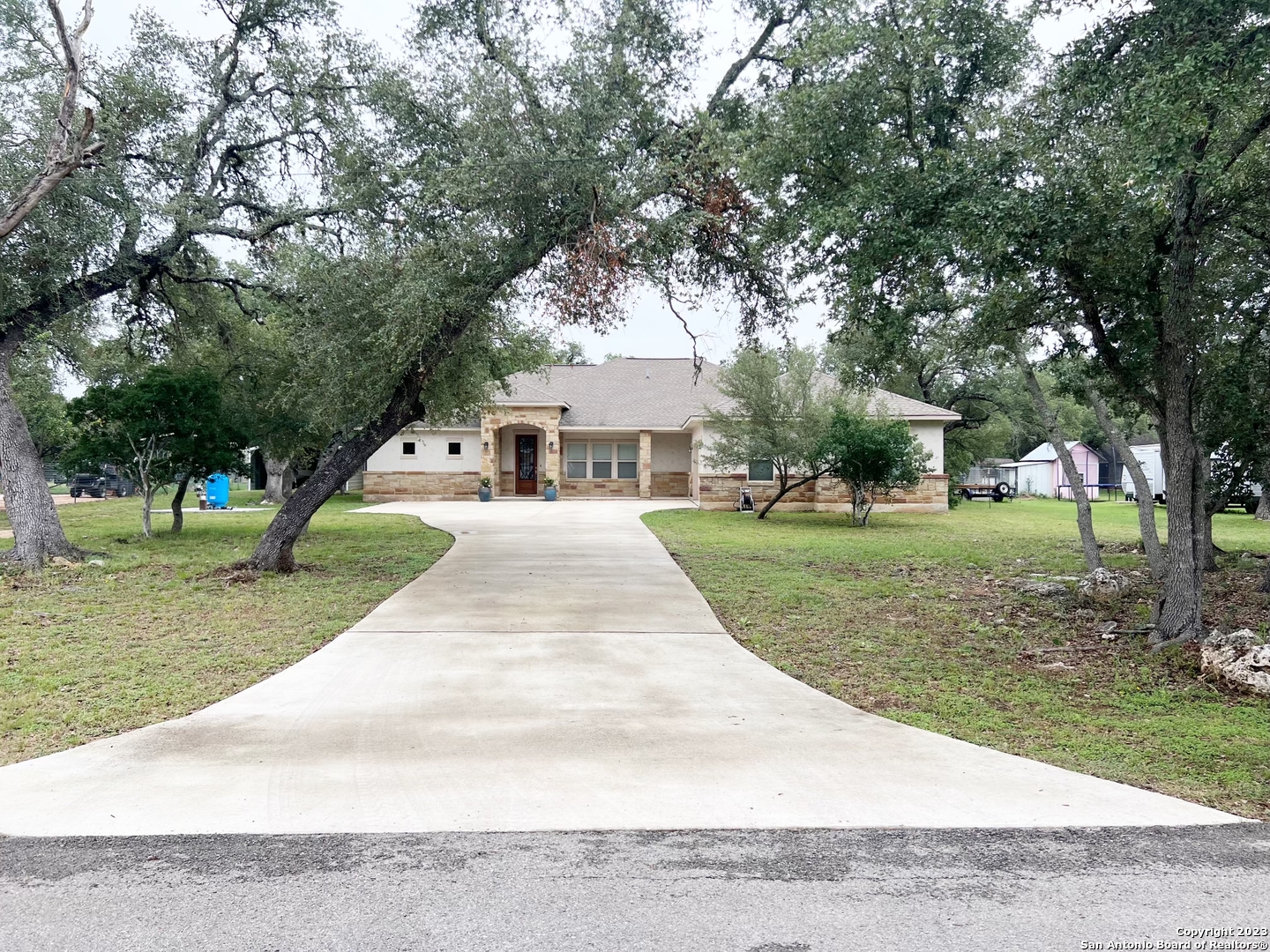 Welcome to this stunning one-story home! Featuring 4 bedrooms, 2 full baths, and one half bath, this residence offers a spacious and open floor plan that seamlessly connects the kitchen, dining room, and living room. With beautiful stained concrete floors throughout, the house exudes a Texas Hill County contemporary elegance. The kitchen is a true highlight, boasting granite countertops, a large island with ample seating, stainless steel appliances, custom cabinets, and a generously sized walk-in pantry. It's a perfect space for culinary adventures and entertaining guests. The master bathroom serves as a luxurious retreat, with an oversized walk-in shower, seperate tub, double vanity, and a massive walk-in closet for all your storage needs. It's a sanctuary designed for comfort and relaxation. The fourth bedroom, currently used as an office, offers versatility as a media room or game room, providing endless entertainment possibilities. On the other side of the house, two additional bedrooms share a convenient jack and jill full-size bathroom, ensuring privacy and functionality. Situated on a .73-acre lot on a quiet culdesac, this home provides a peaceful and serene setting. The neighborhood offers three POA parks,a park on the river with private access including a pool park, Pavilion Park with a covered pavilion, lighted tennis court, basketball rims, and all parks equipped with restrooms and BBQ pits. These amenities foster a strong sense of community. One exceptional feature of this property is the inclusion of a 18x30 boat storage with additional storage. This dedicated space provides ample room to safely store your boat, ensuring it remains protected from the elements and easily accessible whenever you're ready for your next aquatic adventure. Located in the esteemed Comal Independent School District, this home guarantees access to top-notch schools, ensuring an excellent education. Moreover, the picturesque beauty of the Texas Hill Country surrounds you, adding to the allure of the location. Don't miss the opportunity to make this remarkable house your own. Come and see it today, and embark on a journey to create lasting memories in the heart of the Texas Hill Country.