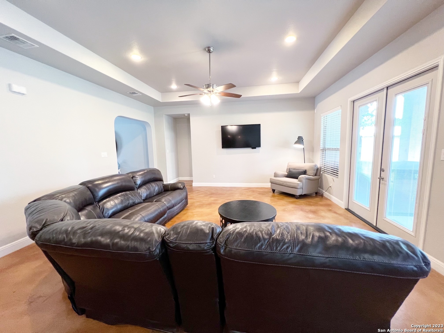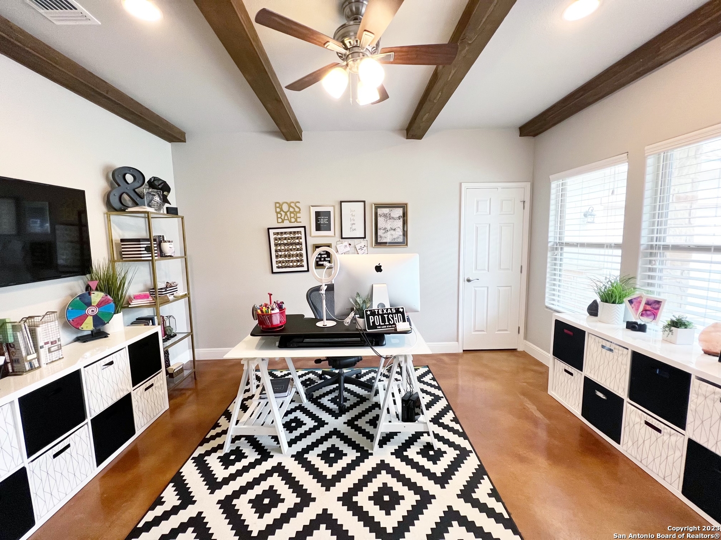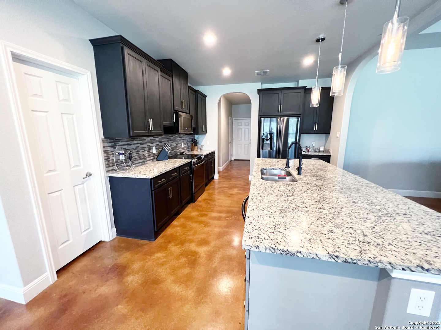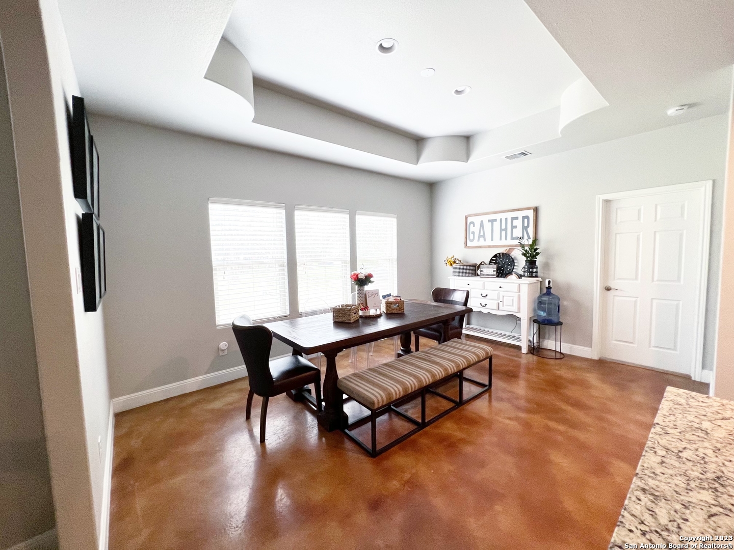 Welcome to this stunning one-story home! Featuring 4 bedrooms, 2 full baths, and one half bath, this residence offers a spacious and open floor plan that seamlessly connects the kitchen, dining room, and living room. With beautiful stained concrete floors throughout, the house exudes a Texas Hill County contemporary elegance. The kitchen is a true highlight, boasting granite countertops, a large island with ample seating, stainless steel appliances, custom cabinets, and a generously sized walk-in pantry. It's a perfect space for culinary adventures and entertaining guests. The master bathroom serves as a luxurious retreat, with an oversized walk-in shower, seperate tub, double vanity, and a massive walk-in closet for all your storage needs. It's a sanctuary designed for comfort and relaxation. The fourth bedroom, currently used as an office, offers versatility as a media room or game room, providing endless entertainment possibilities. On the other side of the house, two additional bedrooms share a convenient jack and jill full-size bathroom, ensuring privacy and functionality. Situated on a .73-acre lot on a quiet culdesac, this home provides a peaceful and serene setting. The neighborhood offers three POA parks,a park on the river with private access including a pool park, Pavilion Park with a covered pavilion, lighted tennis court, basketball rims, and all parks equipped with restrooms and BBQ pits. These amenities foster a strong sense of community. One exceptional feature of this property is the inclusion of a 18x30 boat storage with additional storage. This dedicated space provides ample room to safely store your boat, ensuring it remains protected from the elements and easily accessible whenever you're ready for your next aquatic adventure. Located in the esteemed Comal Independent School District, this home guarantees access to top-notch schools, ensuring an excellent education. Moreover, the picturesque beauty of the Texas Hill Country surrounds you, adding to the allure of the location. Don't miss the opportunity to make this remarkable house your own. Come and see it today, and embark on a journey to create lasting memories in the heart of the Texas Hill Country.