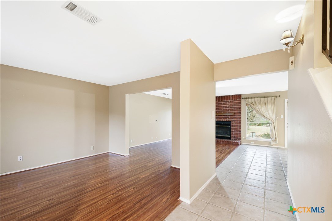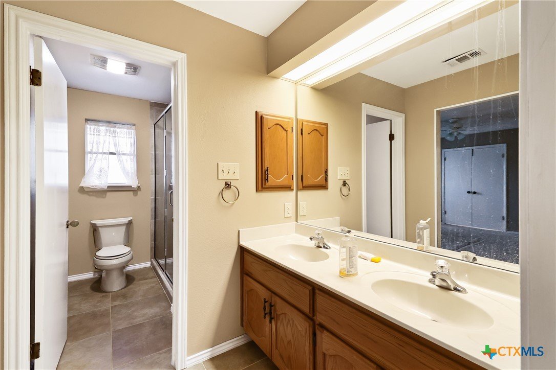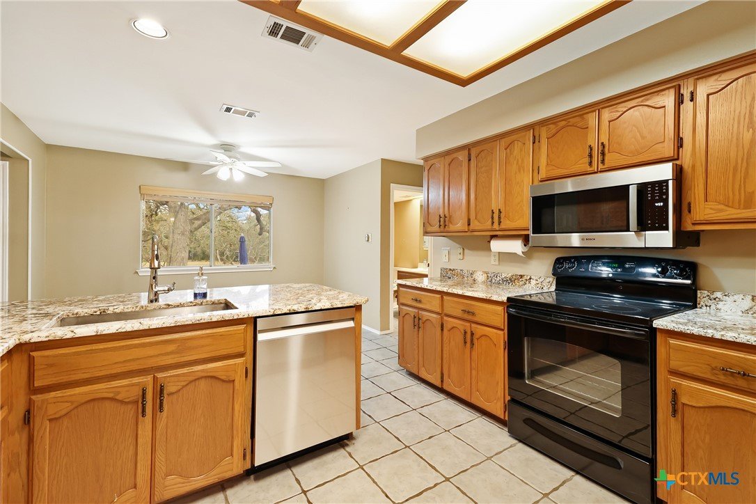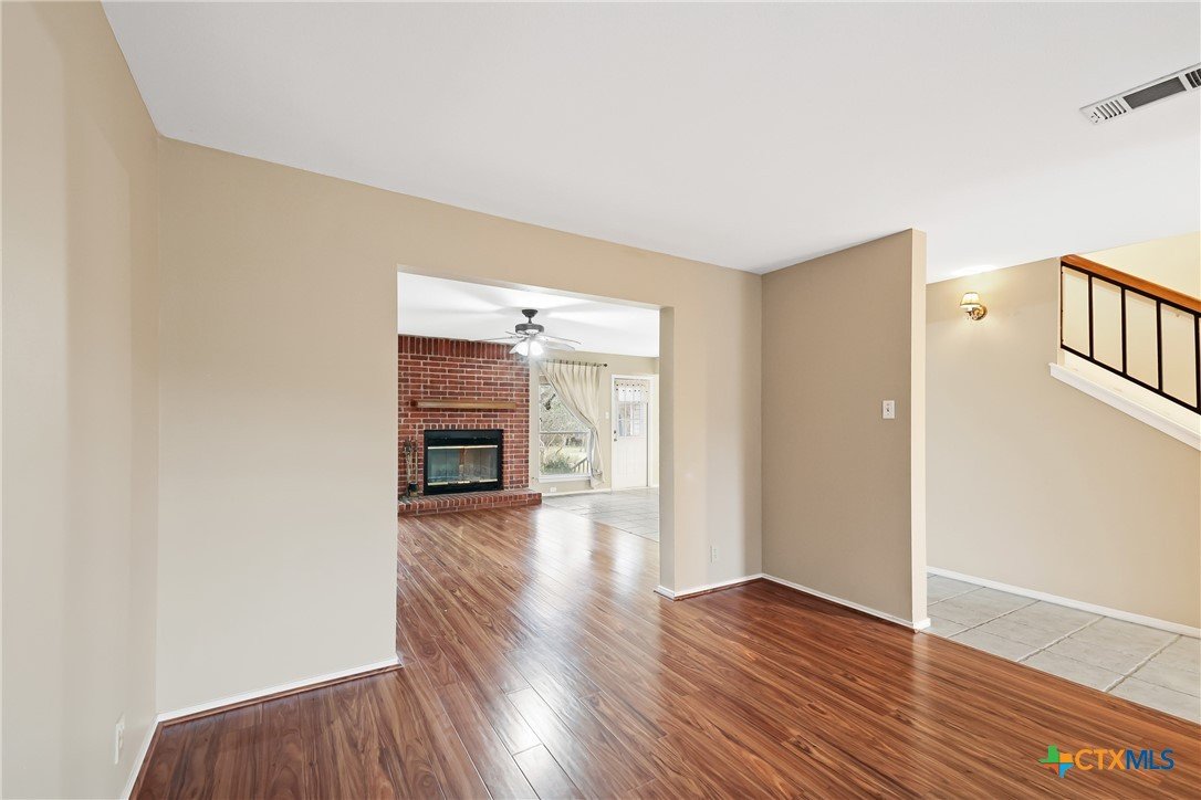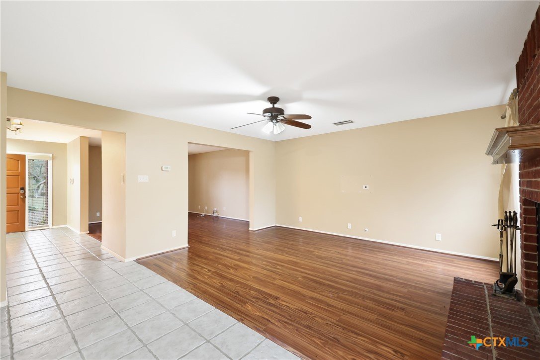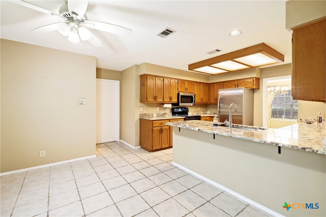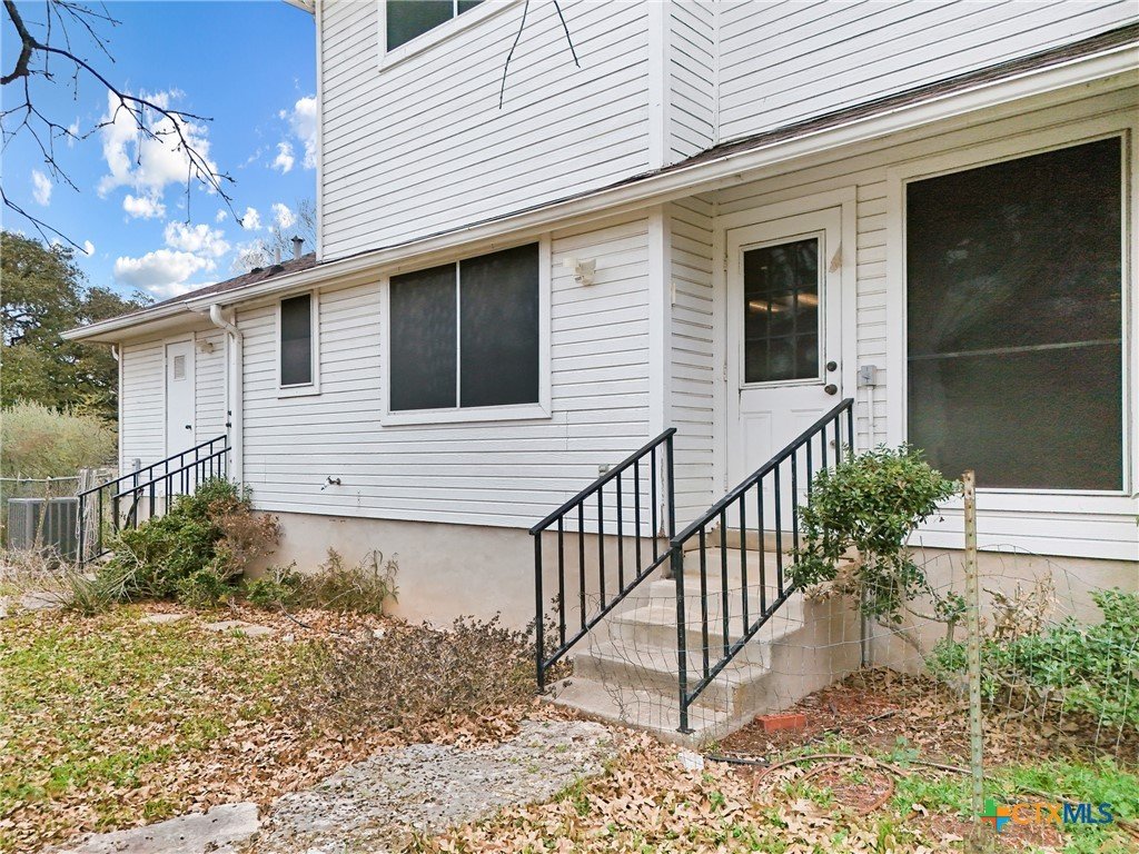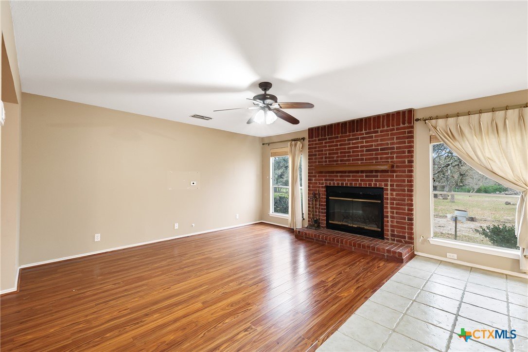 Beautiful red brick home nestled among towering trees in the highly desirable Oak Village North subdivision in Bulverde. Situated on approximately 1 acre, this scenic property offers privacy, space, and Hill Country charm while providing convenient access to Highway 281 and FM 1863. Step inside to a spacious layout featuring a front family room and a cozy living room with a fireplace, perfect for relaxing or entertaining. The home also offers a separate dining area and an eat-in kitchen complete with granite countertops, breakfast bar, built-in microwave, smooth cooktop oven, and refrigerator. Upstairs you will find four generously sized bedrooms and two full bathrooms. The primary suite includes a double vanity and walk-in shower, with French doors connecting to the second bedroom, making it ideal for a nursery, office, or flex space. Bedrooms three and four are both spacious with ceiling fans, and the hall bathroom features a single vanity with extended counter space and a tub/shower combo. Step outside and enjoy a breathtaking backyard filled with mature trees and expansive green space. Pavers lead to a concrete seating area, and the property also includes a chicken coop/pen and storage shed toward the back of the yard. Whether hosting barbecues under the Texas stars or enjoying peaceful outdoor moments, this backyard offers endless possibilities. This beautiful Hill Country property combines comfort, space, and natural beauty while remaining conveniently located near shopping, dining, and major roadways.