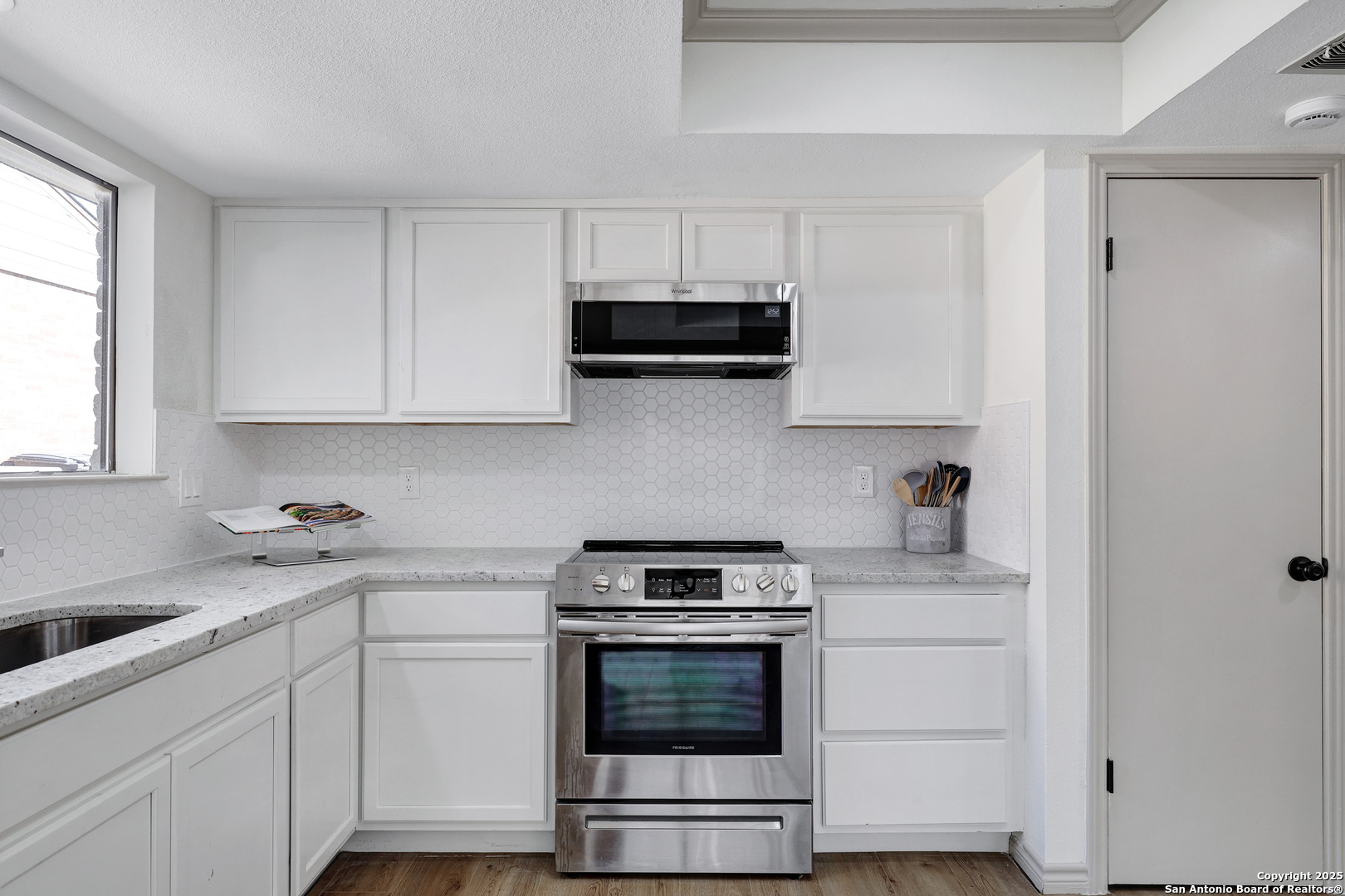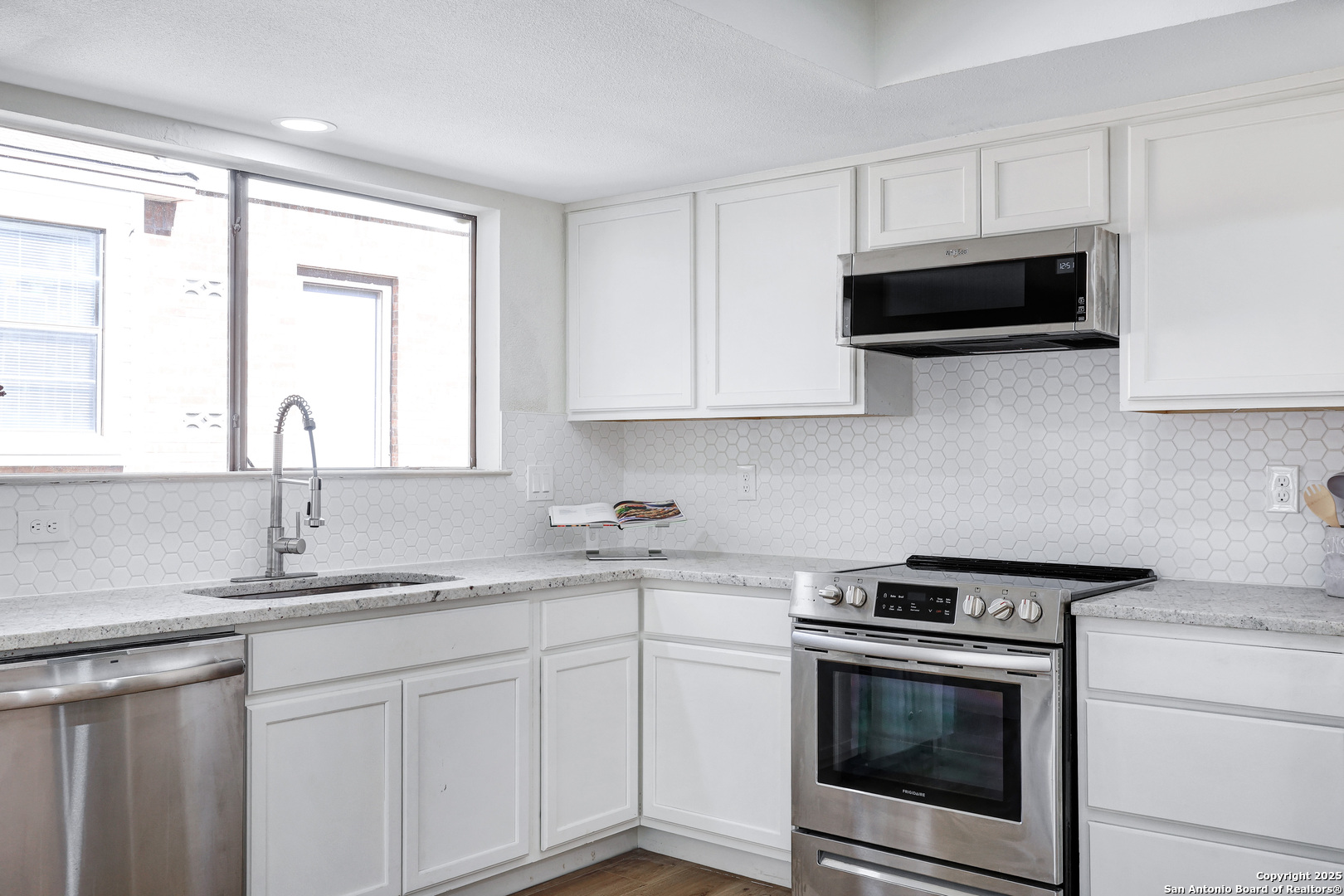 Welcome Home to this move-in ready 3-bedroom, 2-bath home located in the desirable Silver Creek subdivision, within the highly sought after Northside ISD. This home offers attractive curb appeal and a large backyard, perfect for everyday living and outdoor enjoyment. Step inside to discover new flooring and new carpet, complemented by fresh professional paint inside and out for a clean, modern feel. The kitchen shines with new kitchen cabinets and new granite countertops, which extends into both bathrooms for a cohesive, upscale look. Enjoy updated showers designed with both style and function in mind. Major updates provide peace of mind, including new roof and a new epoxy coated garage floor, perfect for durability and easy maintenance. Conveniently located near schools, shopping, dining, and major roadways, this home blends quality upgrades with everyday convenience.