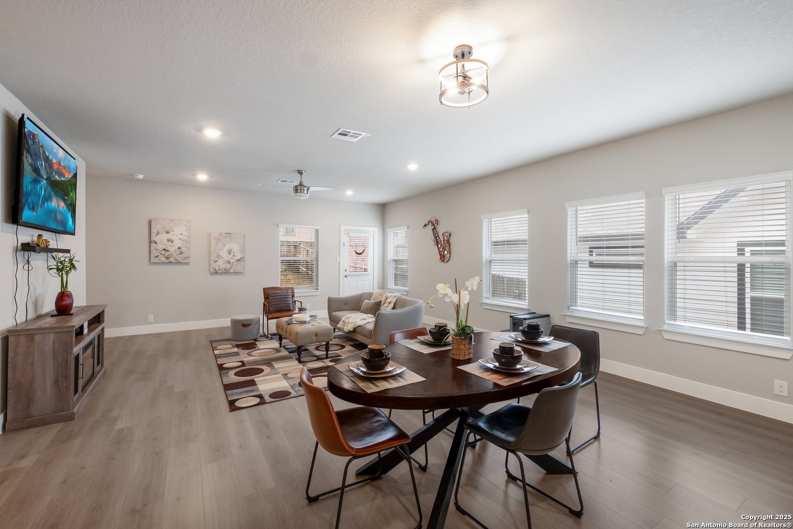 Spacious 4-bedroom, 3-bath home in a quiet Northwest San Antonio neighborhood. Features an open-concept layout with luxury vinyl plank flooring, a modern kitchen with ample storage, and a private main-floor primary suite. Upstairs includes a versatile loft and additional bedrooms. Enjoy a covered patio and large backyard-perfect for relaxing or entertaining. Conveniently located near major highways, shopping, and schools. Schedule your tour today!