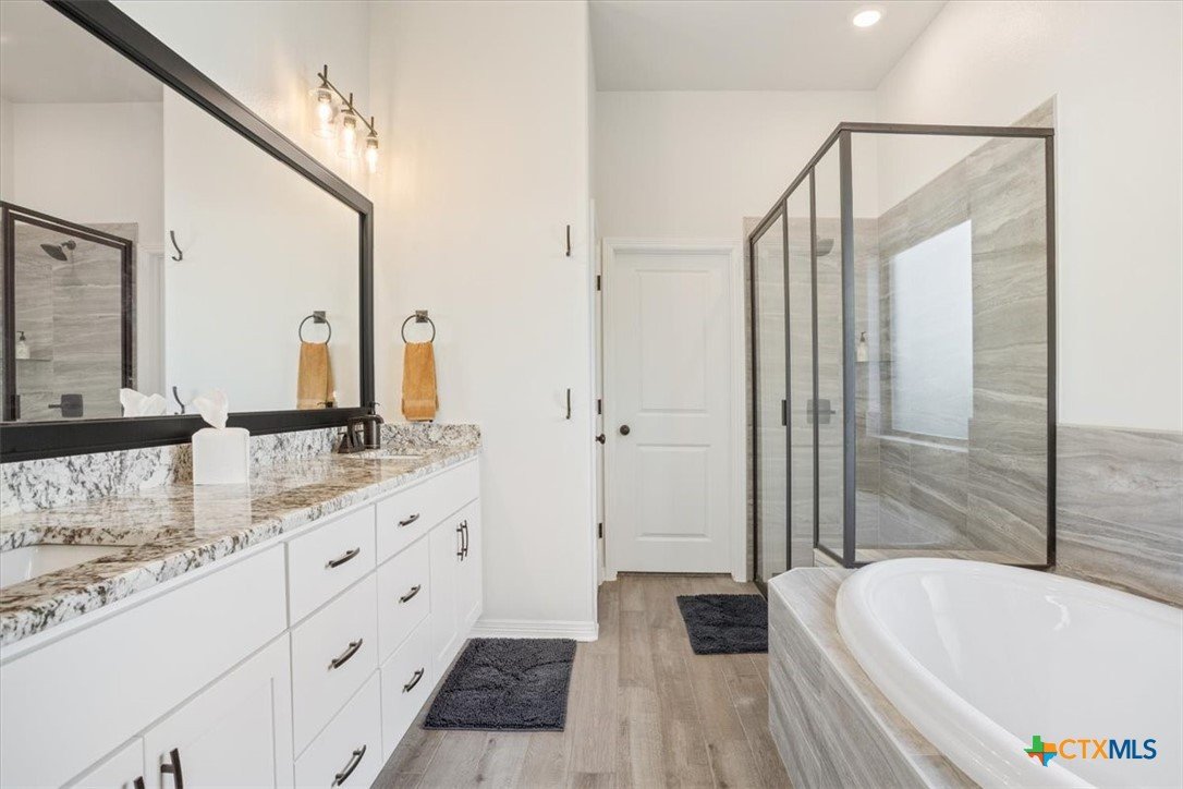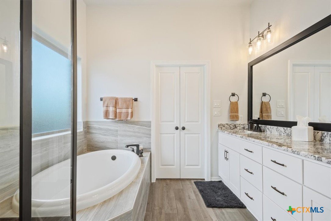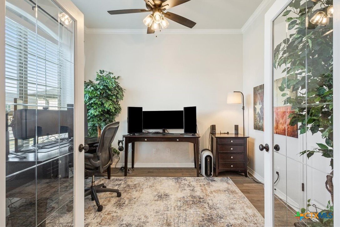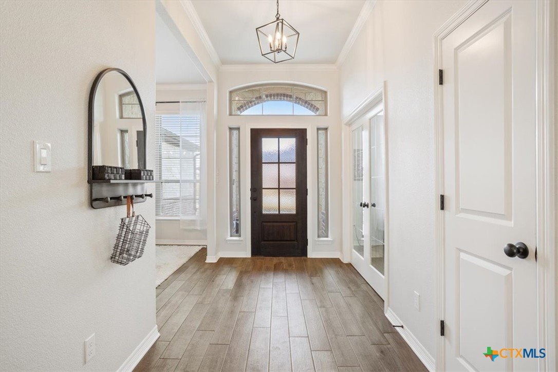 This beautiful Rivera floor plan by Carothers Homes offers four bedrooms, two and a half baths, and a designated office space in the highly desirable Three Creeks community, zoned to Belton ISD. Designed for both comfort and functionality, the home features a formal dining area, a spacious open-concept living design, and tile flooring throughout the main living areas. The kitchen showcases beautiful granite countertops and ample workspace, perfect for entertaining or everyday living. One of the standout features is the private rear-facing backyard with no rear neighbors, providing added privacy and peaceful views. The large covered back patio extends your living space outdoors, making it ideal for gatherings or relaxing evenings. In addition, the home includes a spacious three-car garage with beautiful epoxy flooring, offering both durability and a polished finish. Residents of Three Creeks enjoy private creek access, a community park, and walking trails throughout the neighborhood. Conveniently located with easy access to I-14 and I-35, this home offers both tranquility and accessibility.