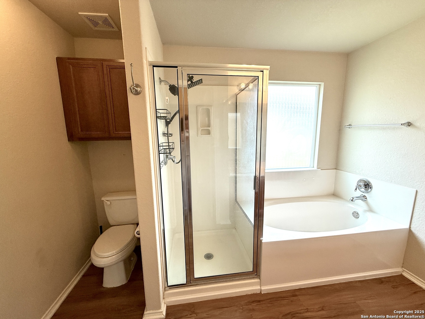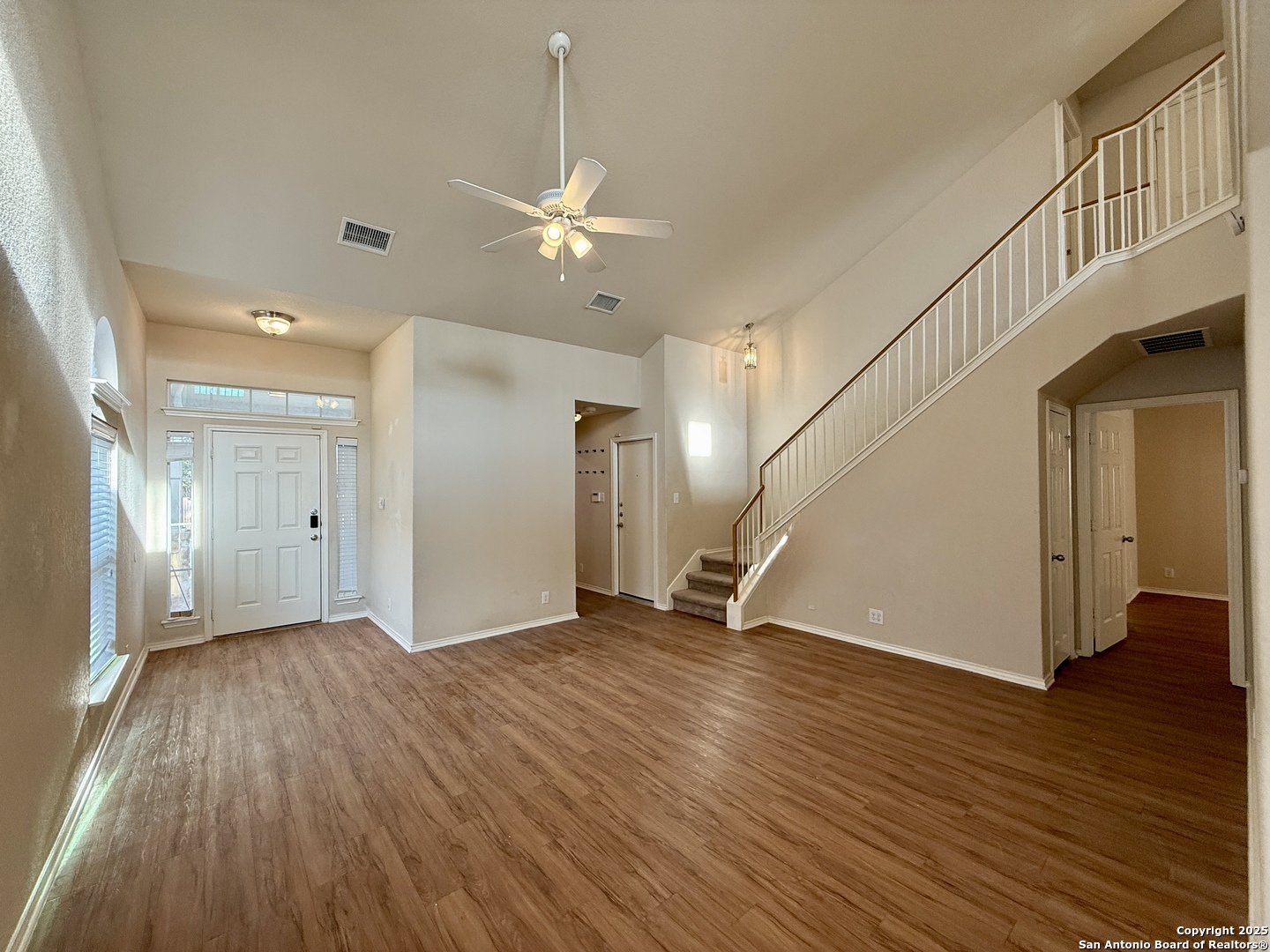 Well maintained 2-story home in Avery Park! *TWO WEEKS FREE RENT* Open living and dining area, with tons of natural lighting. Vinyl plank floor throughout, tile in kitchen, carpet upstairs & in bedrooms. Primary bedroom located on the first floor. Ensuite bathroom complete with garden tub & stand up shower. Laundry room conveniently located downstairs with washer/dryer connections. Two bedrooms plus bonus room / landing upstairs. Large fenced backyard with covered patio! Community Pool & Playground. Walking distance to Clear Springs Elementary!