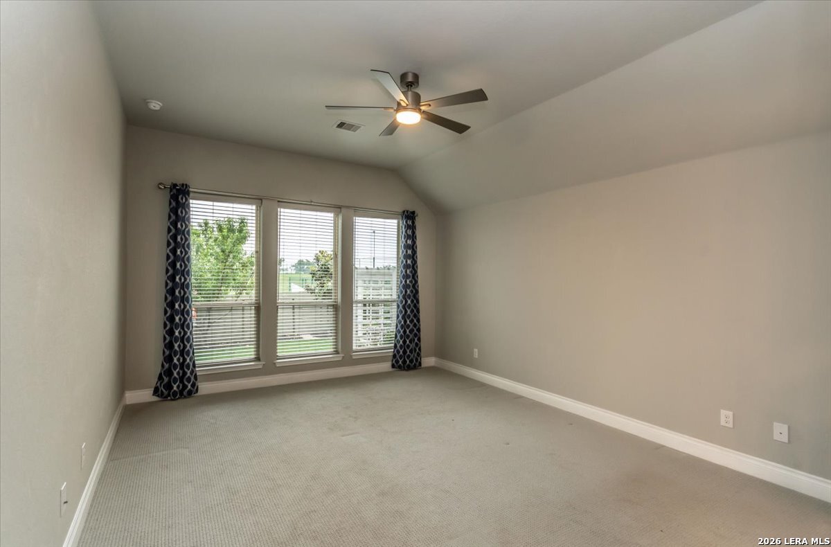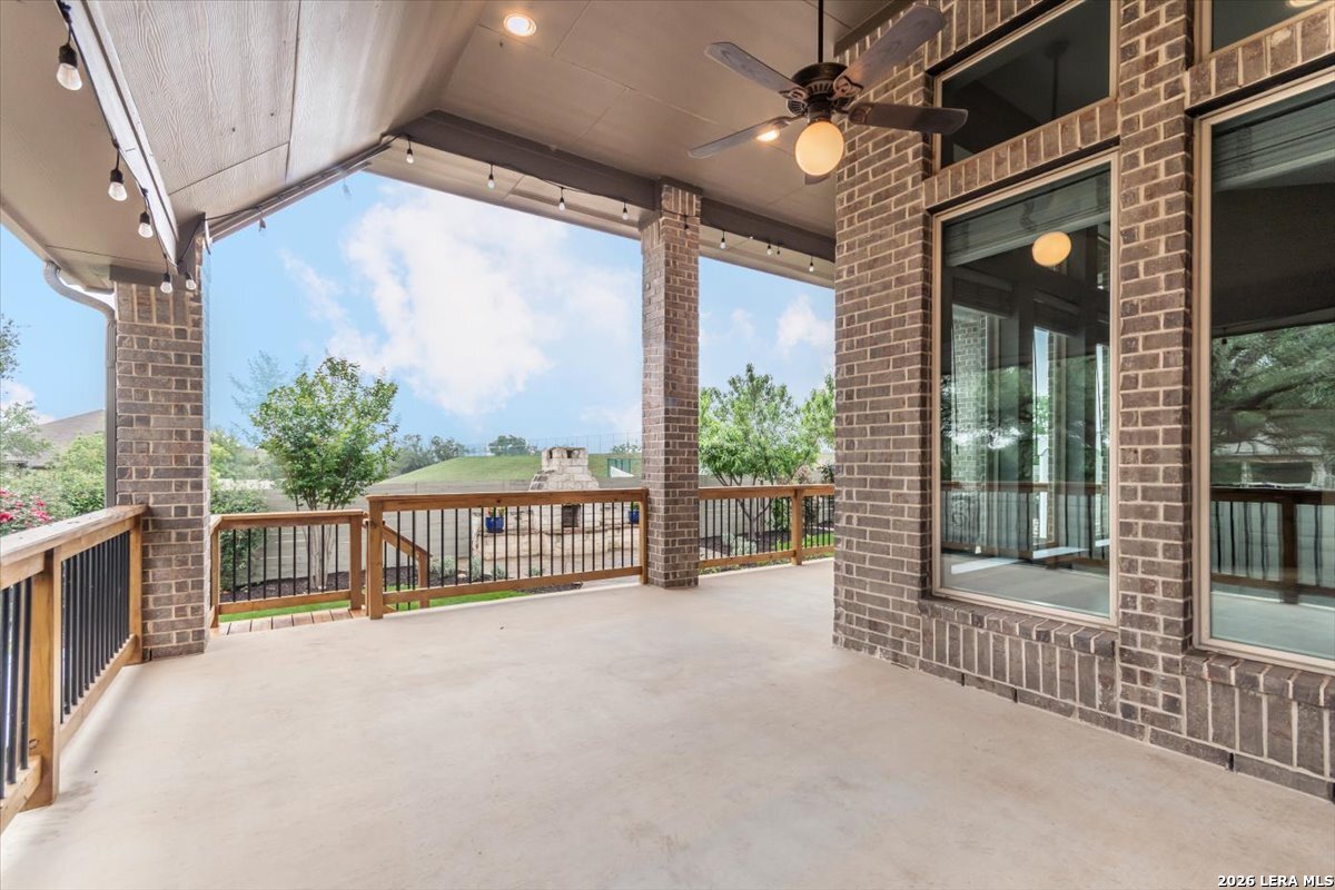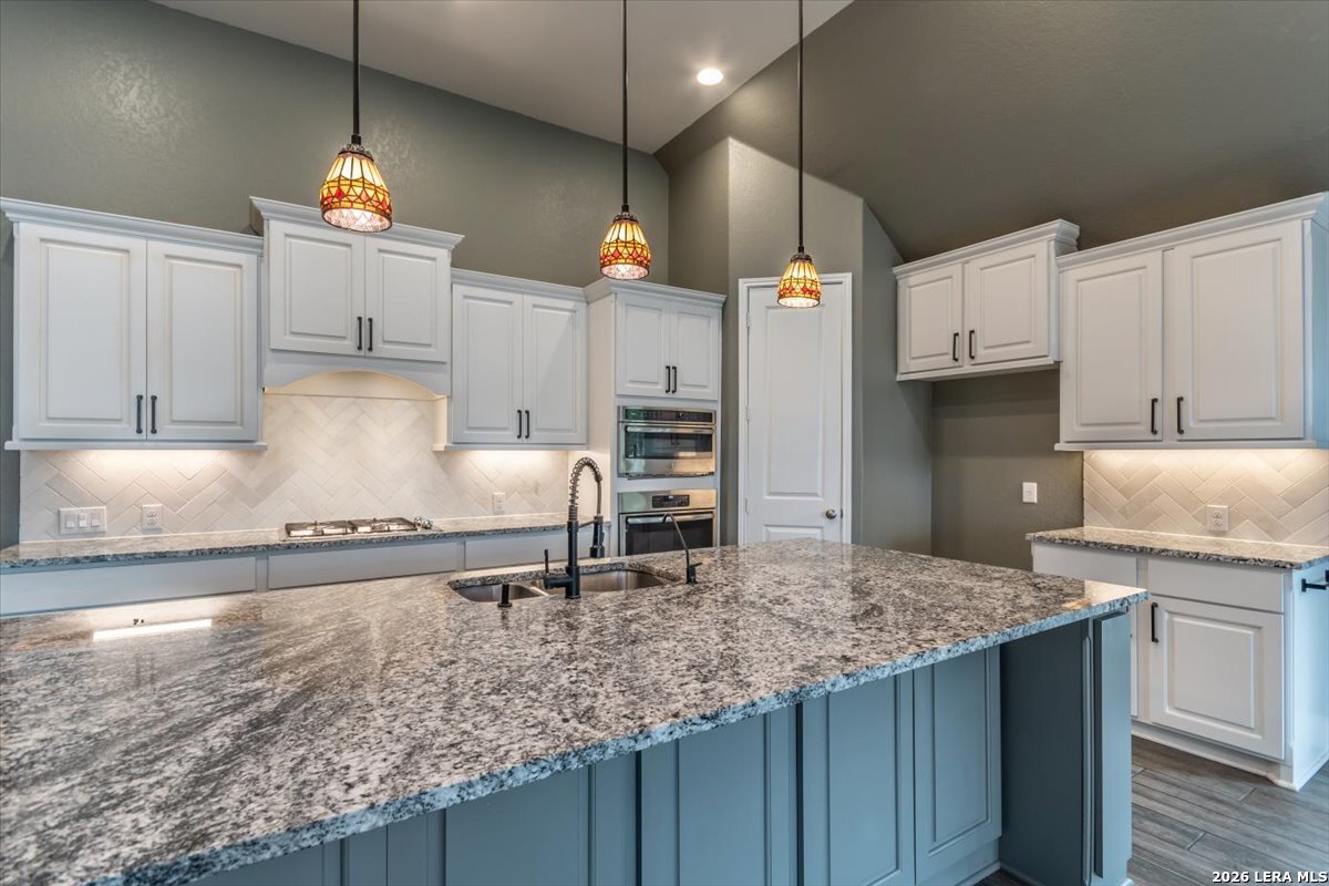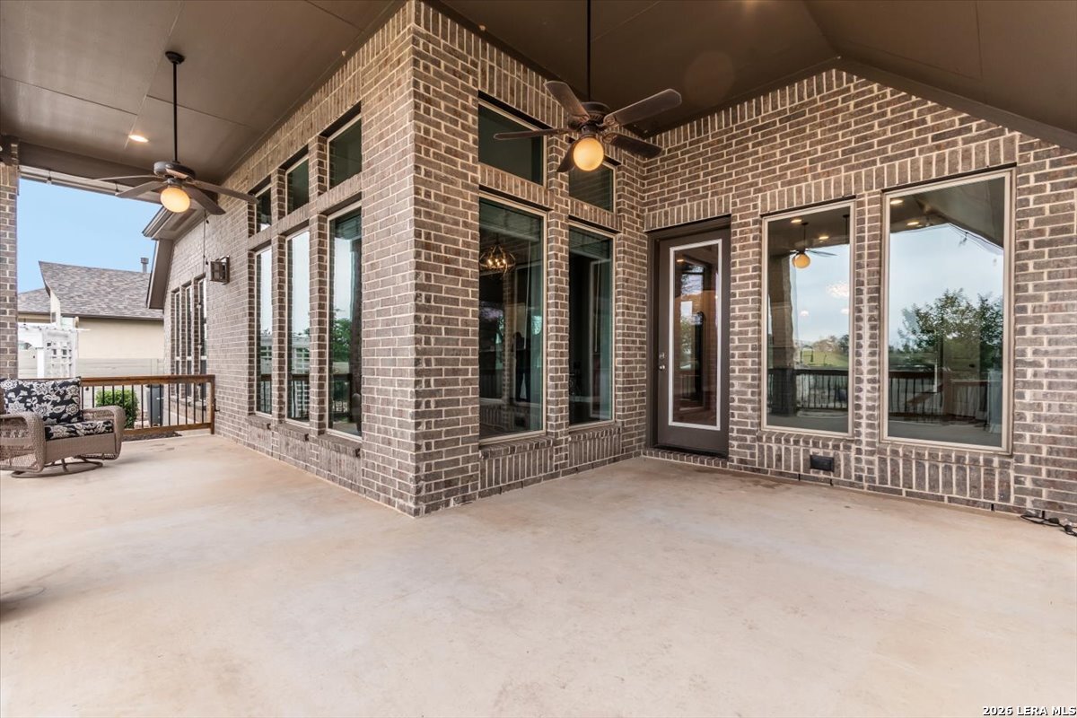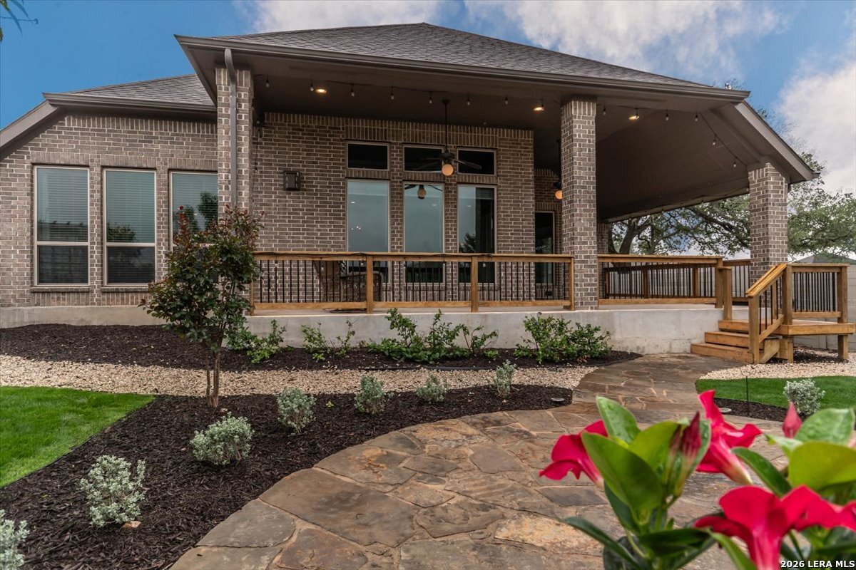 Welcome to your inviting oasis offering 4-bedroom, 3 full bath home with approximately 2,679 sq. ft. of thoughtfully designed living space. A long, wide entry hall creates a grand first impression, leading into the open-concept living and dining area with views of the beautifully maintained backyard. The spacious kitchen is ideal for entertaining, featuring granite countertops, a gas cooktop, double ovens, a generous pantry, and abundant tall cabinetry. The private primary suite offers a relaxing retreat with dual vanities, a walk-in shower, soaking tub, and an oversized walk-in closet with built-in shelving. Secondary bedrooms all include walk-in closets with a functional layout offering both shared and private bath access. Step outside to enjoy a stunning backyard complete with a large, covered patio, brick outdoor fireplace, and mature fruiting landscape including a peach tree, grapevines, and blackberry bushes-perfect for relaxing or hosting gatherings. No back neighbors for added privacy, Additional highlights include a 3-car garage with a third bay equipped with 220V electrical for an EV and a tankless water heater for efficiency. Attic space is floored for extra storage. Located in a vibrant community featuring a lazy river pool, resort-style pool, fitness center, and an active lifestyle atmosphere. Conveniently close to schools, shopping, dining, and city center. This home truly has it all!