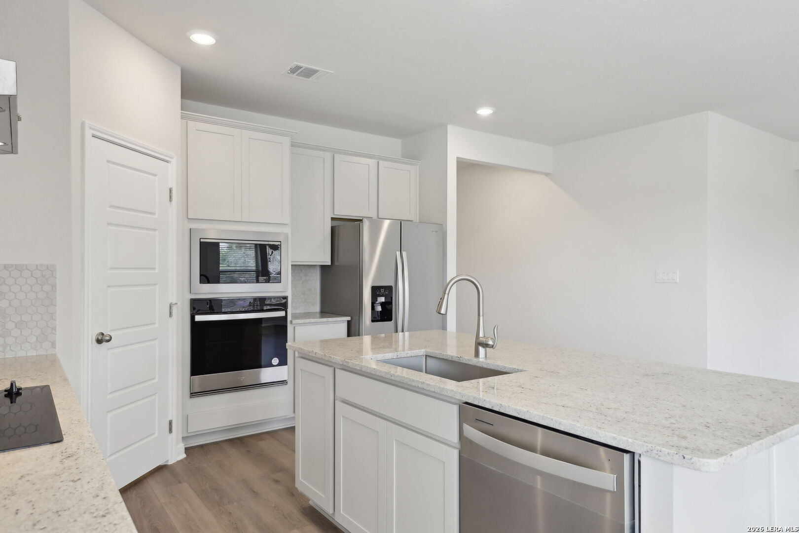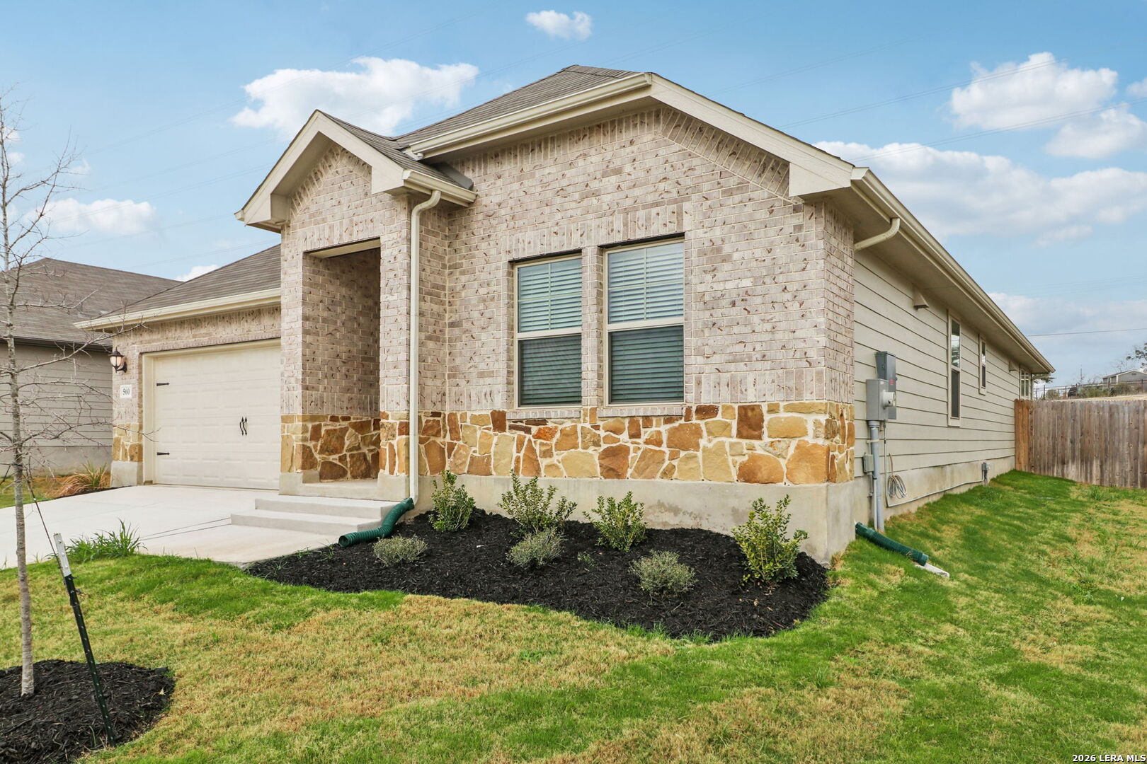Brand new, energy-efficient home available NOW! Enjoy dinner outside on the Fitzhugh's covered back patio. Harbor cabinets with shaded grey granite countertops, brown grey EVP flooring with warm grey brown carpet in our Elemental package. Starting in the $300s and nestled in Cibolo within Northeast San Antonio, Legendary Trails combines elegant brick and stone elevations with the charm of a peaceful, rural setting. This community offers quick access to I-35 and Loop 1604, with The Forum Shopping Center just minutes away. Residents will also benefit from being part of the highly rated Schertz-Cibolo-Universal City ISD schools, making this community a perfect place to call home. Each of our homes is built with innovative, energy-efficient features designed to help you enjoy more savings, better health, real comfort and peace of mind. Photo is not of the actual home, but is an inspirational photo of builder's model home and may depict options, furnishings, and/or decorator features that are not included