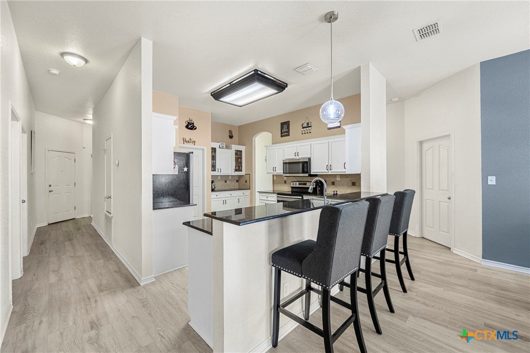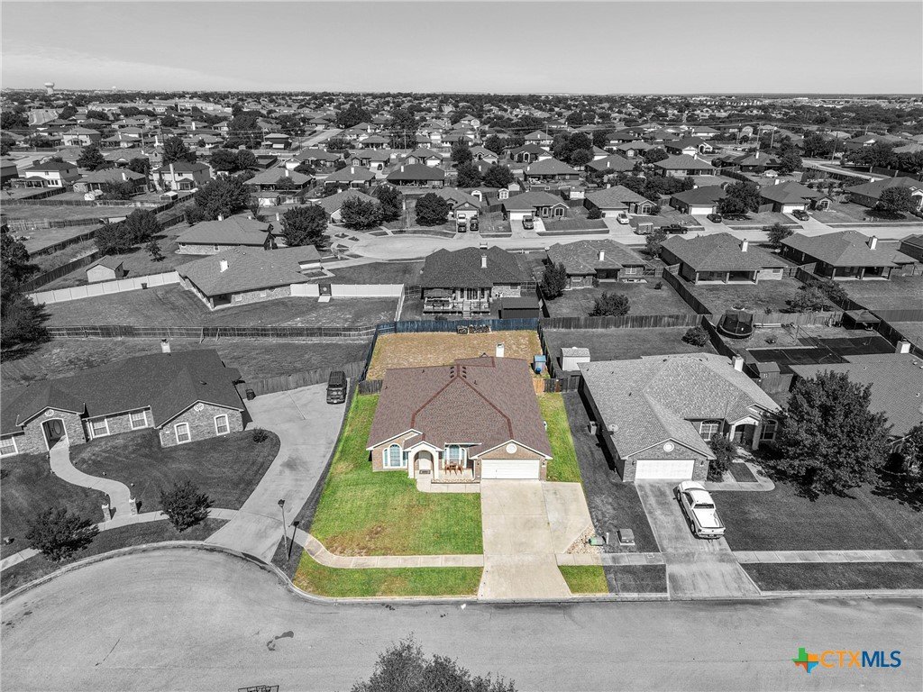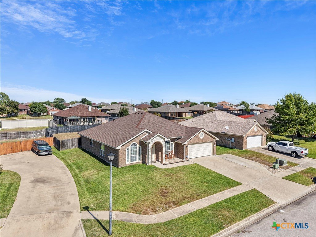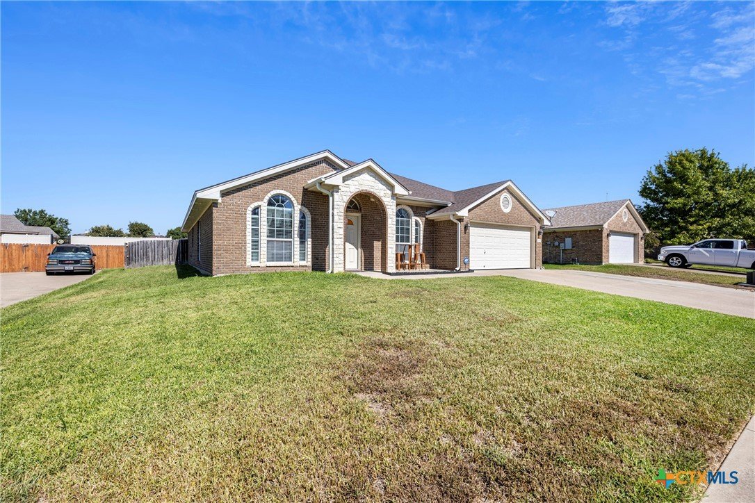 This immaculate home is located within a well-maintained, established community adjacent to Harker Heights, TX. The residence features three bedrooms and a study, two bathrooms, a two-car garage and nearly 2300 square feet. Upon entry, a formal dining room and living area are located to your left, across the hall you will see the study with french doors. The floor plan incorporates a wrap-around concept with a split layout. Down the hallway, the primary bedroom is to your left. The main bathroom includes a separate shower, a garden tub. The kitchen is located on the right. It features freshly painted cabinets and an oversized pantry. The living room opposite has a wood-burning fireplace and secure mantel. Returning to the hallway, you will find two bedrooms on the left, with a bathroom directly behind the study with a linen closet, leading back towards the front of the home. The backyard features an extended patio area, fully fenced and a generously sized, cul-de-sac lot and is move-in-ready! The sellers have made the updates to include: new carpet and laminate throughout, new lighting in the kitchen and dining rooms, new kitchen and bathroom faucets, fresh paint on the cabinets and baseboards throughout, new slab addition on the driveway and new extended patio on the back, newer appliances and a new microwave. Grass installed in the front in October of 2024. The sellers have taken excellent care of this home and it shows! Call your favorite realtor for an appointment today or text me for a private viewing.