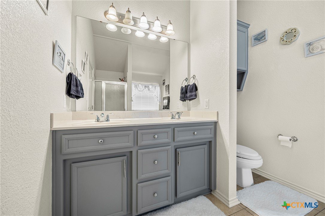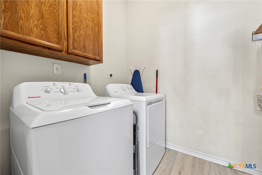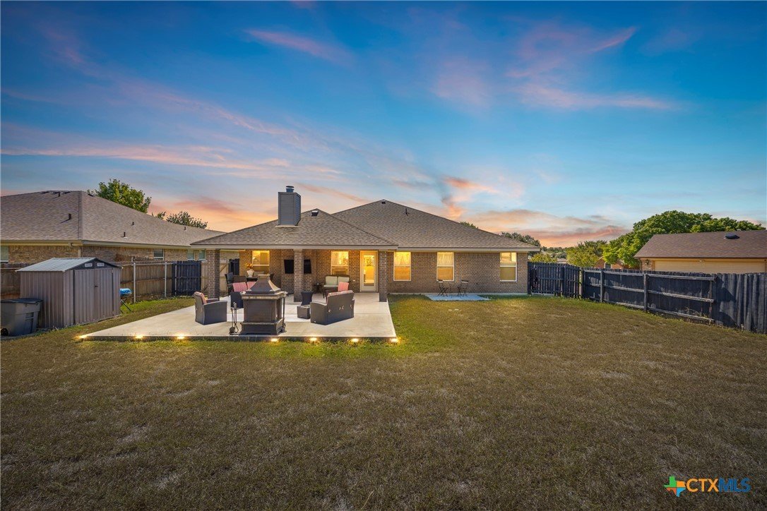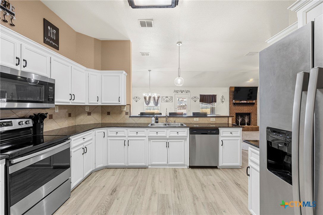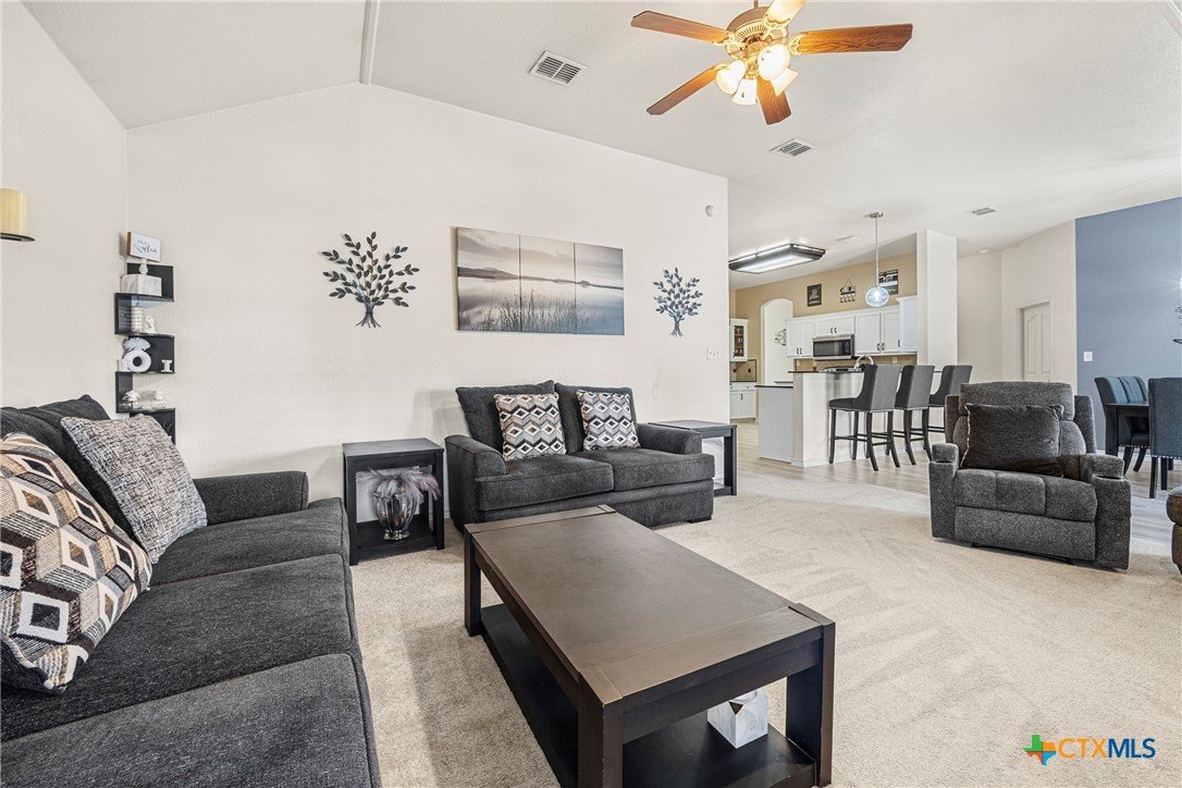 This immaculate home is located within a well-maintained, established community adjacent to Harker Heights, TX. The residence features three bedrooms and a study, two bathrooms, a two-car garage and nearly 2300 square feet. Upon entry, a formal dining room and living area are located to your left, across the hall you will see the study with french doors. The floor plan incorporates a wrap-around concept with a split layout. Down the hallway, the primary bedroom is to your left. The main bathroom includes a separate shower, a garden tub. The kitchen is located on the right. It features freshly painted cabinets and an oversized pantry. The living room opposite has a wood-burning fireplace and secure mantel. Returning to the hallway, you will find two bedrooms on the left, with a bathroom directly behind the study with a linen closet, leading back towards the front of the home. The backyard features an extended patio area, fully fenced and a generously sized, cul-de-sac lot and is move-in-ready! The sellers have made the updates to include: new carpet and laminate throughout, new lighting in the kitchen and dining rooms, new kitchen and bathroom faucets, fresh paint on the cabinets and baseboards throughout, new slab addition on the driveway and new extended patio on the back, newer appliances and a new microwave. Grass installed in the front in October of 2024. The sellers have taken excellent care of this home and it shows! Call your favorite realtor for an appointment today or text me for a private viewing.