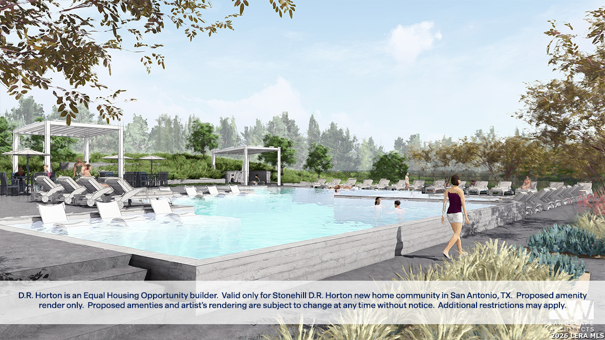 Welcome to The Walsh, a stunning two-story home located at Stonehill in San Antonio, TX. This floor plan offers 4 classic exteriors, a 2-car garage, and a full yard landscaping and irrigation package, ensuring that your home has instant curb appeal. A spacious covered front porch (per plan) welcomes you inside this 4 bedroom, 2.5 bathroom home where you'll find 2323 square feet of living space. Follow the entry hallway past a beautiful formal dining room and into the open kitchen featuring stainless steel appliances, quartz countertops, stylish white subway tile backsplash, spacious corner pantry, tons of cabinet space and a large eat-in breakfast bar. The kitchen opens to a spacious living room, complete with a stunning vaulted ceiling and easy-maintenance hard surface flooring. The living room extends to a lengthy covered back patio (per plan), perfect for outdoor dining or just simply keeping an eye on the kids while they play outside. The private main bedroom suite is located downstairs off the family room and offers dual vanities, a separate tub and walk-in shower, ceramic tile flooring, and a storage-friendly walk-in closet with shelving. Head upstairs to find a spacious game room or office area, a second full bath, and three large secondary bedrooms with quality carpet and walk-in closets. Additional features of The Walsh include 2-inch faux wood blinds throughout the home, luxury vinyl plank flooring in entryway, family room, kitchen, and dining room, ceramic tile at all bathrooms and utility room, and pre-plumb for water softener loop. You'll enjoy added security in your new home with our Home is Connected features. Using one central hub that talks to all the devices in your home, you can control the lights, thermostat and locks, all from your cellular device.