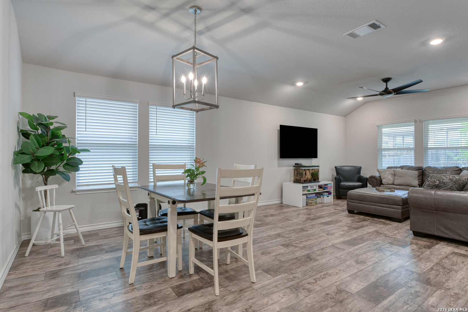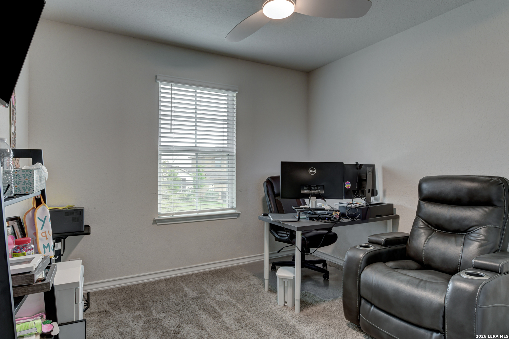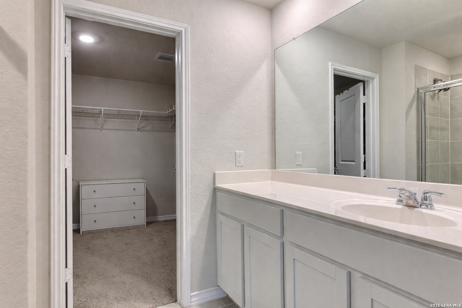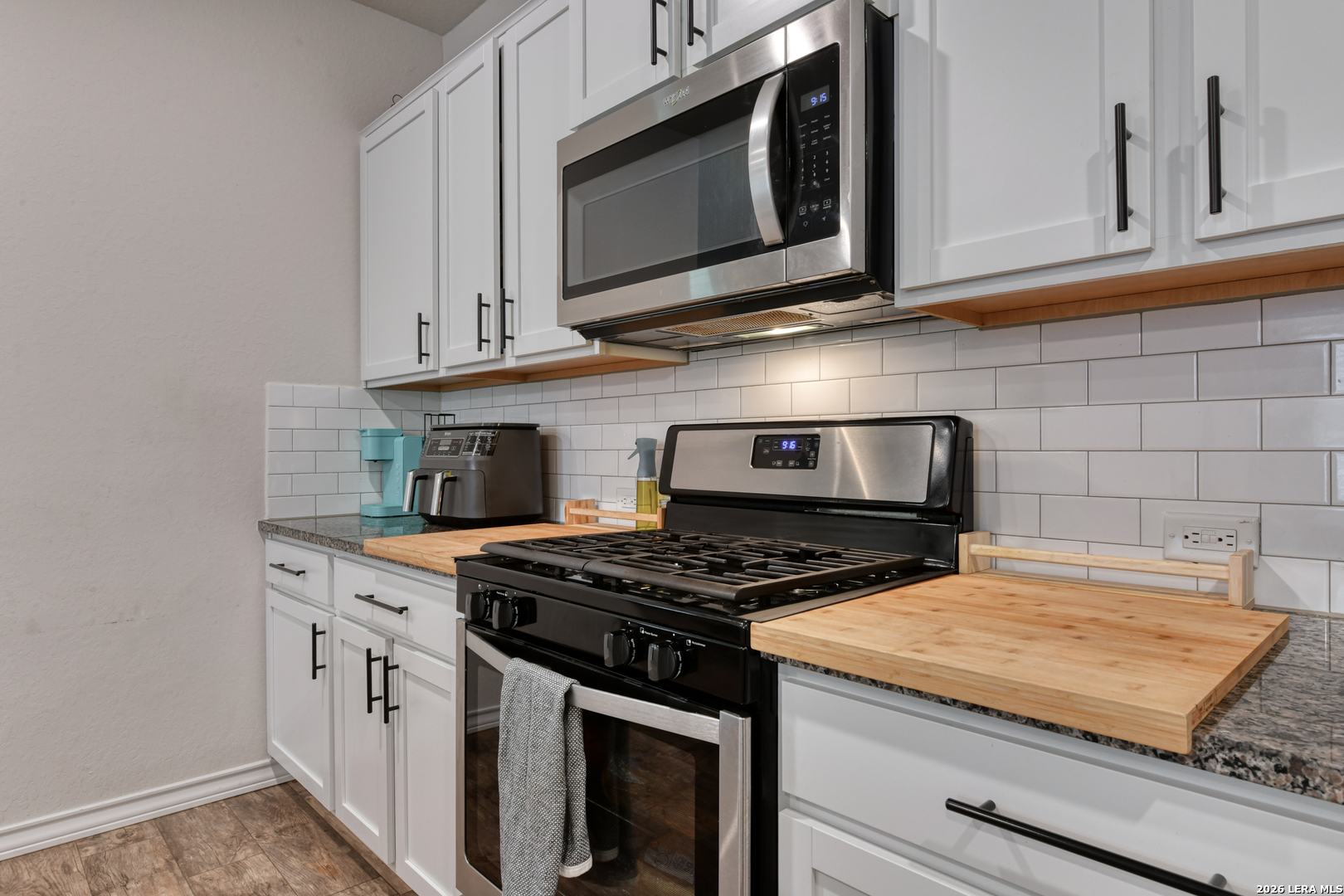 Welcome to The Caden floor plan in Brookstone Creek-where smart design meets everyday comfort in this beautifully maintained single-story home in San Antonio. Offering 1595 sq ft, 3 bedrooms, and 2 full baths, this home features an open-concept layout. The kitchen is the heart of the home, showcasing stainless steel appliances, gas cooking, a deep farmhouse sink, classic white subway tile backsplash, and a spacious island with seating. An extended pantry provides abundant storage and functionality. The private primary suite offers a relaxing retreat with a tiled walk-in shower and generous walk-in closet. Secondary bedrooms are well-sized with ample closet space and natural light. Additional features include luxury vinyl flooring throughout main living areas and wet zones, covered patio, sprinkler system, water softener, EV-ready 220V outlet, added attic storage platforms, and security system. Conveniently located near shopping, dining, and major highways, this home combines modern finishes with practical upgrades-ready for its next owner.