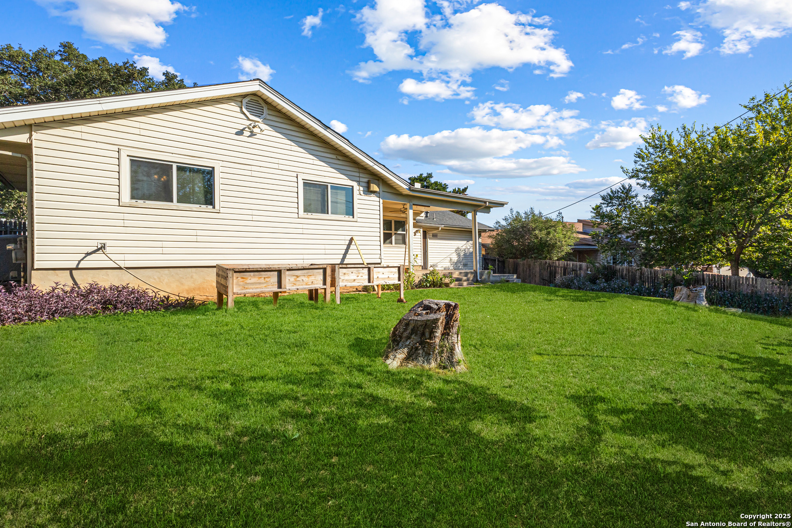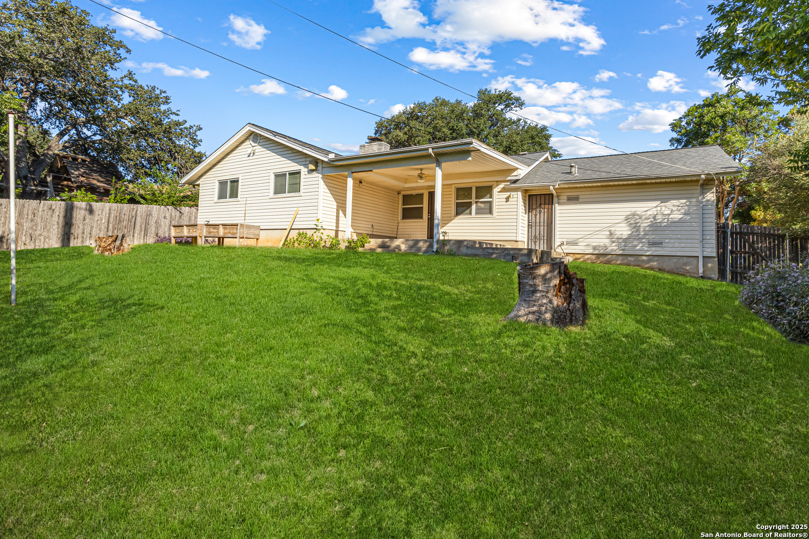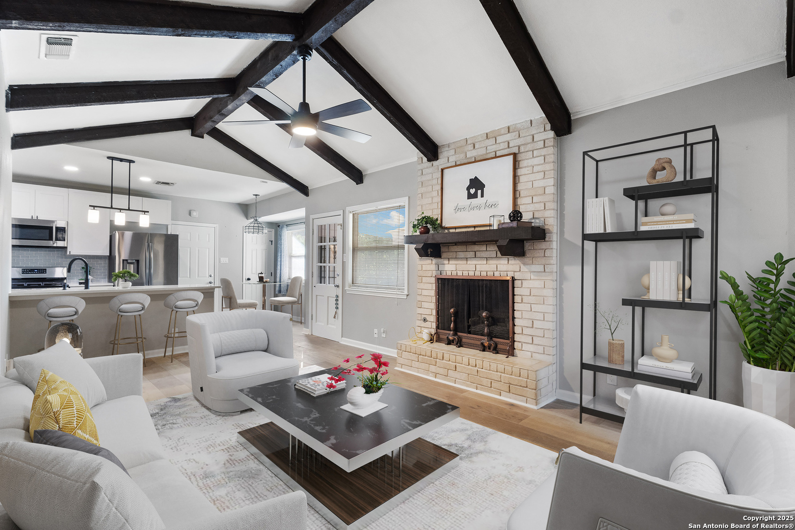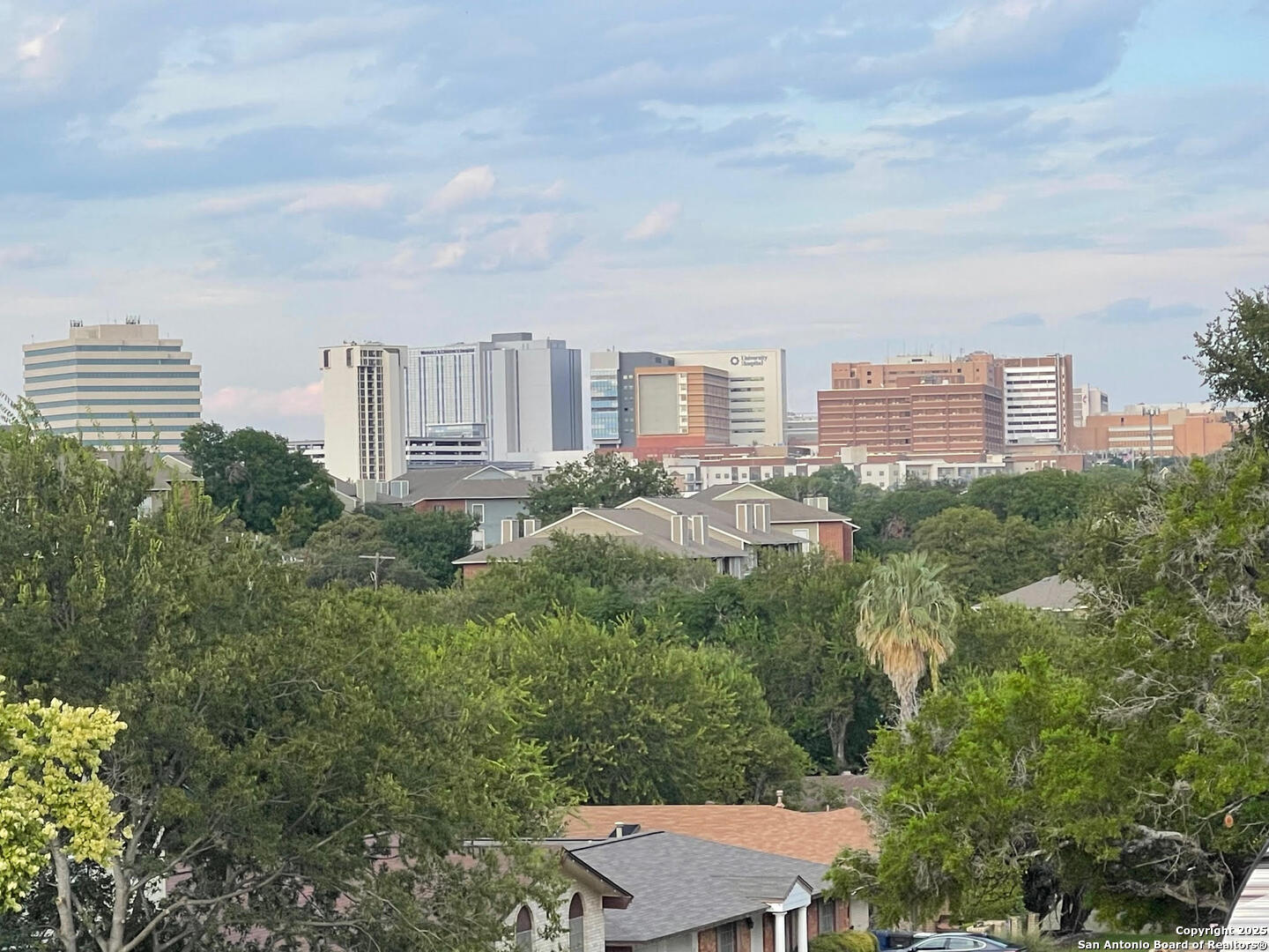Well cared for one story home offering 4 bedrooms, 2 baths, updated kitchen, modern engineered wood flooring and neutral colors through out. Welcoming covered front porch leads into the living and dining rooms. The second living or family room has gas fireplace and the layout is open to the kitchen. Additional seating for entertaining can be added at the quartz countertop breakfast bar. The bedrooms are spacious with ample closet space. The home offers comfortable living space and is well lit from the natural light. Enjoy Texas BBQ's on the large covered back patio. Backyard has plenty of room for gardening, room to run and is maintainable. Home is energy efficient with newer windows and ceiling fans. Views of the South Texas Medical Center skyline, home to the major hub of medical treatment, education and research. Convenient to universities, shops and restaurants. Walk to Oak Hills Elementary. Schedule your private showing located in the heart of Oak Hills Terrace.