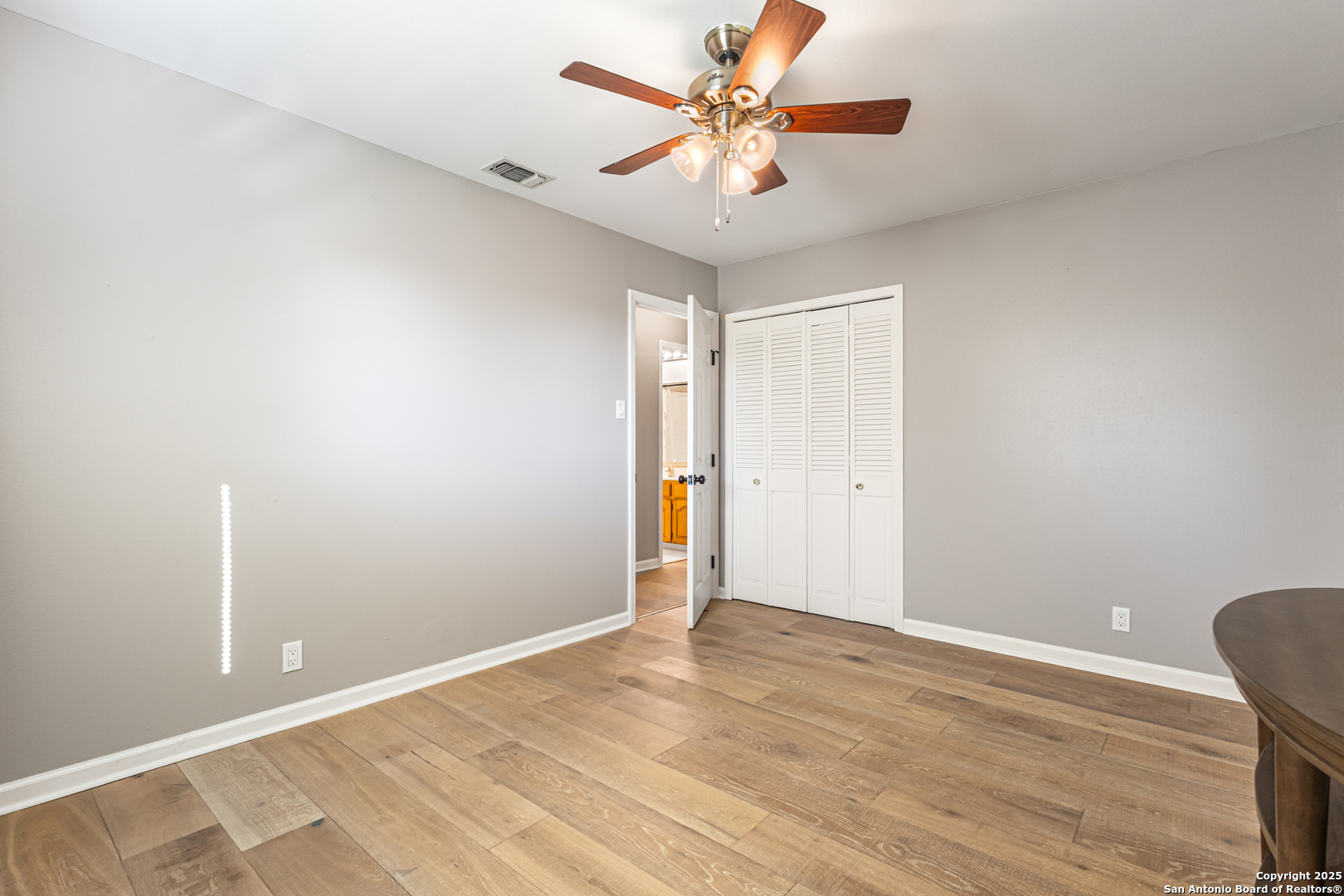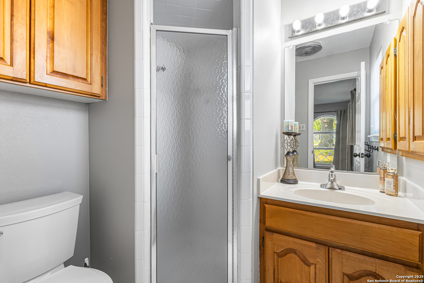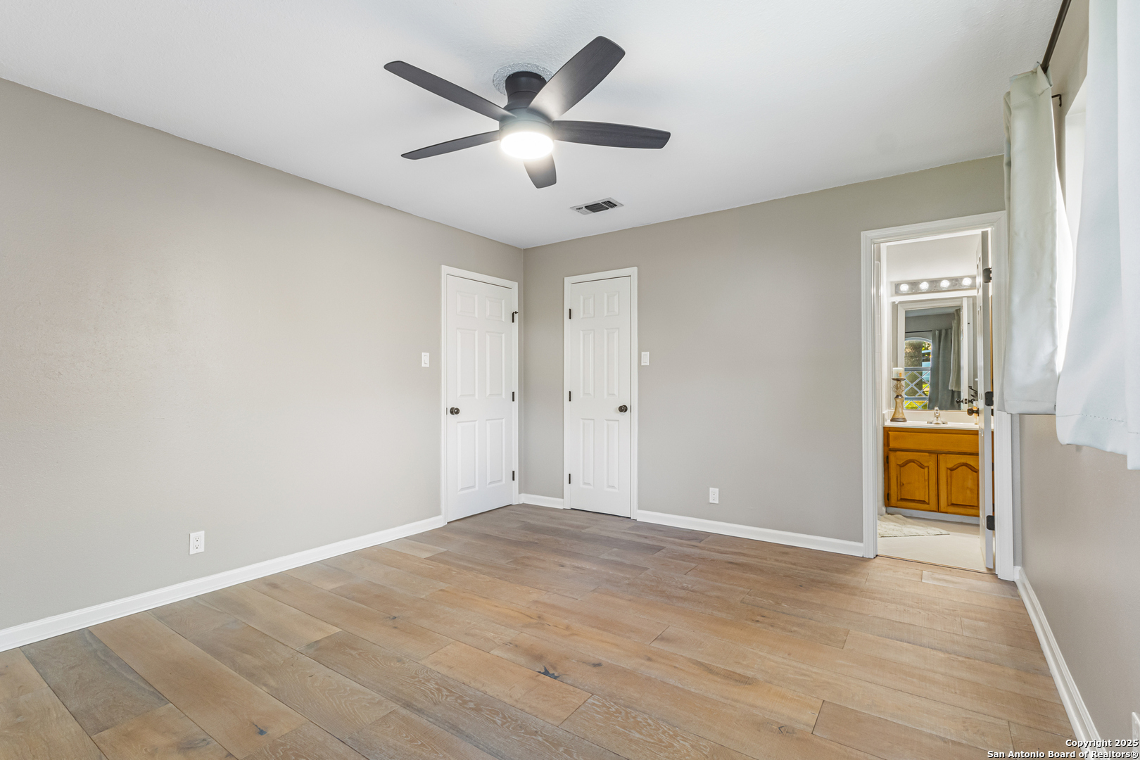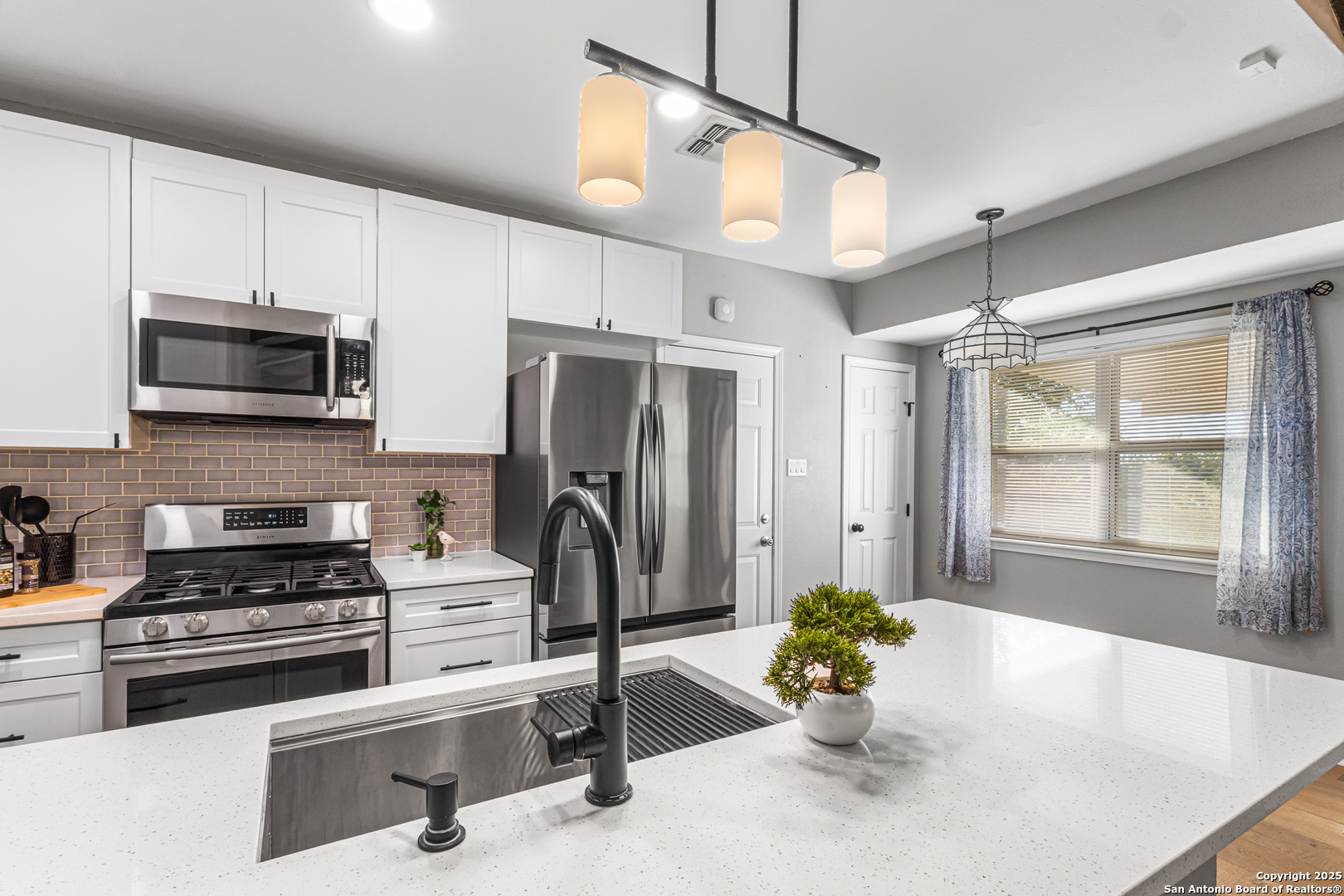 Well cared for one story home offering 4 bedrooms, 2 baths, updated kitchen, modern engineered wood flooring and neutral colors through out. Welcoming covered front porch leads into the living and dining rooms. The second living or family room has gas fireplace and the layout is open to the kitchen. Additional seating for entertaining can be added at the quartz countertop breakfast bar. The bedrooms are spacious with ample closet space. The home offers comfortable living space and is well lit from the natural light. Enjoy Texas BBQ's on the large covered back patio. Backyard has plenty of room for gardening, room to run and is maintainable. Home is energy efficient with newer windows and ceiling fans. Views of the South Texas Medical Center skyline, home to the major hub of medical treatment, education and research. Convenient to universities, shops and restaurants. Walk to Oak Hills Elementary. Schedule your private showing located in the heart of Oak Hills Terrace.