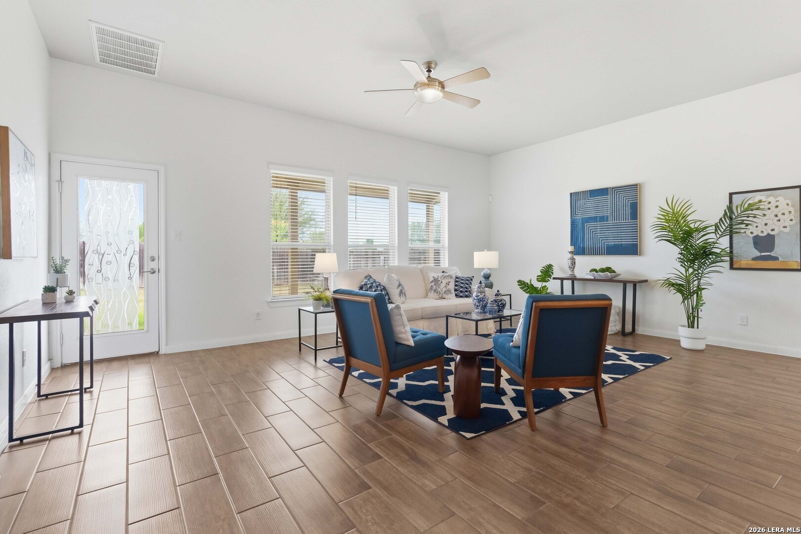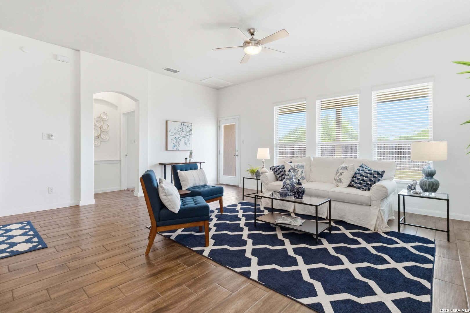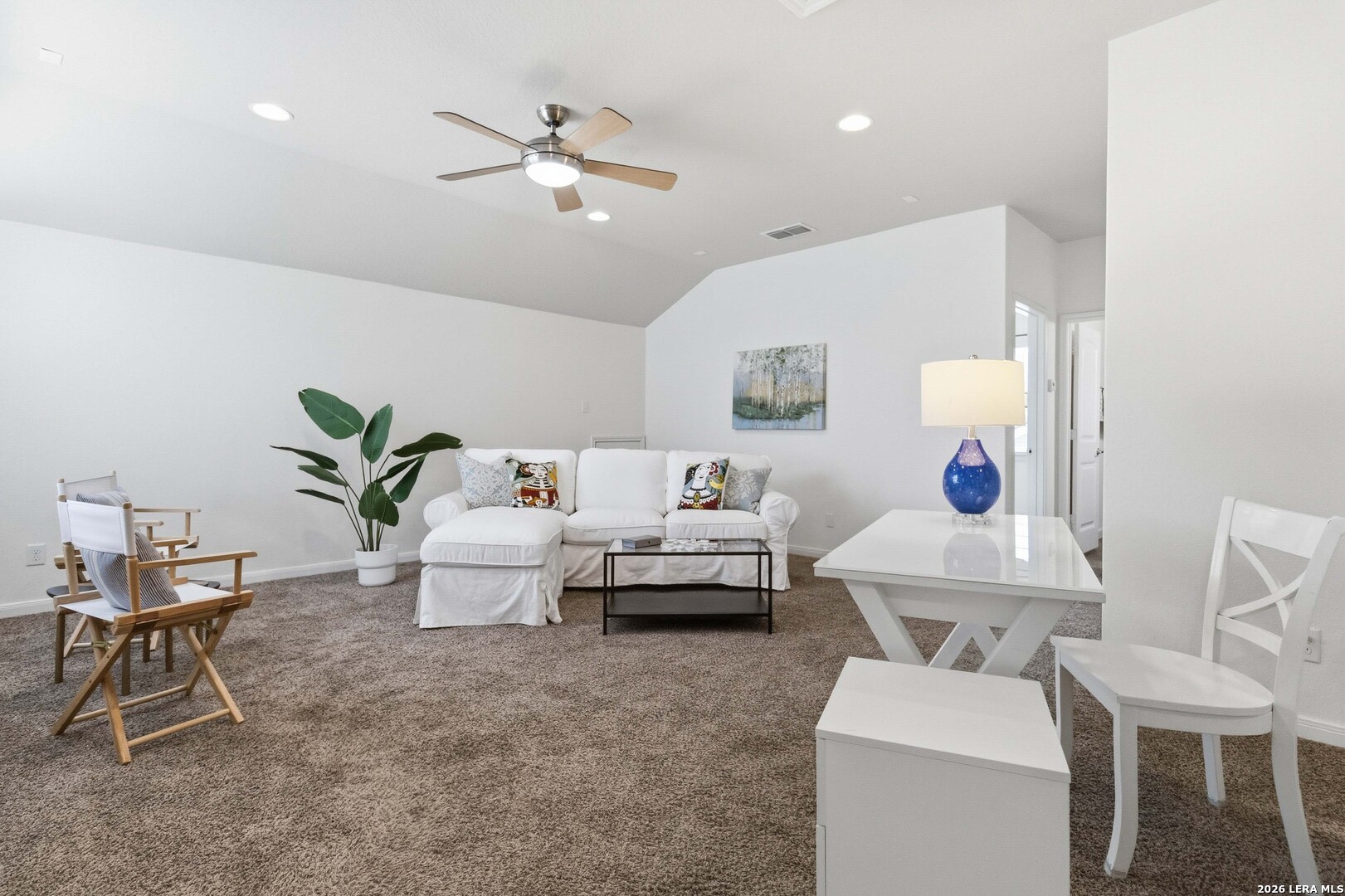 Welcome to this like-new home located in the quiet, tucked-away neighborhood of Briar Meadows! This uniquely designed property offers both comfort and flexibility, making it ideal for a variety of living arrangements. As you enter, you are greeted by abundant natural light and open-concept living that creates a warm and inviting atmosphere. The versatile floor plan is well-suited for multi-generational living, with three bedrooms conveniently located on the main level, including the primary suite. The downstairs bathroom includes a wider doorway and accessible shower entry, adding to the home's thoughtful design and functionality. Tucked away behind the kitchen, don't miss the additional flex space, perfect for a home office, workout area, playroom or even a potential fifth bedroom. The second floor features an expansive additional living space, along with a separate fourth bedroom and full bathroom, creating a true home-within-a-home feel - perfect as a media room or more private space for guests, or extended family needs. Enjoy a private backyard, with a covered patio and no rear neighbors, providing added peace and space for relaxation or entertaining. In the front, the home features a 3-car garage complemented by an oversized driveway, offering ample parking and storage options. The home is ready for immediate move in with all appliances conveying, including the new water softener, refrigerator, washer and dryer, and window blinds and ceiling fans throughout, adding immediate value and convenience for the next homeowner. The builder's warranty remains in place through August 2027. This property combines modern condition, functional design, and a peaceful neighborhood setting, while also being conveniently located with quick access to major highways - truly a wonderful place to make your next home.
