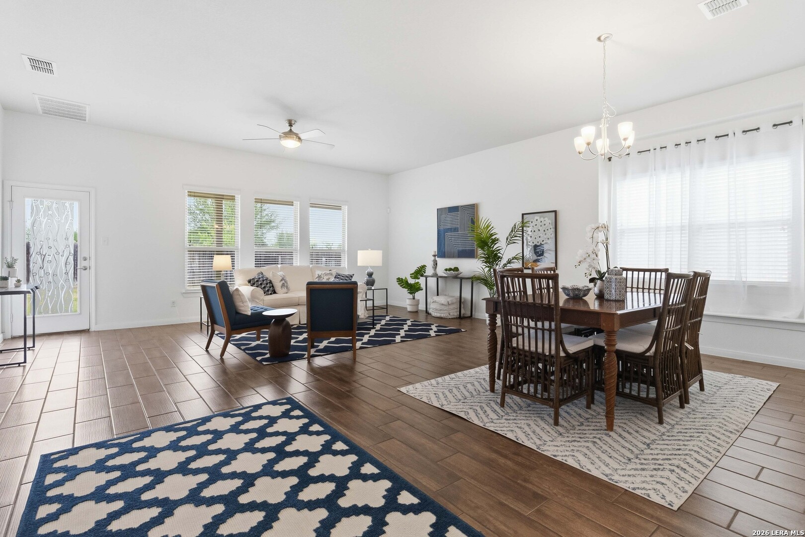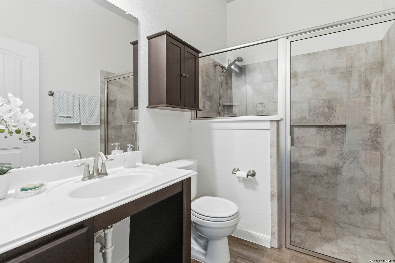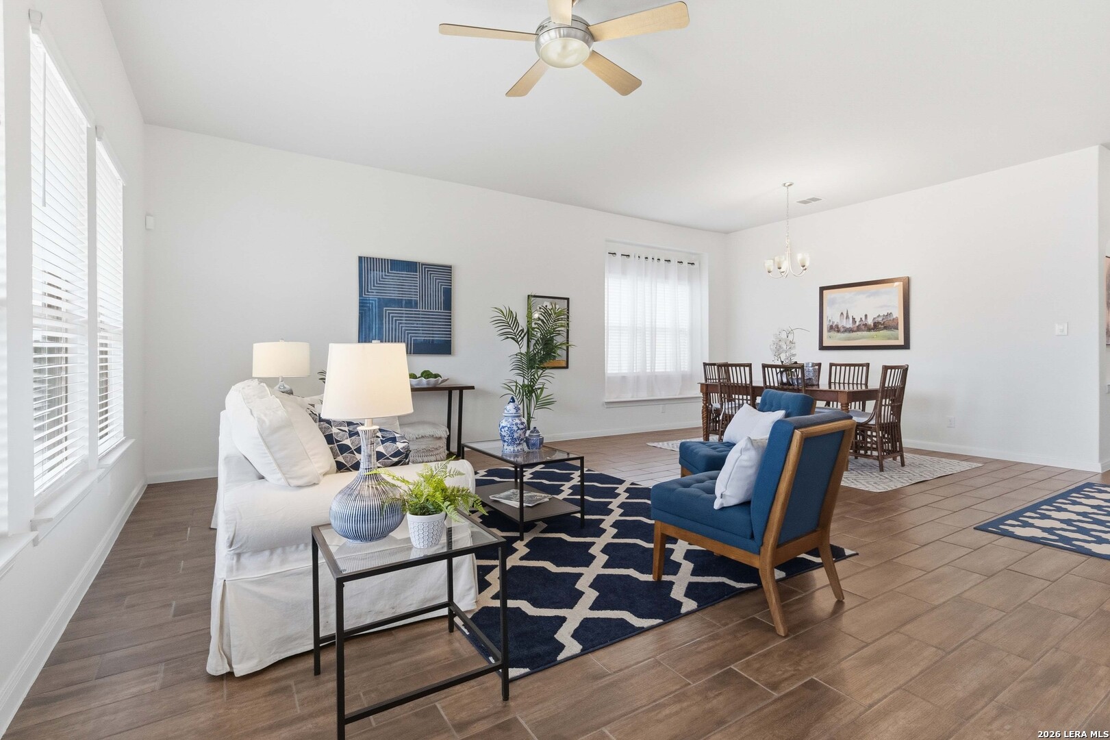 Welcome to this like-new home located in the quiet, tucked-away neighborhood of Briar Meadows! This uniquely designed property offers both comfort and flexibility, making it ideal for a variety of living arrangements. As you enter, you are greeted by abundant natural light and open-concept living that creates a warm and inviting atmosphere. The versatile floor plan is well-suited for multi-generational living, with three bedrooms conveniently located on the main level, including the primary suite. The downstairs bathroom includes a wider doorway and accessible shower entry, adding to the home's thoughtful design and functionality. Tucked away behind the kitchen, don't miss the additional flex space, perfect for a home office, workout area, playroom or even a potential fifth bedroom. The second floor features an expansive additional living space, along with a separate fourth bedroom and full bathroom, creating a true home-within-a-home feel - perfect as a media room or more private space for guests, or extended family needs. Enjoy a private backyard, with a covered patio and no rear neighbors, providing added peace and space for relaxation or entertaining. In the front, the home features a 3-car garage complemented by an oversized driveway, offering ample parking and storage options. The home is ready for immediate move in with all appliances conveying, including the new water softener, refrigerator, washer and dryer, and window blinds and ceiling fans throughout, adding immediate value and convenience for the next homeowner. The builder's warranty remains in place through August 2027. This property combines modern condition, functional design, and a peaceful neighborhood setting, while also being conveniently located with quick access to major highways - truly a wonderful place to make your next home.