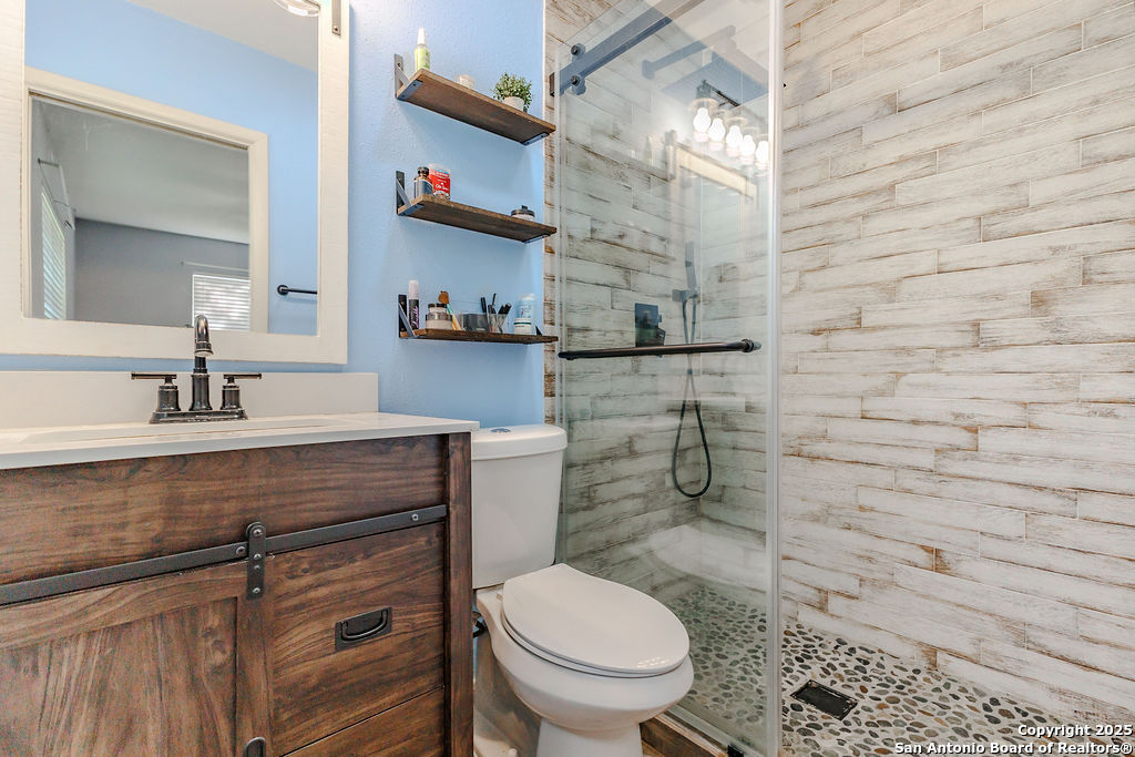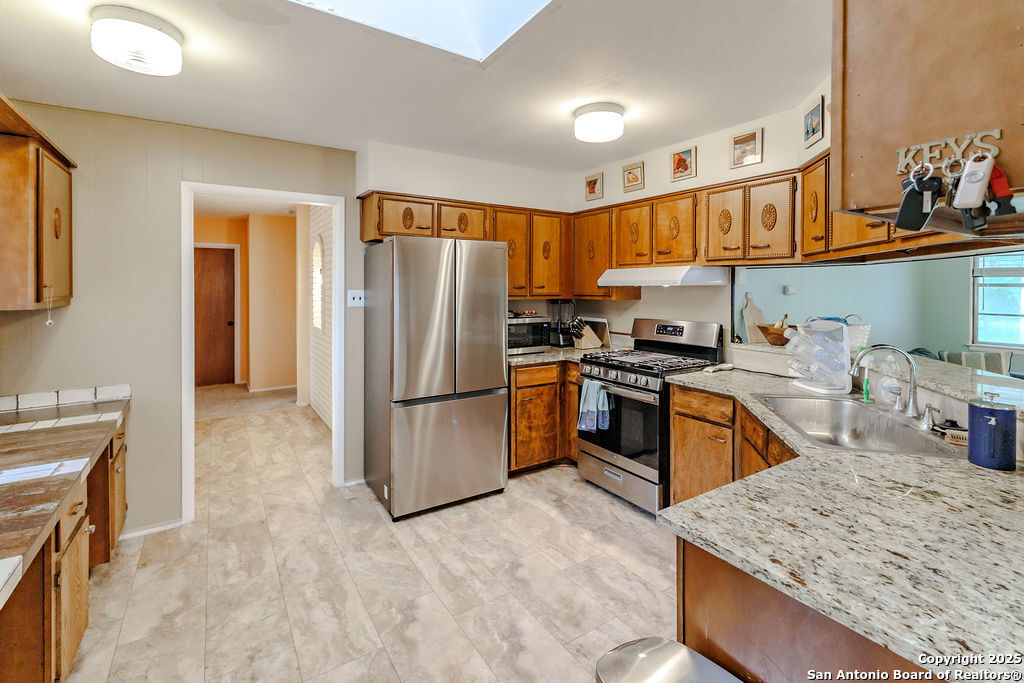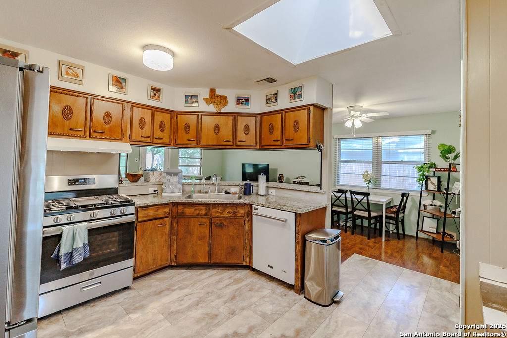 Motivated Sellers! Welcome to 5634 Charlie Chan, a charming 3-bedroom, 2-bathroom home located in the established and well-loved neighborhood of Oak Hills Terrace. Set on an expansive 0.234-acre lot, this home offers the perfect blend of classic character, thoughtful updates, and outdoor space that's hard to find in this price range. As you arrive, mature trees and a shaded front yard set a welcoming tone, while a brick accent wall at the entry reflects the timeless curb appeal of the home's exterior. Inside, you'll find two comfortable living areas-ideal for entertaining, relaxing, or creating a flexible work-from-home space. The kitchen features original cabinetry with vintage charm, a skylight that fills the space with natural light, and an updated gas stove for modern convenience. The updated primary bath brings a fresh touch to your private retreat, while generously sized secondary bedrooms and a functional layout provide comfort throughout. Step outside to a covered back patio, perfect for enjoying morning coffee or winding down at sunset. The large backyard offers endless possibilities for gardening, play, or future outdoor living enhancements. Located in the highly rated Northside ISD, and with quick access to major highways, shopping centers, restaurants, and parks, this home delivers on location, lot size, and character. Whether you're a first-time buyer or looking for a home with room to grow, this is a rare find in one of San Antonio's hidden gems.