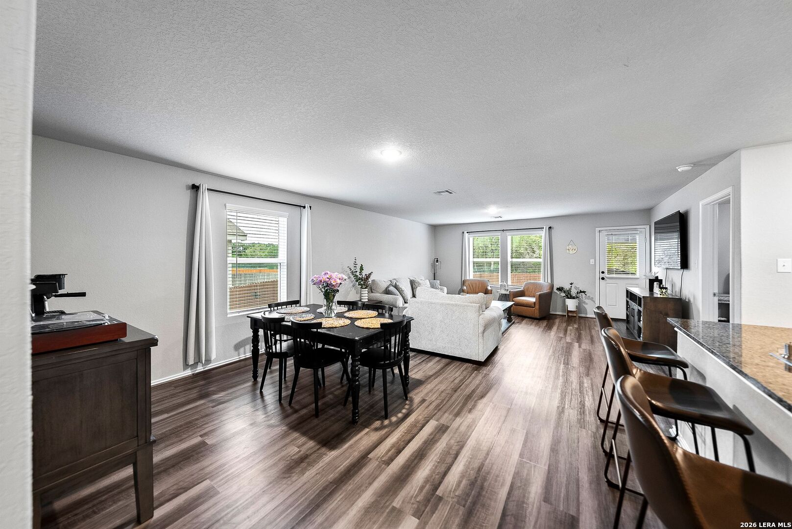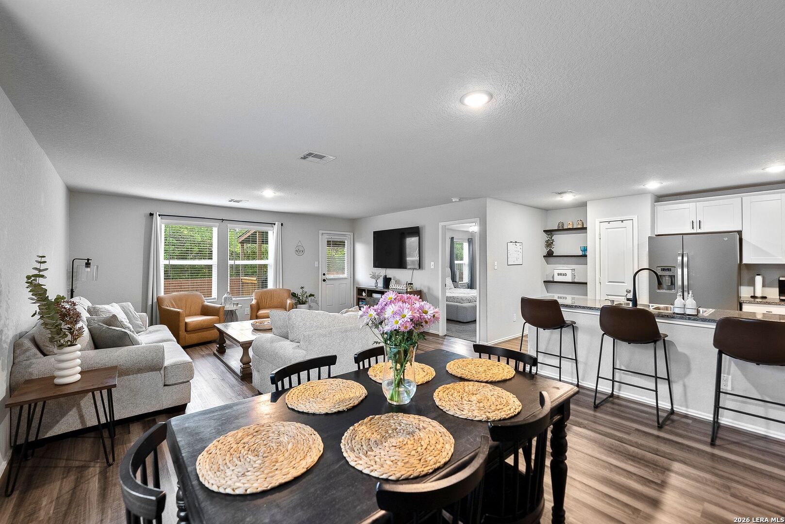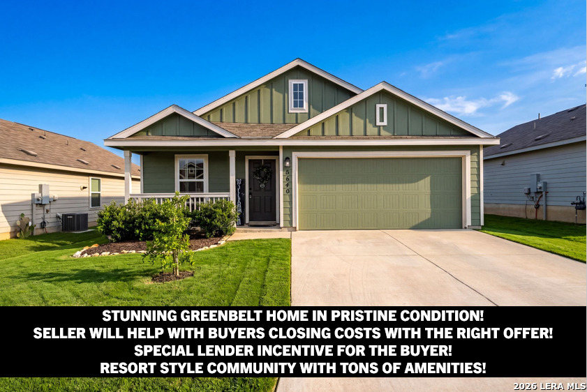Take advantage of valuable savings! The seller is offering assistance with buyer's closing costs with the right offer, along with lender incentives-helping you reduce cash needed at closing and enjoy lower monthly payments! Located in a resort-style community and within walking distance to amazing neighborhood amenities, this home also sits on a premium greenbelt lot with no rear neighbors, offering both lifestyle and privacy. Welcome to 5640 Jasmine Spur in Bulverde, a perfect home for a first-time buyer or a strong investment opportunity. This beautifully maintained and exceptionally well-kept 4-bedroom, 2-bath home offers 1,668 square feet of smart, functional living space that blends comfort, style, and efficiency. The owners have taken amazing care of this home, and it truly shows throughout. The open-concept floor plan features a spacious living area filled with natural light, creating an inviting atmosphere ideal for relaxing or entertaining. The seamless flow into the kitchen makes everyday living effortless, with plenty of quartz countertop space, a convenient breakfast bar, energy-efficient appliances, and great visibility into the main living space-perfect for hosting guests or staying connected with family. Step outside to your private backyard retreat, where you can enjoy morning coffee, weekend barbecues, or peaceful evenings under the covered 12x16 deck. Backing to a greenbelt, this space offers added privacy and a serene setting with no rear neighbors. The backyard also features a concrete walkway, a fully stained privacy fence, and a sprinkler system covering both the front and back yard for easy maintenance. Three bedrooms are located at the front of the home, with one ideal for use as a home office. The primary suite is privately positioned at the back of the home and features an en-suite bathroom with a large walk-in shower and a spacious walk-in closet. Additional upgrades include a water softener, upgraded black fixtures throughout the home, updated cabinet hardware in the kitchen and bathrooms, blinds and screens on all windows, and a painted garage with a garage door opener. The home has the option to connect to high-speed fiber-optic internet. This home has been meticulously cared for and offers both value and lifestyle in a premium location, zoned to the highly rated Comal Independent School District. COMMUNITY: Imagine living in a RESORT STYLE COMMUNITY where every day feels like a vacation! Experience modern living with amenities like a stunning infinity pool, a brand-new Junior Olympic-sized lap pool, and a splash pad for kids. Access a contemporary clubhouse, a well-equipped 24/7 gym, a fitness center, and enjoy yoga classes. Discover miles of scenic walking and biking trails and access to the dog-friendly Kleck Park. Challenge friends to basketball, host BBQs, or spend quality time with your children on multiple playgrounds, where one features an exhilarating zip line, while the other offers diverse play options! Join an engaging community center hosting live music, events, and food trucks. Relax by the catch-and-release fishing pond. Hidden Trails offers a vibrant lifestyle with endless possibilities! LOCATION: Hidden Trails subdivision provides convenience, located just off Highway 281, with a few minutes' drive to nearby shopping at HEB and Walmart, as well as Starbucks, restaurants, and medical facilities. All your daily needs are within easy reach. The San Antonio Airport is a mere 30 minutes away. Additionally, the stunning Canyon Lake is just a short 20-minute drive.