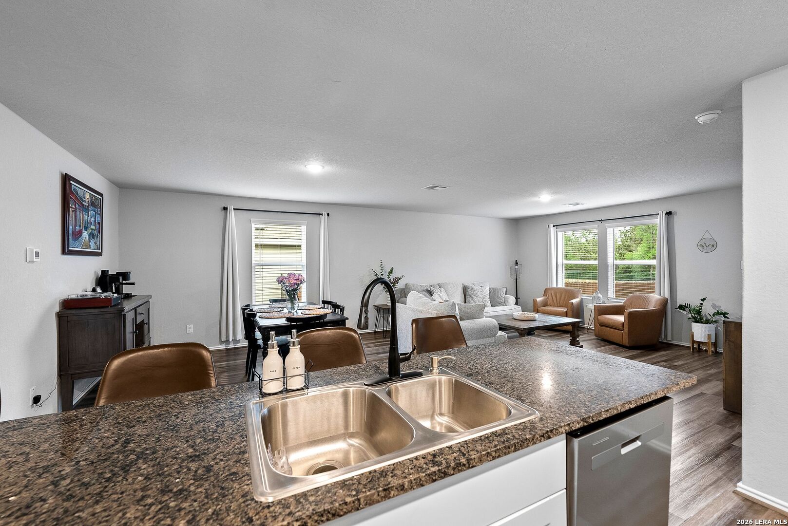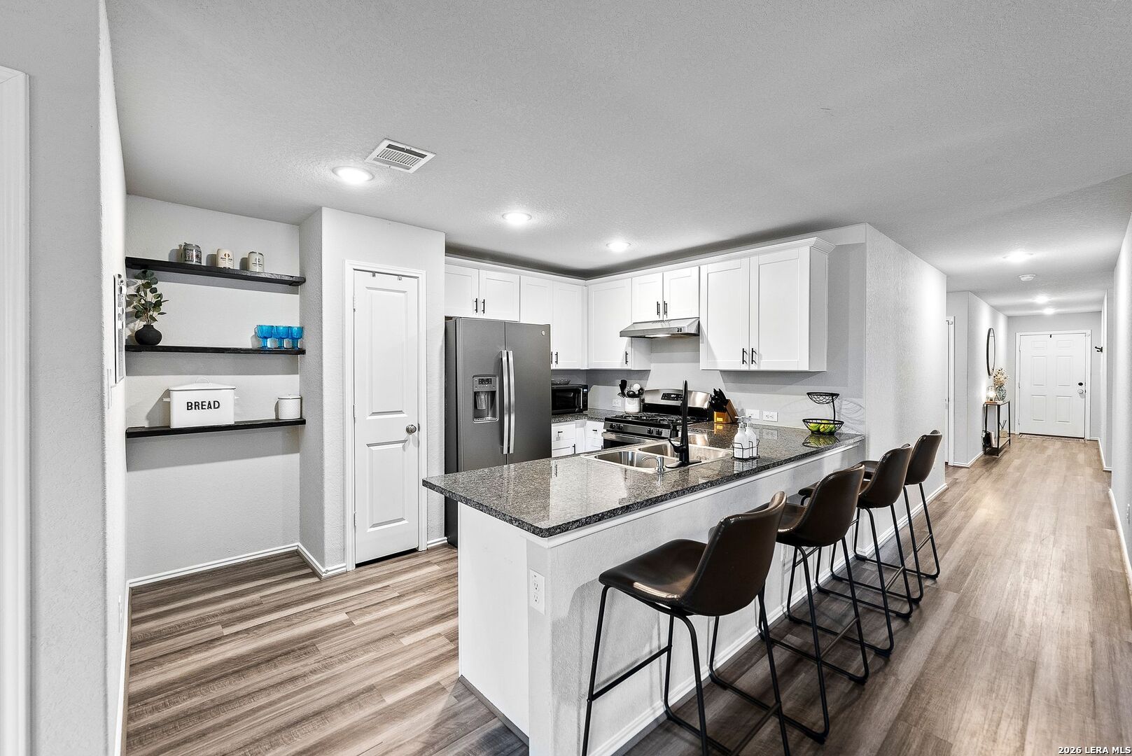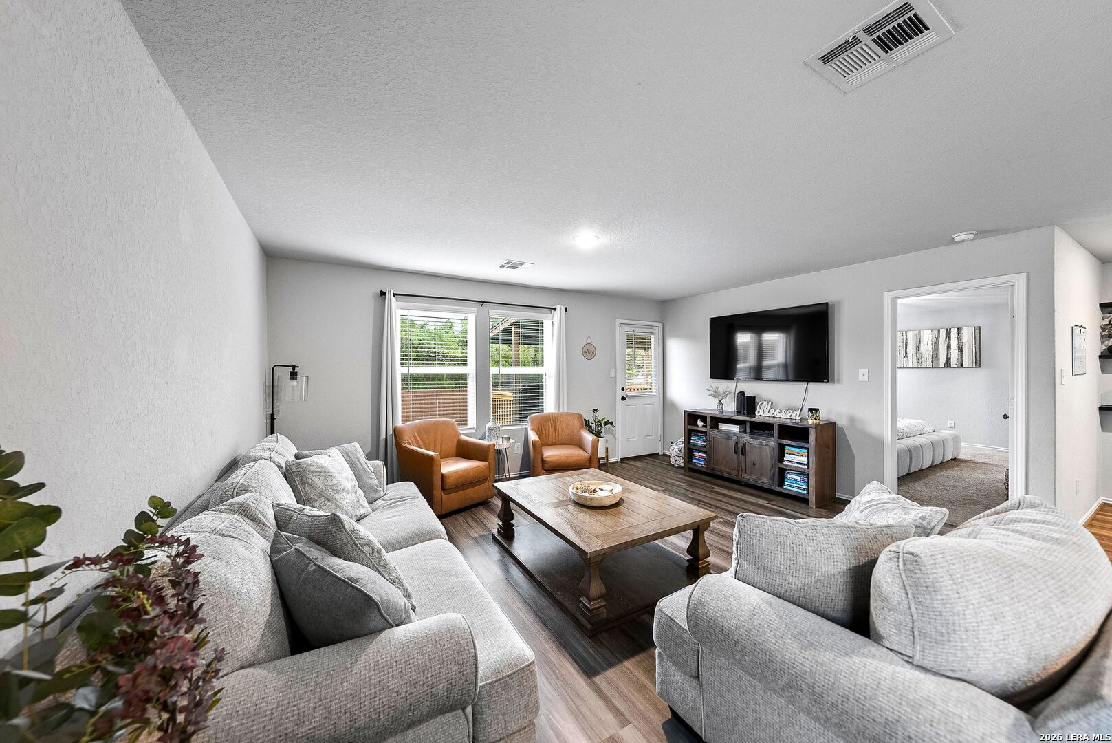 Take advantage of valuable savings! The seller is offering assistance with buyer's closing costs with the right offer, along with lender incentives-helping you reduce cash needed at closing and enjoy lower monthly payments! Located in a resort-style community and within walking distance to amazing neighborhood amenities, this home also sits on a premium greenbelt lot with no rear neighbors, offering both lifestyle and privacy. Welcome to 5640 Jasmine Spur in Bulverde, a perfect home for a first-time buyer or a strong investment opportunity. This beautifully maintained and exceptionally well-kept 4-bedroom, 2-bath home offers 1,668 square feet of smart, functional living space that blends comfort, style, and efficiency. The owners have taken amazing care of this home, and it truly shows throughout. The open-concept floor plan features a spacious living area filled with natural light, creating an inviting atmosphere ideal for relaxing or entertaining. The seamless flow into the kitchen makes everyday living effortless, with plenty of quartz countertop space, a convenient breakfast bar, energy-efficient appliances, and great visibility into the main living space-perfect for hosting guests or staying connected with family. Step outside to your private backyard retreat, where you can enjoy morning coffee, weekend barbecues, or peaceful evenings under the covered 12x16 deck. Backing to a greenbelt, this space offers added privacy and a serene setting with no rear neighbors. The backyard also features a concrete walkway, a fully stained privacy fence, and a sprinkler system covering both the front and back yard for easy maintenance. Three bedrooms are located at the front of the home, with one ideal for use as a home office. The primary suite is privately positioned at the back of the home and features an en-suite bathroom with a large walk-in shower and a spacious walk-in closet. Additional upgrades include a water softener, upgraded black fixtures throughout the home, updated cabinet hardware in the kitchen and bathrooms, blinds and screens on all windows, and a painted garage with a garage door opener. The home has the option to connect to high-speed fiber-optic internet. This home has been meticulously cared for and offers both value and lifestyle in a premium location, zoned to the highly rated Comal Independent School District. COMMUNITY: Imagine living in a RESORT STYLE COMMUNITY where every day feels like a vacation! Experience modern living with amenities like a stunning infinity pool, a brand-new Junior Olympic-sized lap pool, and a splash pad for kids. Access a contemporary clubhouse, a well-equipped 24/7 gym, a fitness center, and enjoy yoga classes. Discover miles of scenic walking and biking trails and access to the dog-friendly Kleck Park. Challenge friends to basketball, host BBQs, or spend quality time with your children on multiple playgrounds, where one features an exhilarating zip line, while the other offers diverse play options! Join an engaging community center hosting live music, events, and food trucks. Relax by the catch-and-release fishing pond. Hidden Trails offers a vibrant lifestyle with endless possibilities! LOCATION: Hidden Trails subdivision provides convenience, located just off Highway 281, with a few minutes' drive to nearby shopping at HEB and Walmart, as well as Starbucks, restaurants, and medical facilities. All your daily needs are within easy reach. The San Antonio Airport is a mere 30 minutes away. Additionally, the stunning Canyon Lake is just a short 20-minute drive.