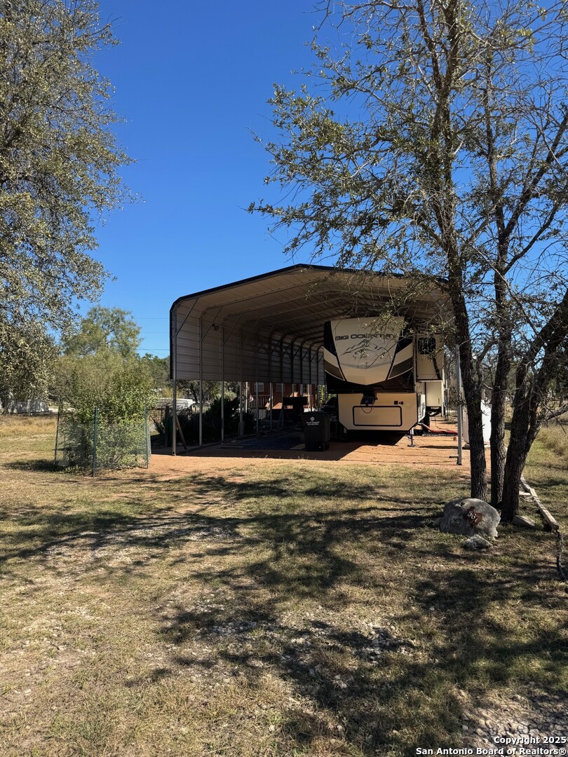 Very nice lot in River Bend. Has septic, storage room and cabin that was used for laundry and storage that has water, electric and window unit. Nice yard! 24x60 RV cover. This is a nice little piece of Bandera heaven! RV can be bought separately and is not included in this sales price. (RV is a 2019 Heartland RV's Big Country Fifth Wheel for $39,000)