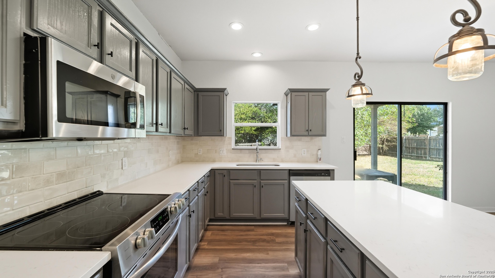 This inviting 4-bedroom, 2.5-bath home sits on a spacious corner lot and offers a perfect blend of comfort and style. Enjoy an updated primary suite featuring barn doors that open to a private en-suite bath. All bedrooms and the laundry room are conveniently located on the same floor. The island kitchen provides plenty of counter space, ideal for cooking and entertaining. Step out back to a covered porch that's perfect for relaxing or gathering with friends. A must-see rental in a great location!
