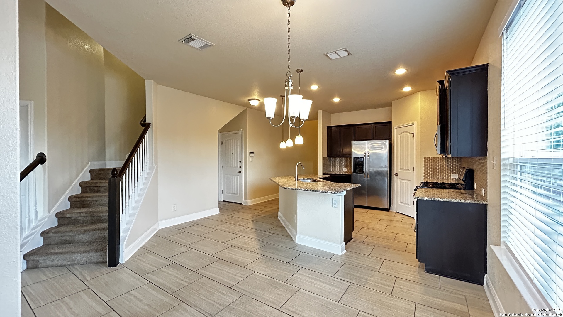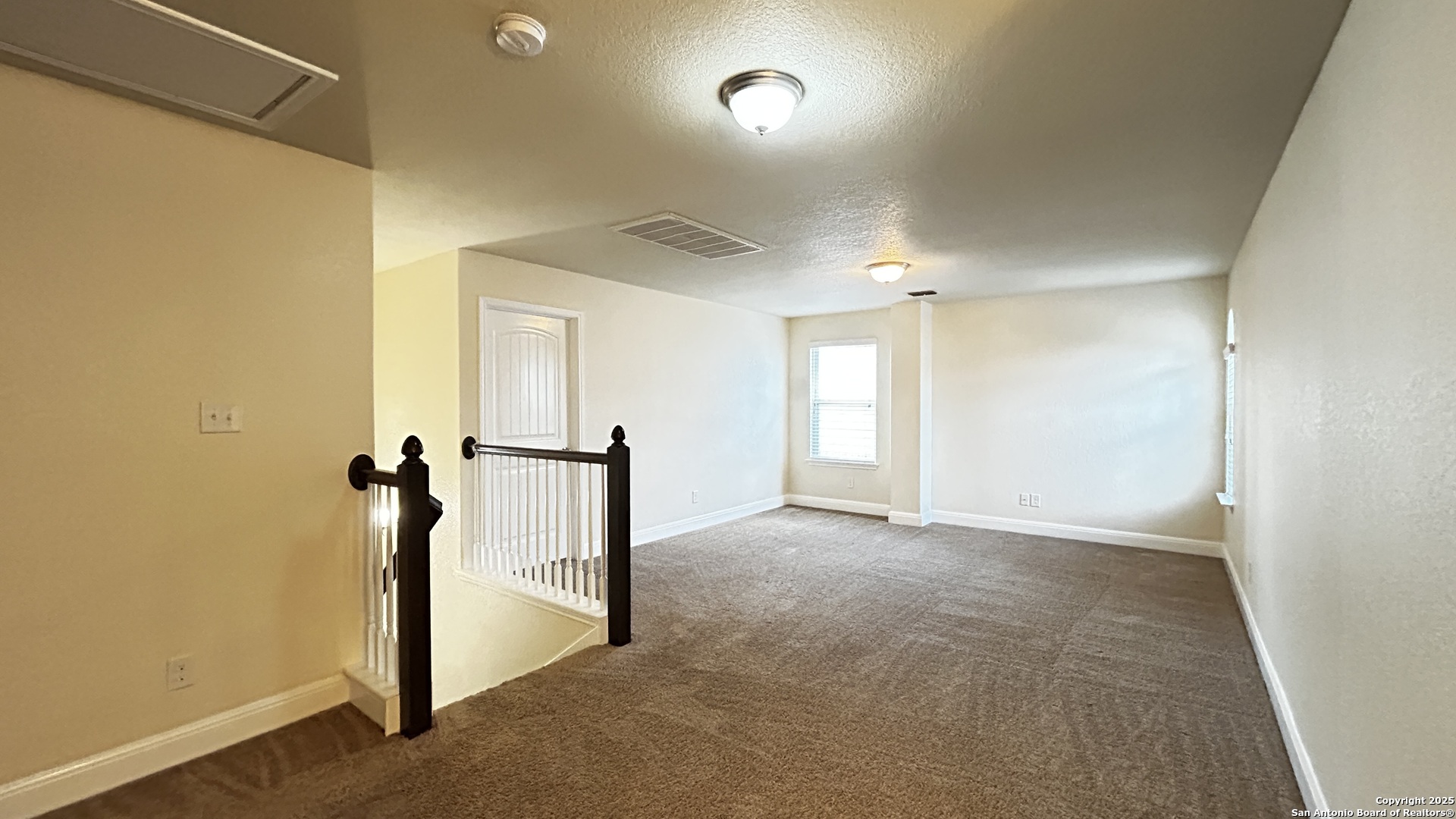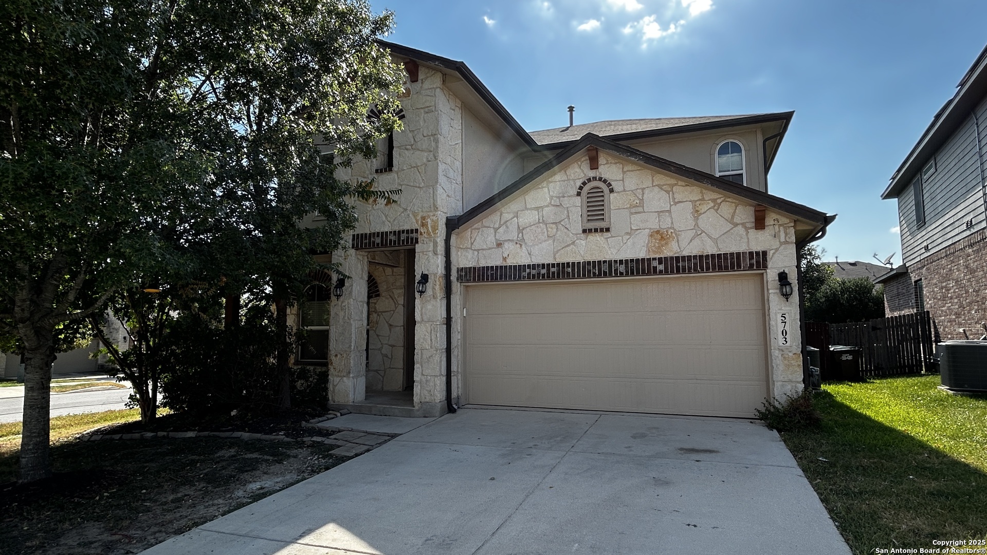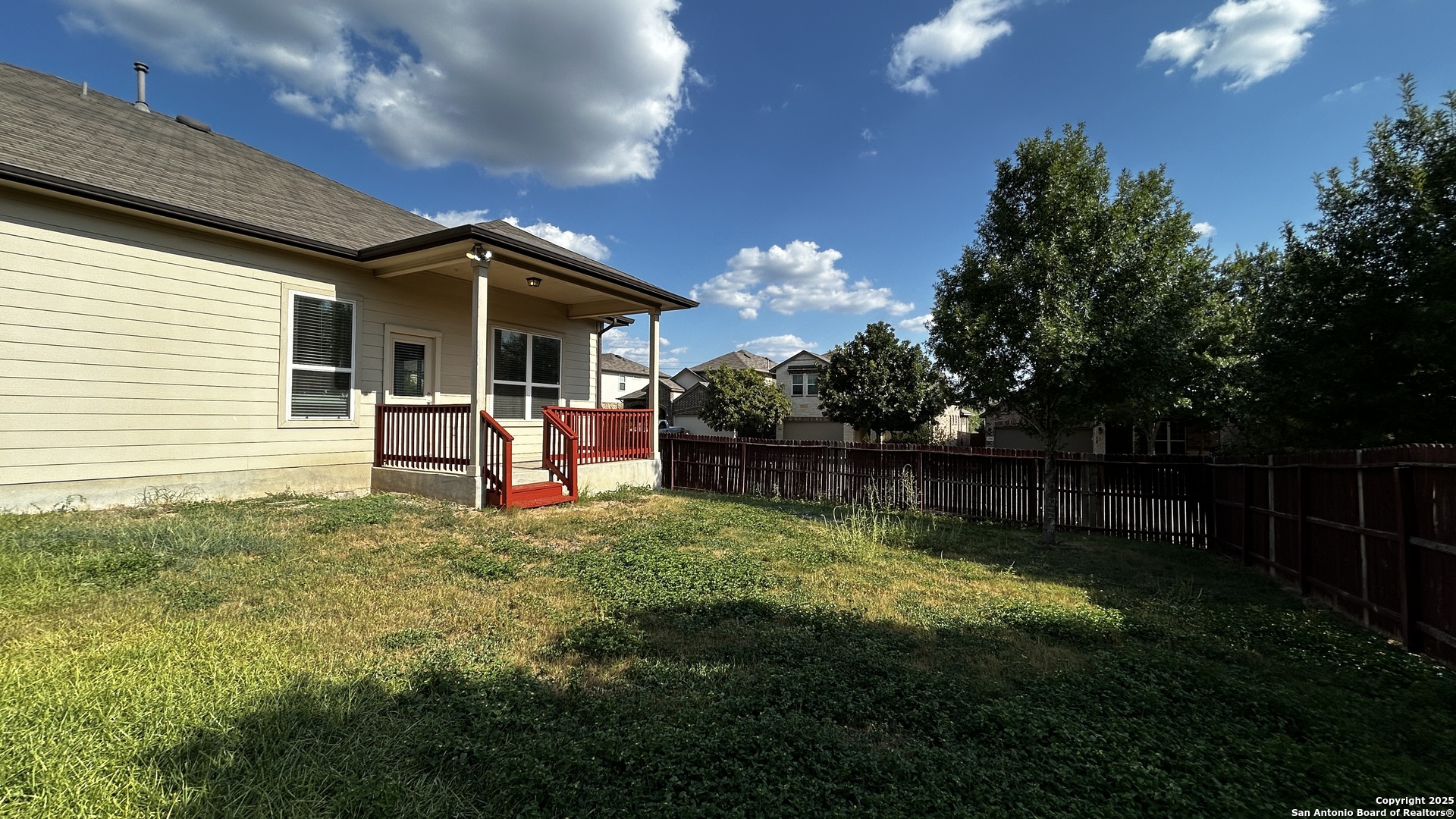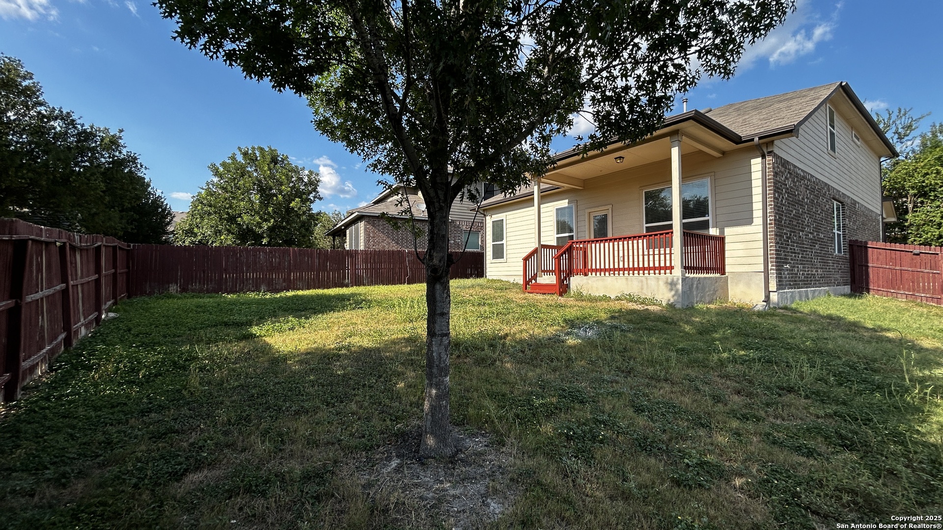 Nestled in the great community of Alamo Ranch is this lovely 2-story home on a corner lot featuring 2272 sq. Ft. living space, 4 bedrooms, 2.5 bathrooms, a dedicated office, and a massive upstairs game room. The elegant foyer and gorgeous ceramic tile floors on the main floor will greet you as you enter this gem. Carpets are only in bedrooms!! Adorned with lots of entertaining space, neutral paint, and blinds throughout. It is set up for entertaining with its incredible gourmet style kitchen boasting Stainless Steel appliances, gas cooking, canned recessed lights, beautiful granite counters, huge island bar with built in seating space, and lots of cabinets for storage. Right across the kitchen is the living room with a great view of large deck and fenced yard from its windows. The Primary bedroom downstairs is a retreat space tucked in the corner of the house for optimum privacy. It has walk-in closet, walk in shower, oversized garden tub, and dual vanities. From the living room, you can access the covered patio, fenced yard, and a large backyard perfect for weekend and holiday entertaining. HOA AMENITIES include Community Pool, Clubhouse, and Playground. Just minutes to Sea World, Alamo Ranch Shopping, restaurants, and major employers with quick access to 1604!