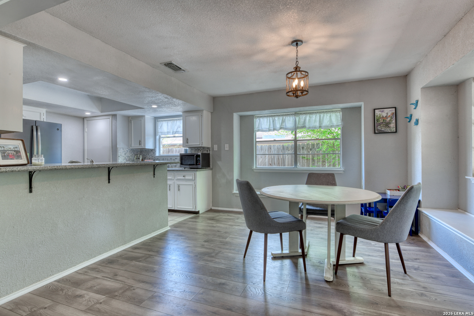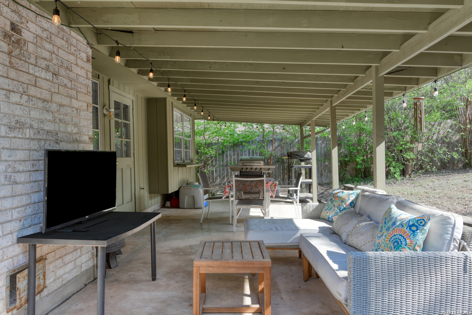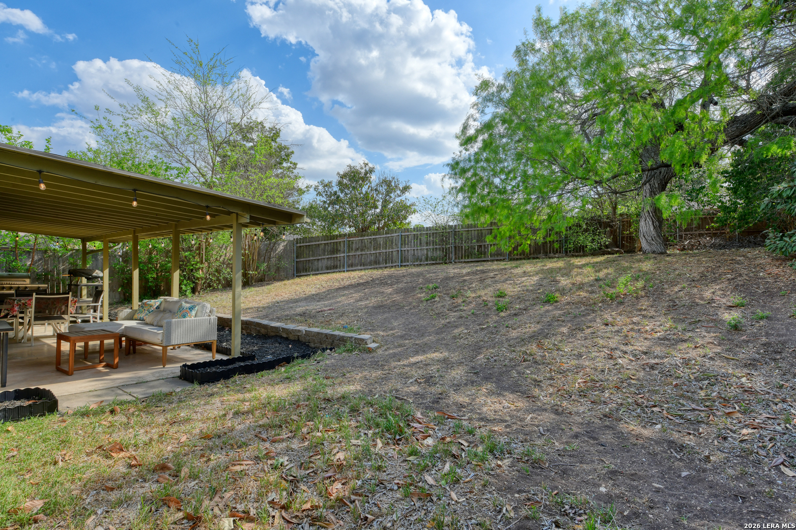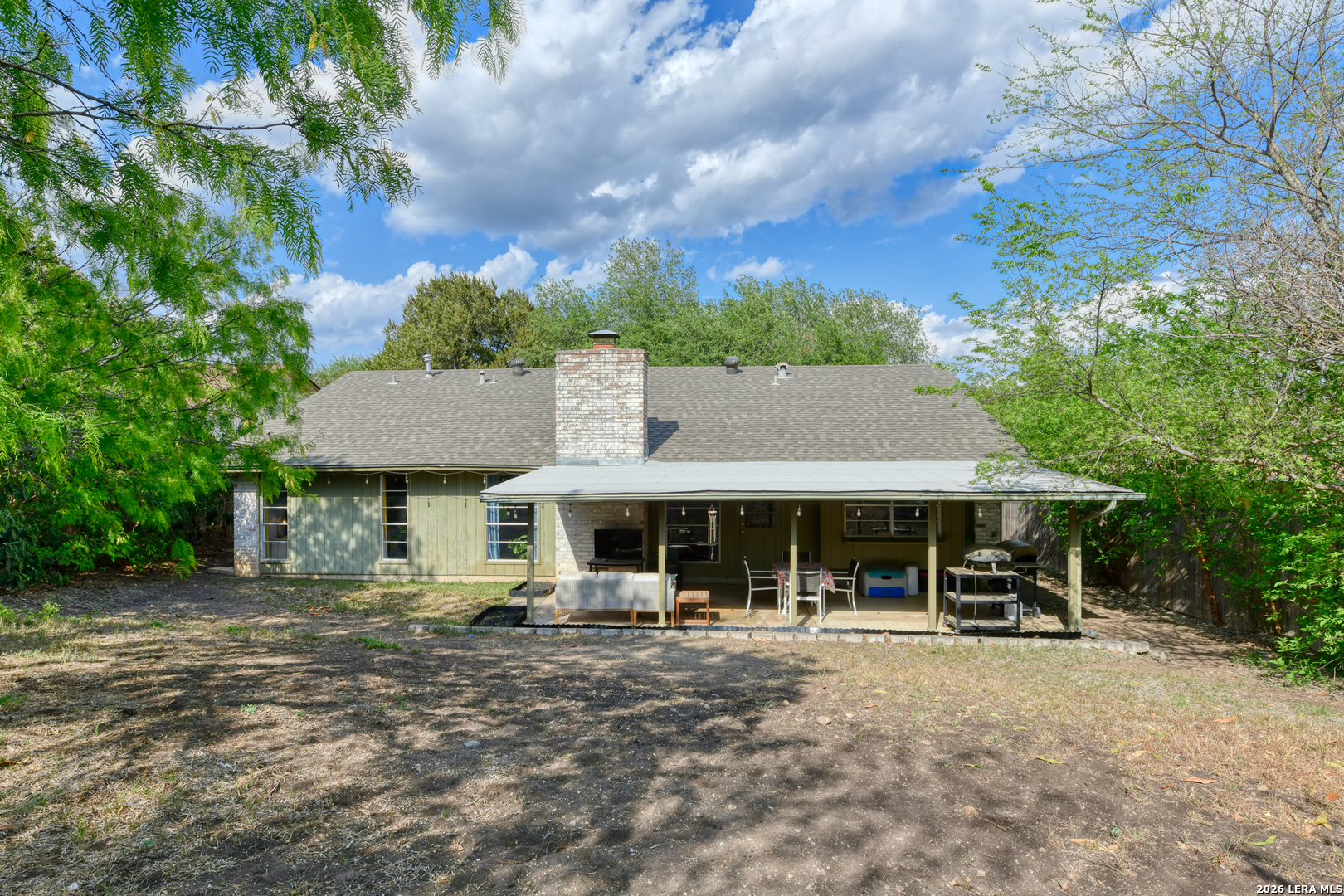 Mornings begin softly here, with sunlight filtering through the trees and into a home that feels both comfortable and connected. As you step inside, the living room opens up with vaulted ceilings and a striking beam overhead, while laminate wood-style flooring stretches underfoot and a gas fireplace anchors the space-perfect for slow evenings or gathering with the people who matter most. The wood-look flooring continues throughout the home, creating a seamless flow, while tile in the kitchen, bathrooms, and the convenient inside laundry room adds a practical touch. Just off the main living space, the dining area offers a cozy window seat, while the fourth bedroom is currently serving as a home office, offering flexibility to fit your needs. In the kitchen, everything is within reach-quartz countertops, a smooth top range, recessed lighting, and a tile backsplash all come together in a space designed for both everyday meals and shared moments. The primary suite offers a quiet place to recharge, complete with dual closets and an updated bath featuring a beautifully tiled walk-in shower. There are two additional good-sized secondary bedrooms with a full bath nearby. Outside, the covered patio overlooks a fully fenced backyard with room to relax, play, or entertain, while the front porch offers a welcoming place to sit and enjoy the neighborhood. With a side-entry two-car garage and the ability to walk to Comanche Lookout Park, nearby trails, a playground, and the public library, life here unfolds with ease, comfort, and a true sense of home.