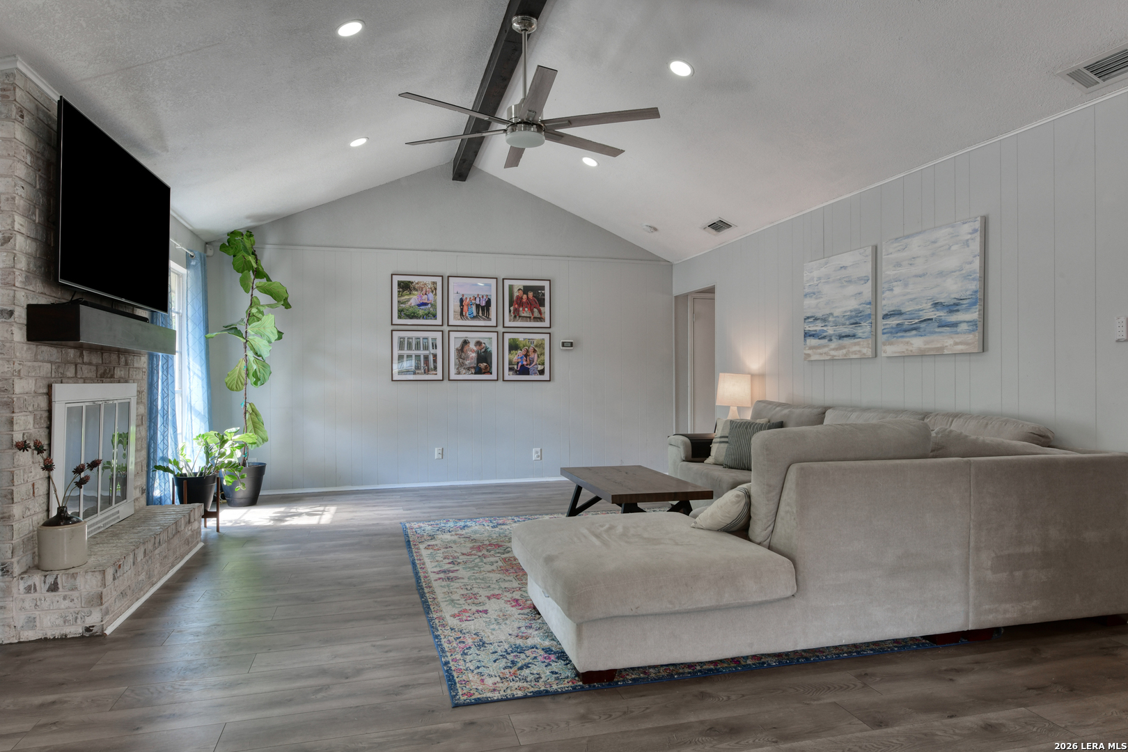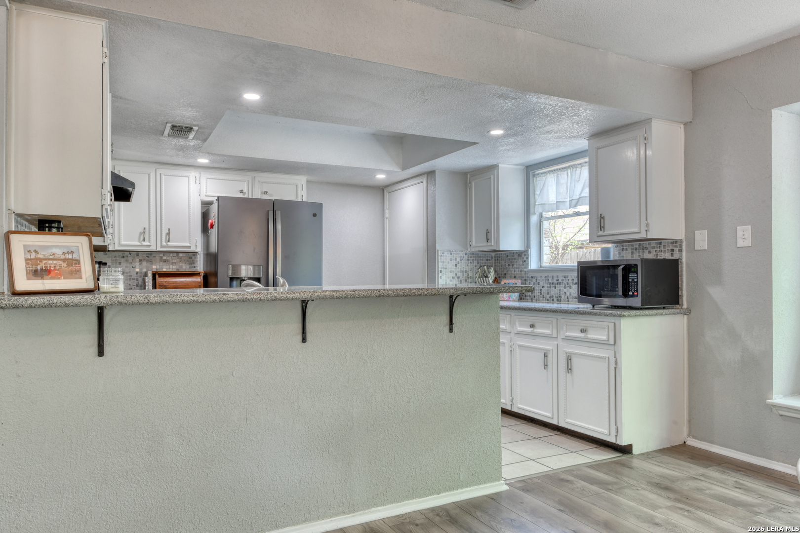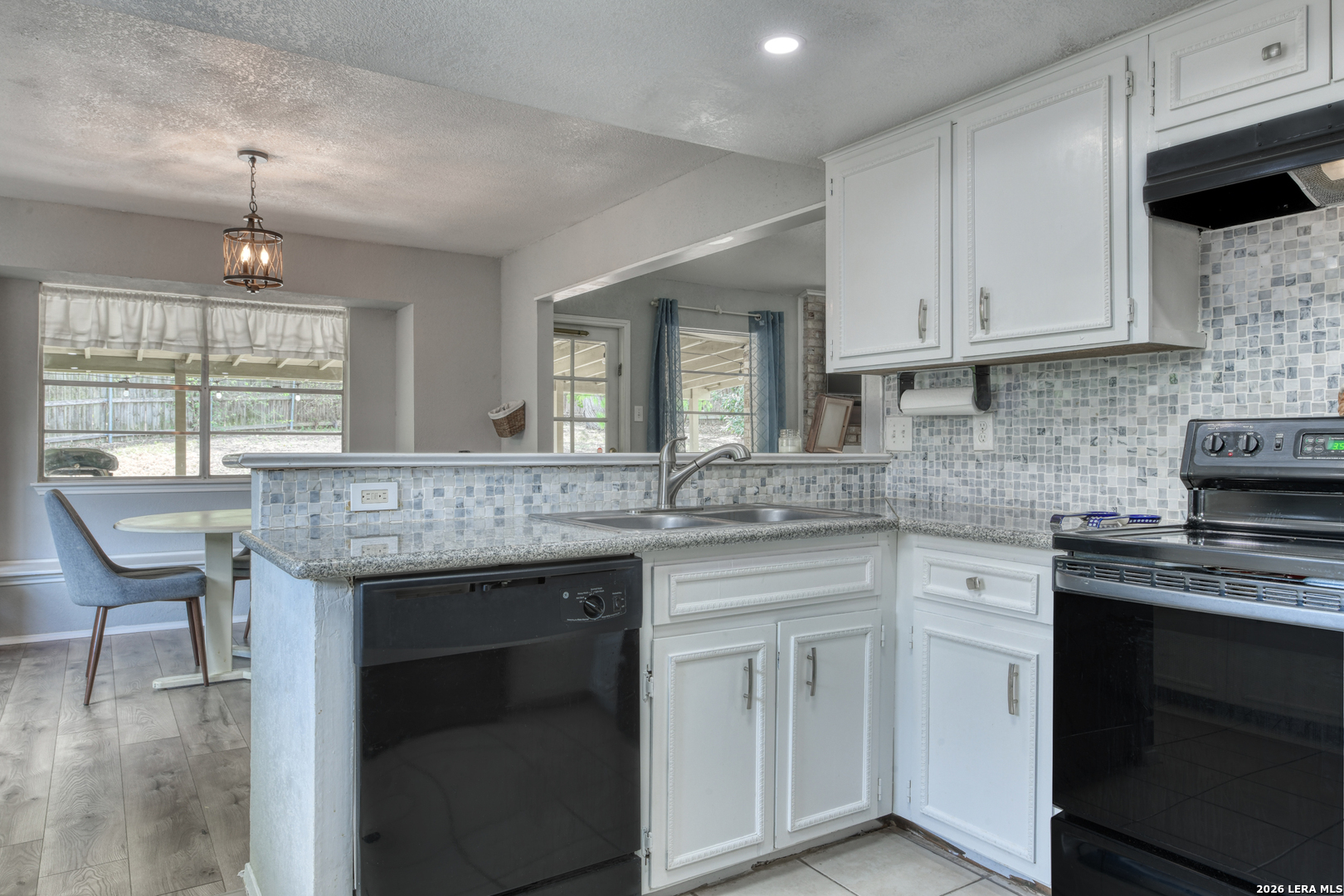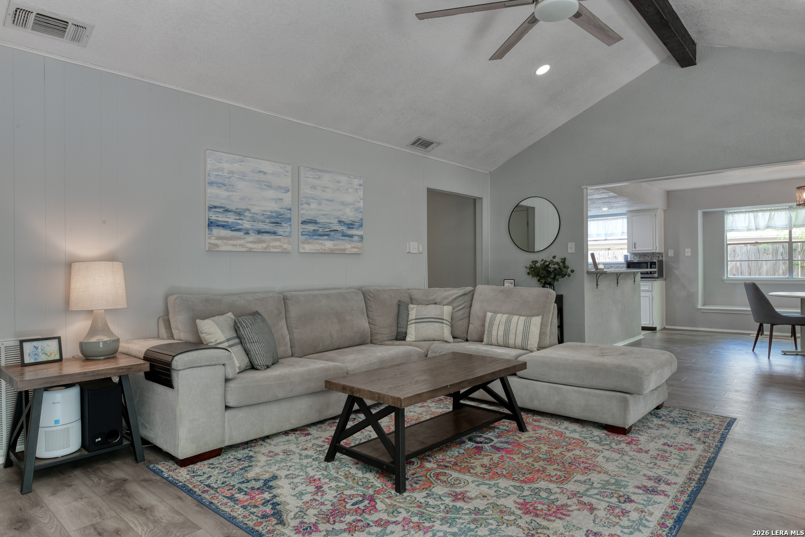 Mornings begin softly here, with sunlight filtering through the trees and into a home that feels both comfortable and connected. As you step inside, the living room opens up with vaulted ceilings and a striking beam overhead, while laminate wood-style flooring stretches underfoot and a gas fireplace anchors the space-perfect for slow evenings or gathering with the people who matter most. The wood-look flooring continues throughout the home, creating a seamless flow, while tile in the kitchen, bathrooms, and the convenient inside laundry room adds a practical touch. Just off the main living space, the dining area offers a cozy window seat, while the fourth bedroom is currently serving as a home office, offering flexibility to fit your needs. In the kitchen, everything is within reach-quartz countertops, a smooth top range, recessed lighting, and a tile backsplash all come together in a space designed for both everyday meals and shared moments. The primary suite offers a quiet place to recharge, complete with dual closets and an updated bath featuring a beautifully tiled walk-in shower. There are two additional good-sized secondary bedrooms with a full bath nearby. Outside, the covered patio overlooks a fully fenced backyard with room to relax, play, or entertain, while the front porch offers a welcoming place to sit and enjoy the neighborhood. With a side-entry two-car garage and the ability to walk to Comanche Lookout Park, nearby trails, a playground, and the public library, life here unfolds with ease, comfort, and a true sense of home.